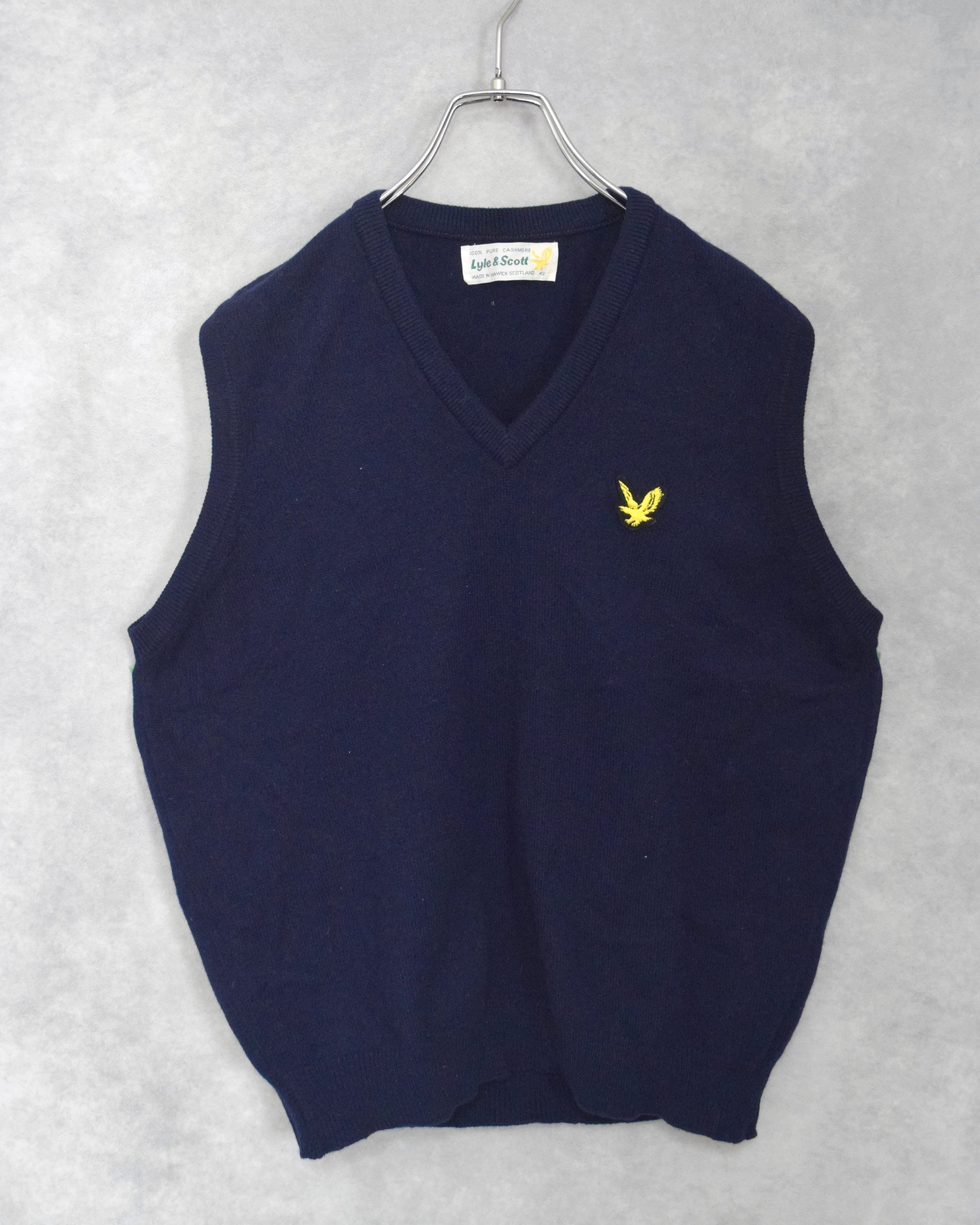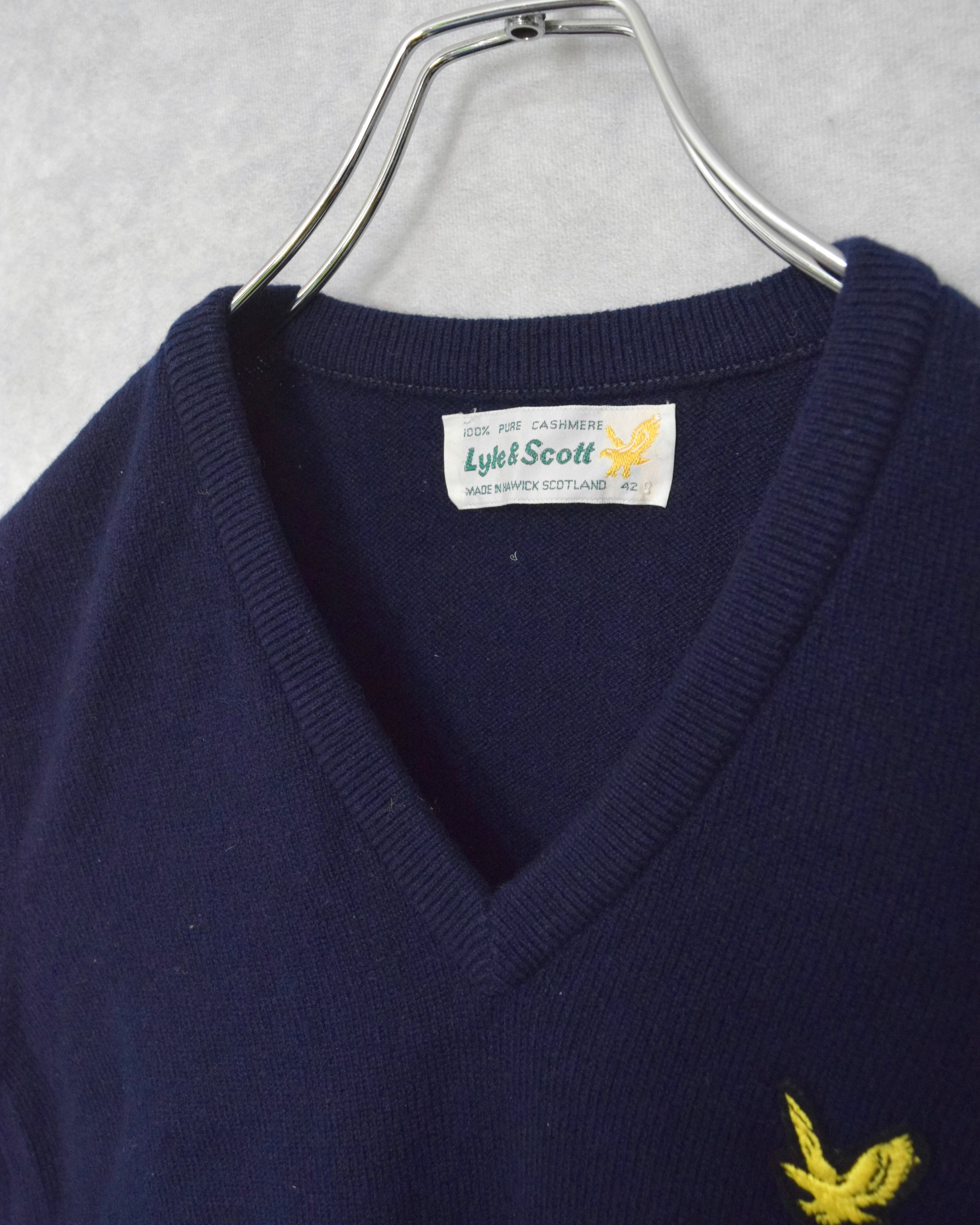 90s " lyle & scott " 100% cashmere V-neck knit vest / made in scotland / size 42