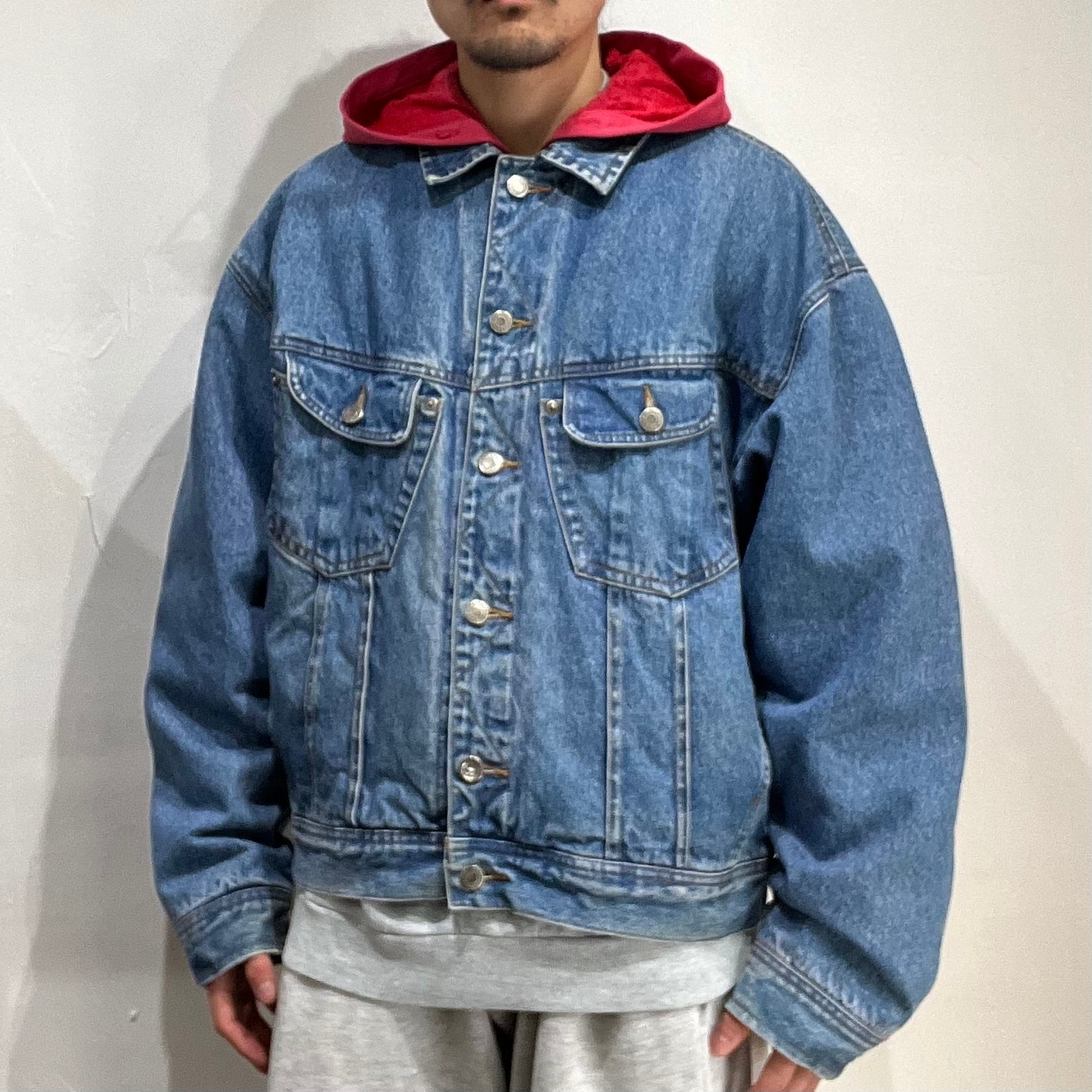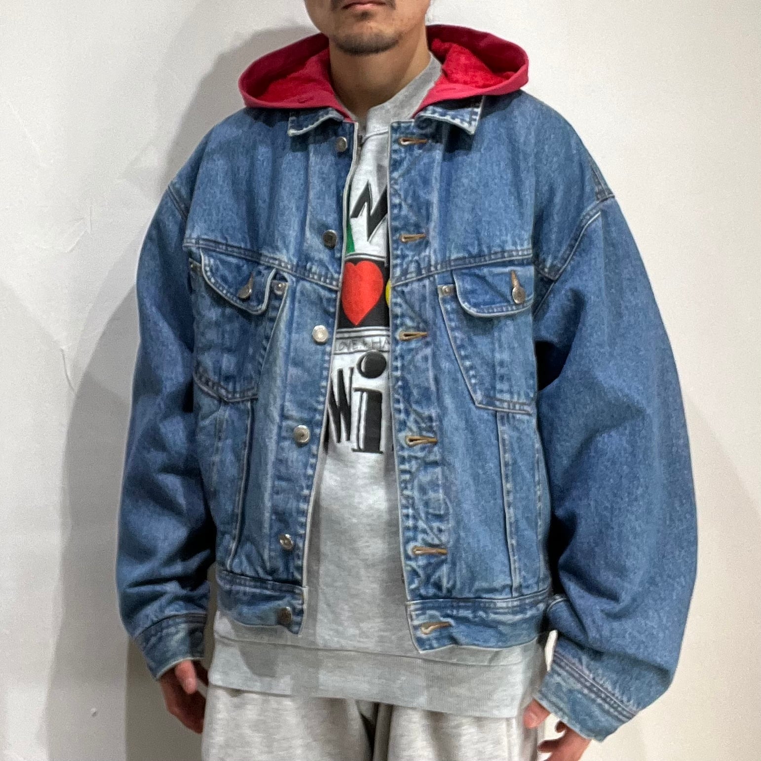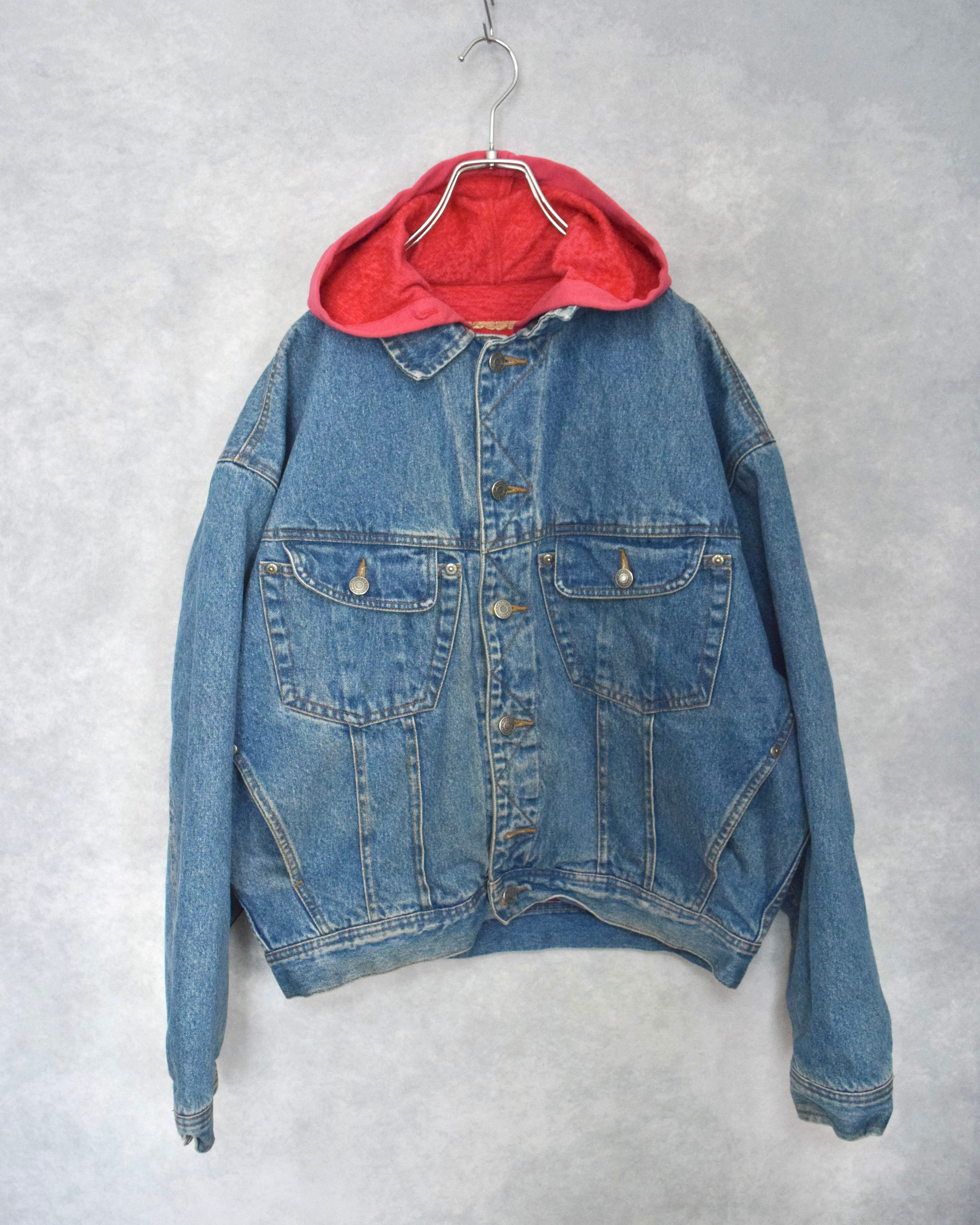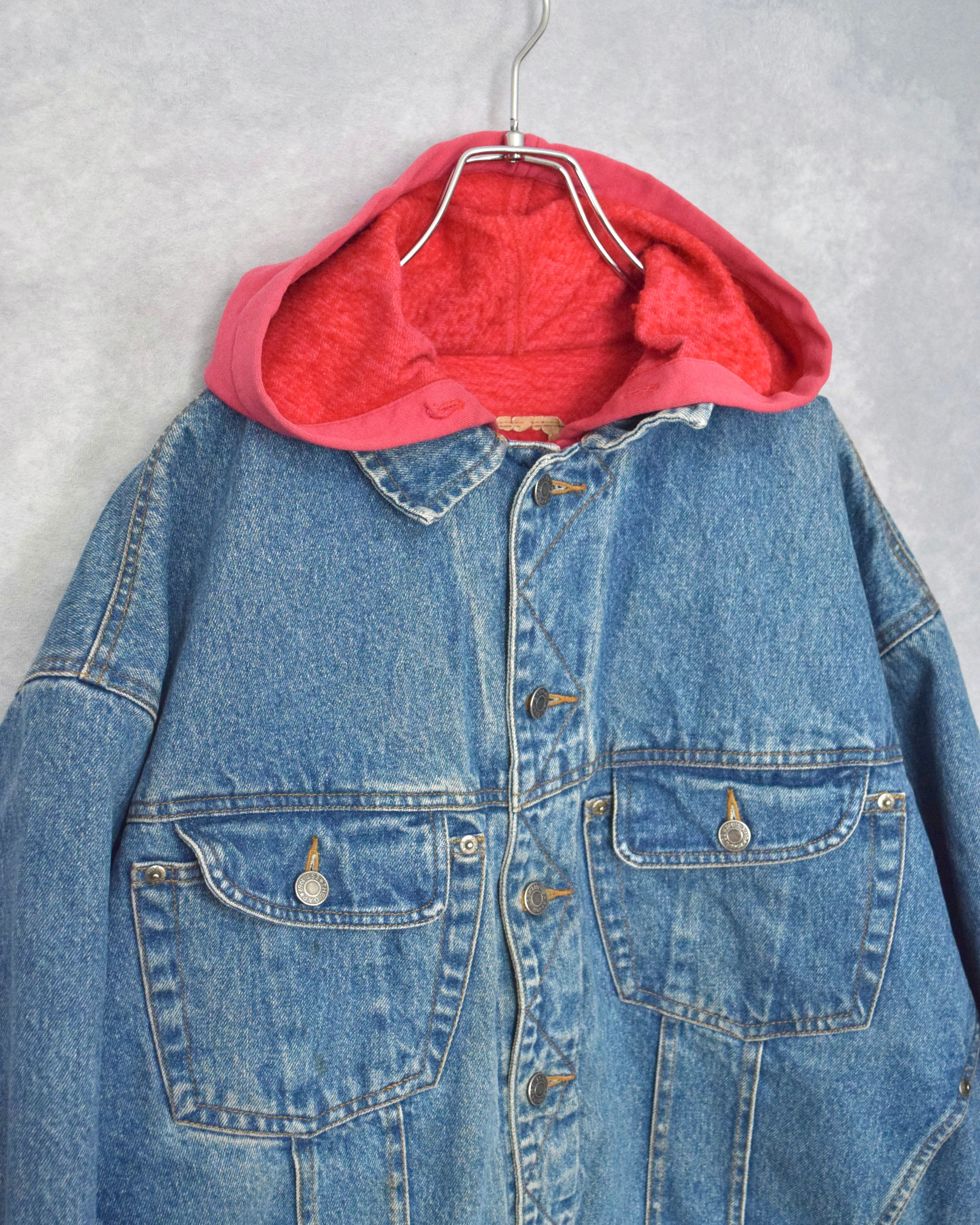 90年代頃のギャップのデニムxスウェットフェイクレイヤードフーデッドジャケット。