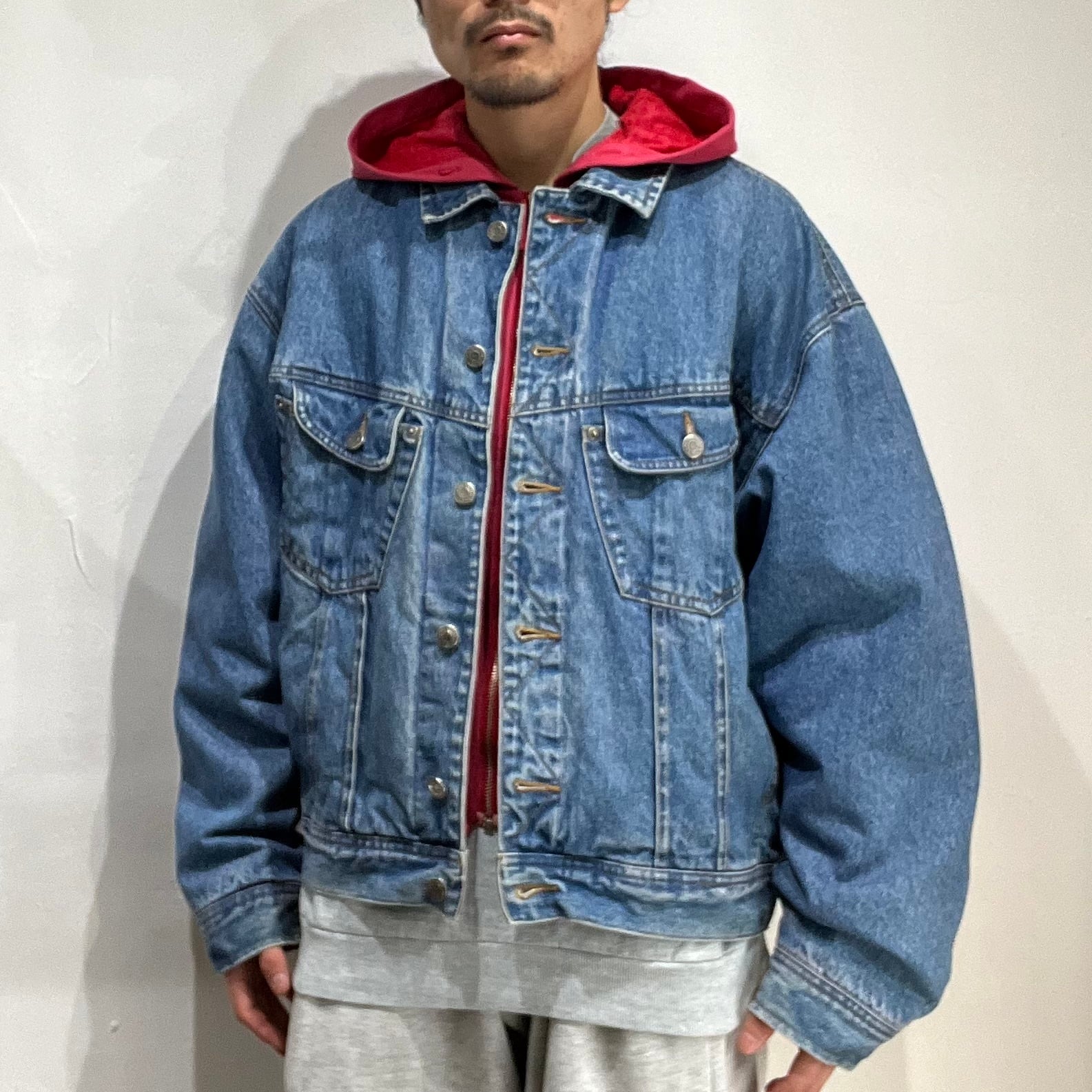 90s " gap " denim x sweat fake layerd hooded jacket / size L