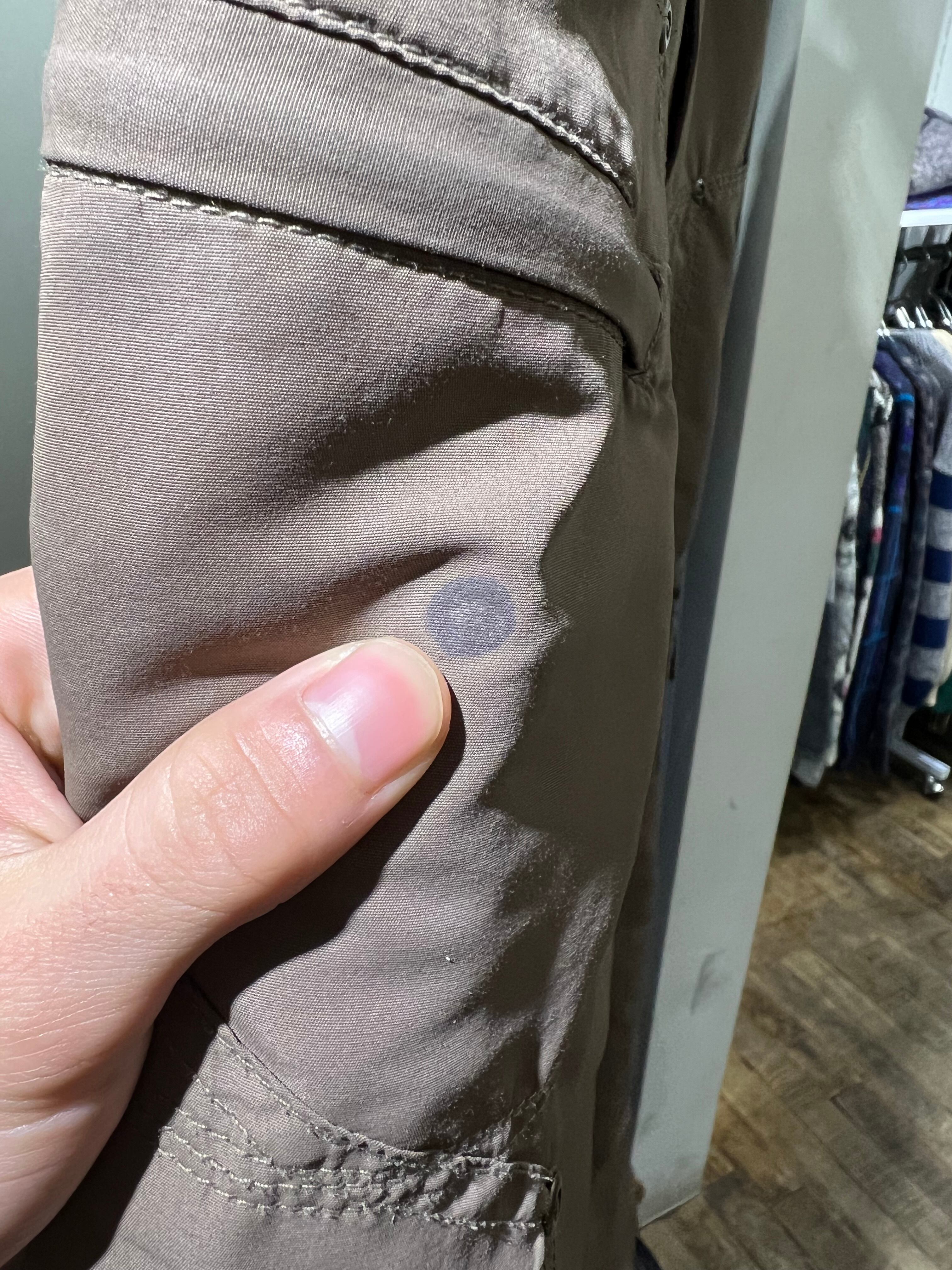 A面右腿付近のポケットに接着剤が付いたような硬化がありますがご着用には問題ありません。