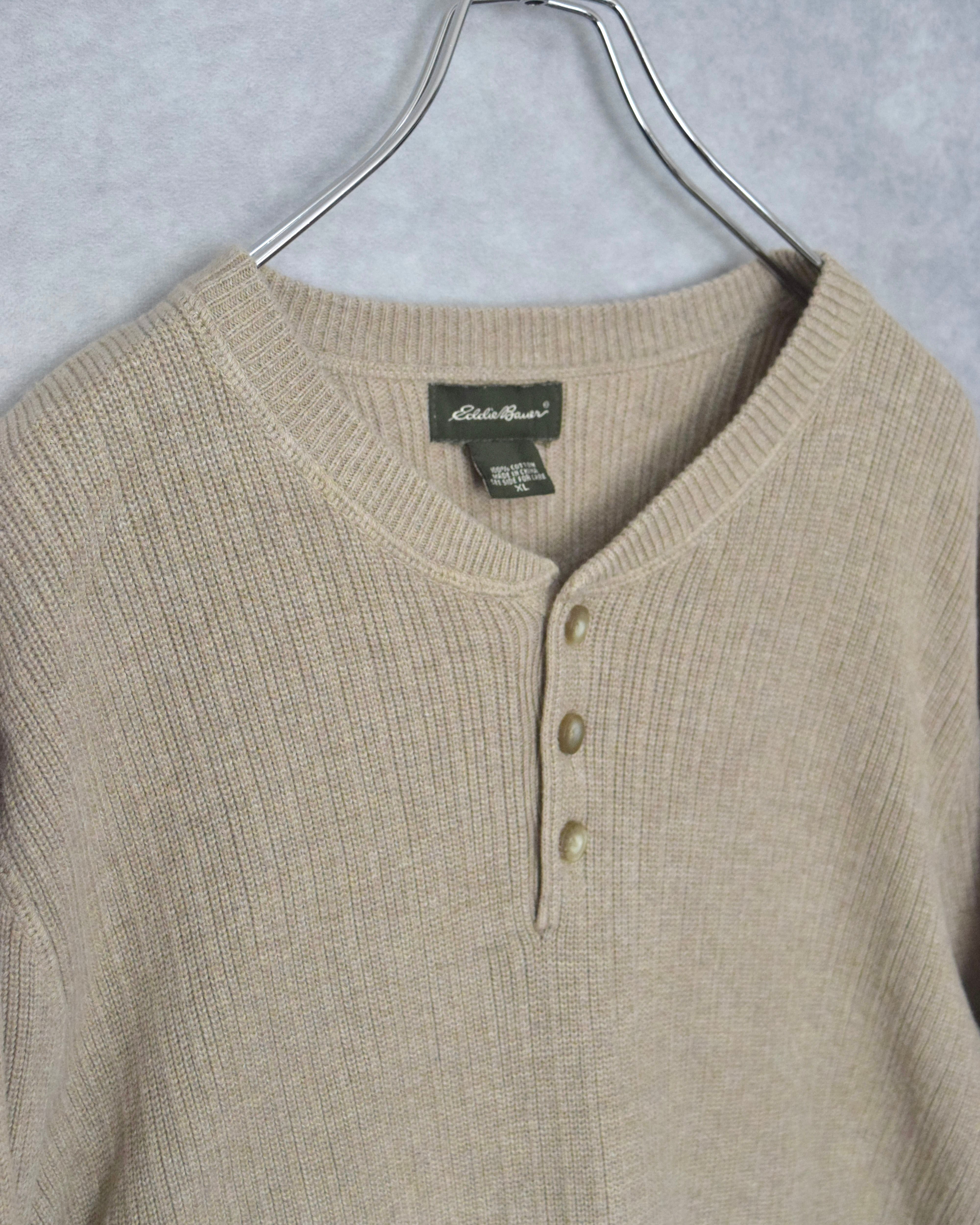 00s " eddie bauer " henley neck cotton knit / size XL