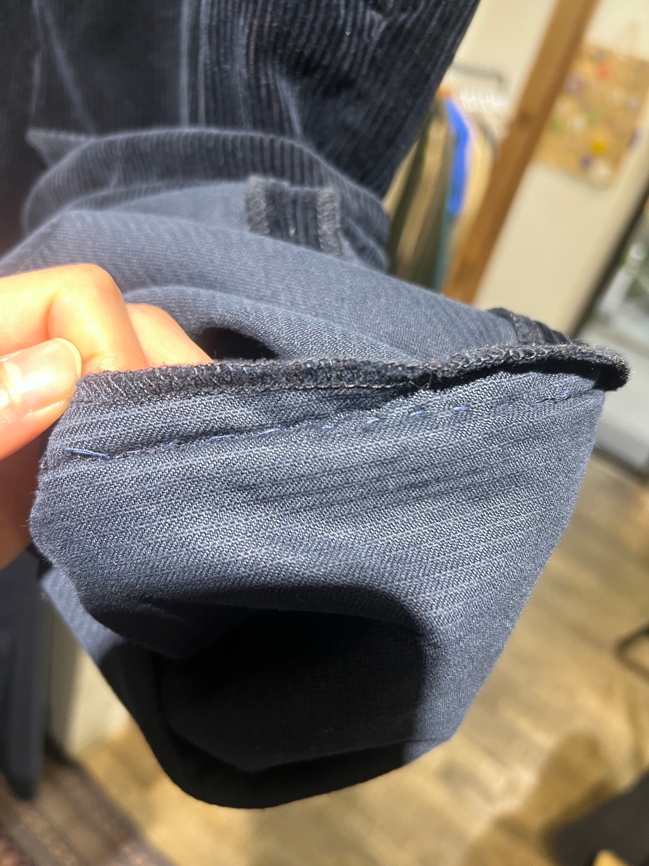 左膝あたりの縫い目にリペアがありますが目立ちません。