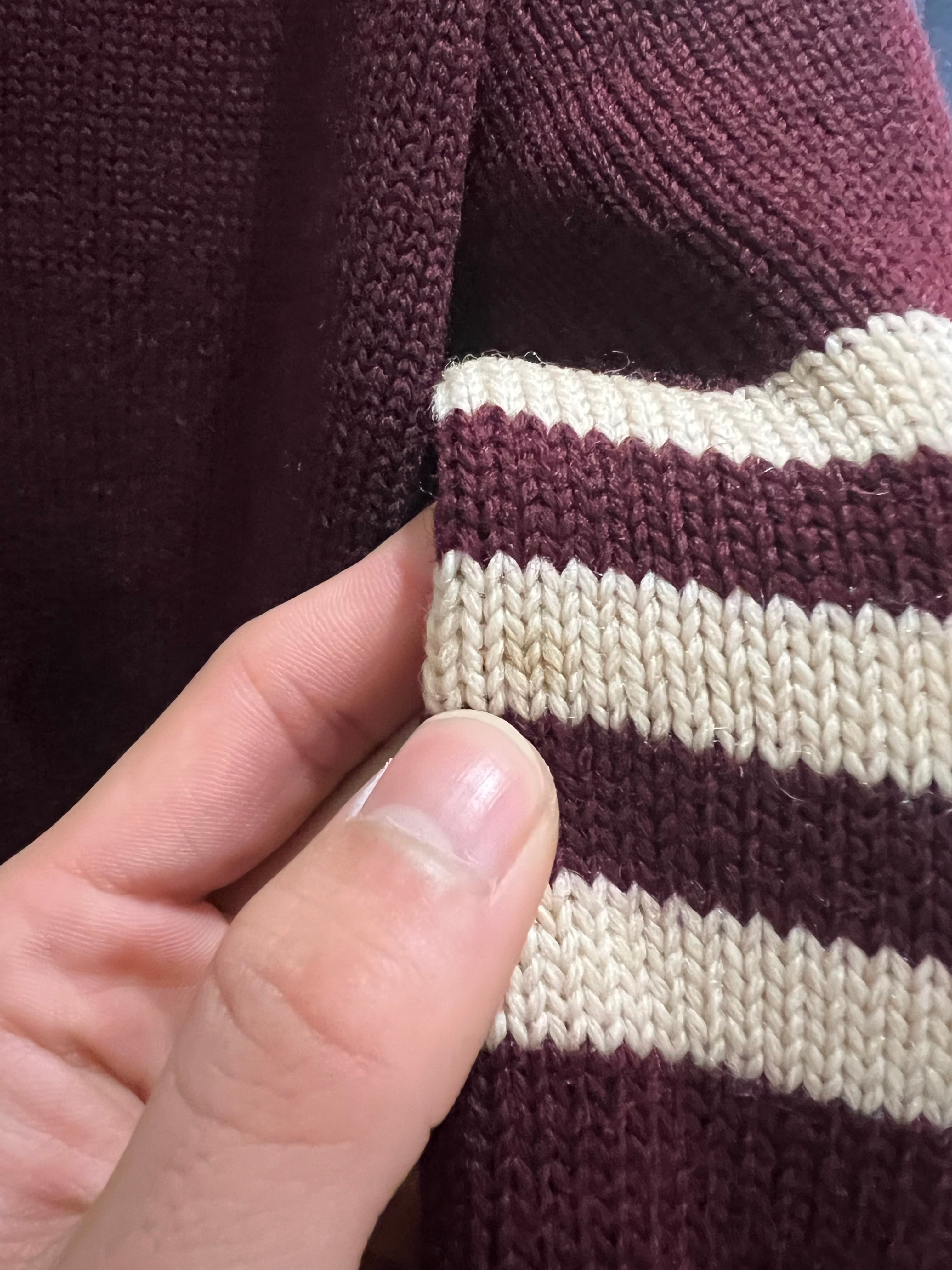 レタードカーディガンといえばな裾ポケや左袖のラインが良いアクセントですね。