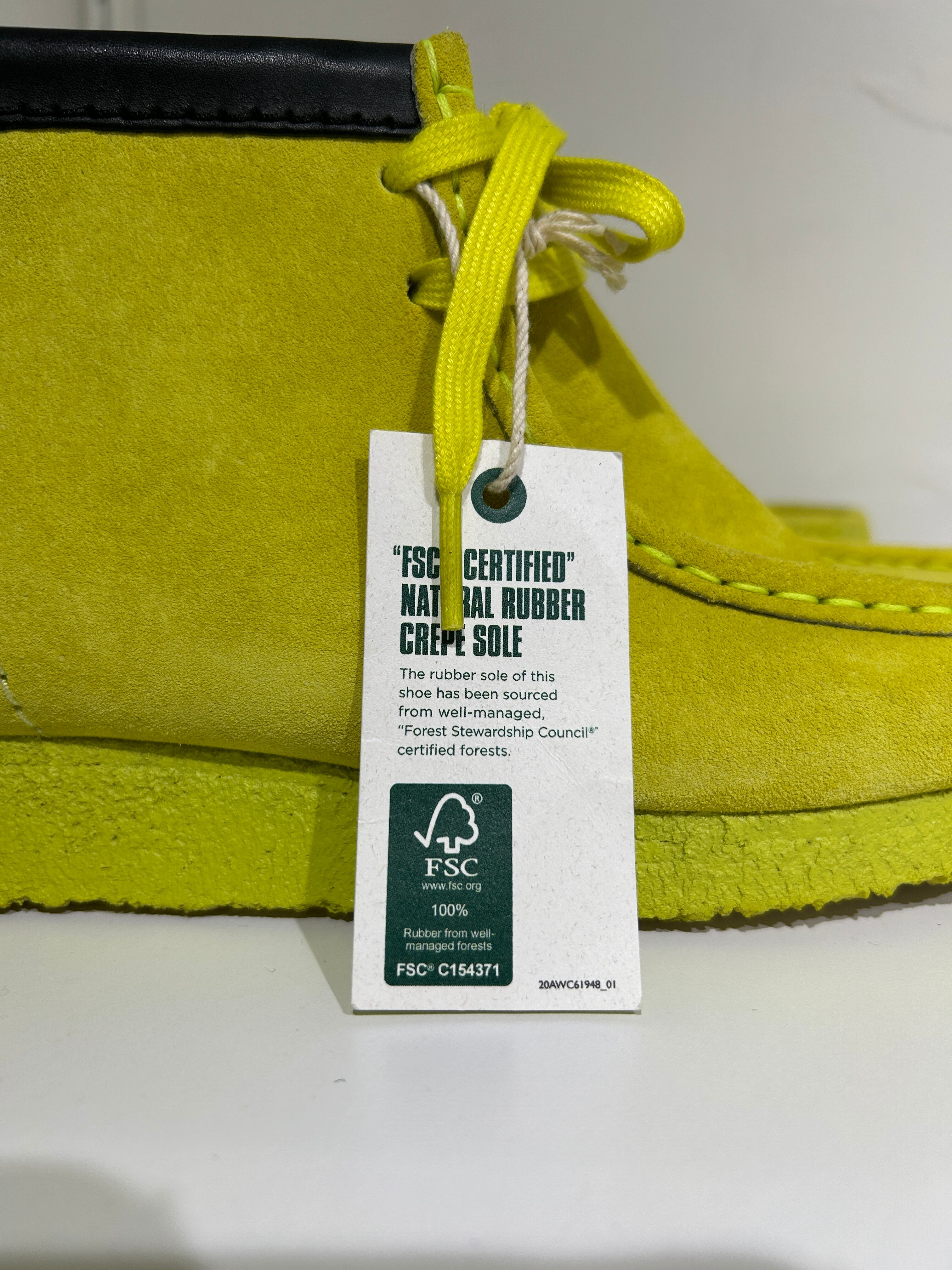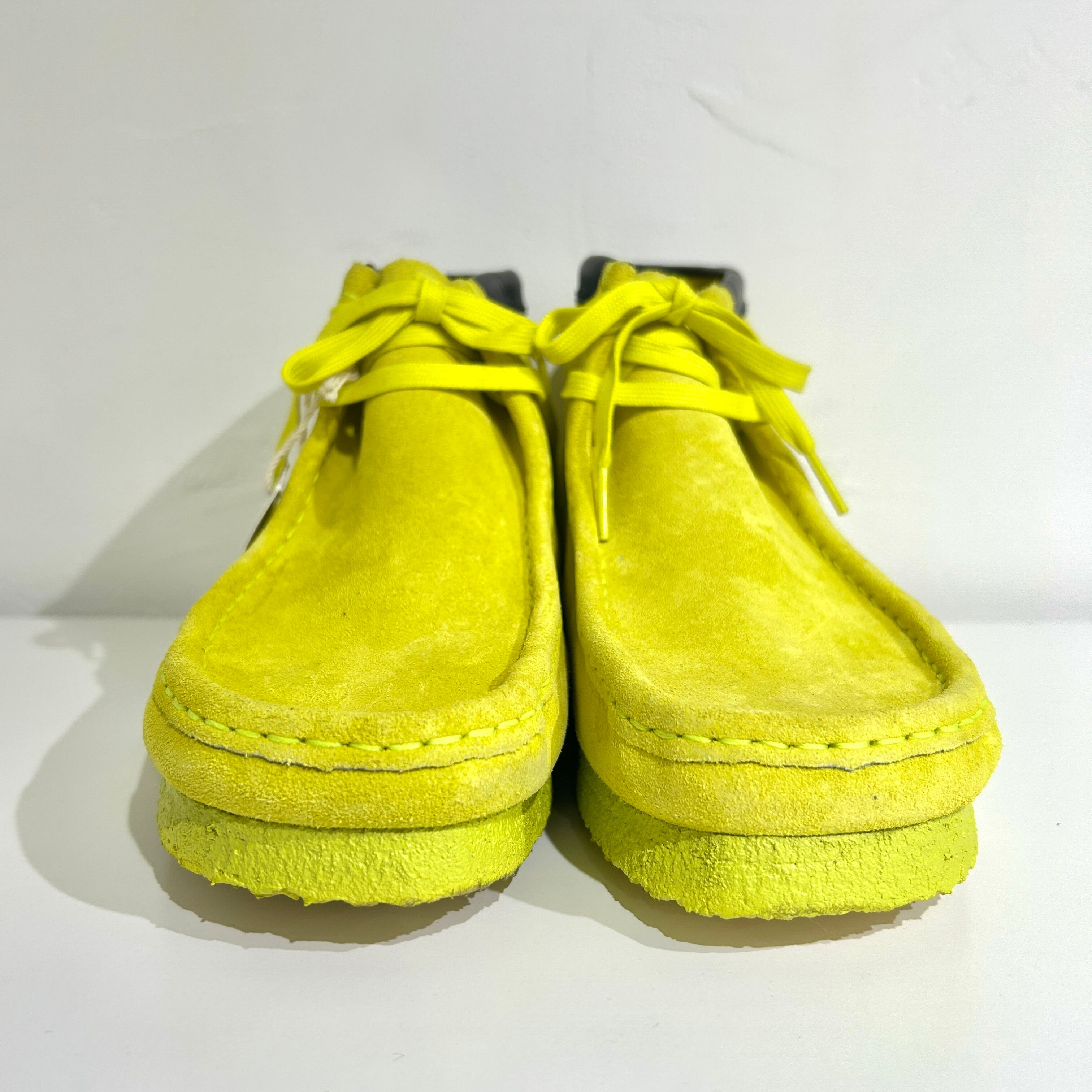 素晴らしい発色のライムイエローカラーが目を惹く一足。