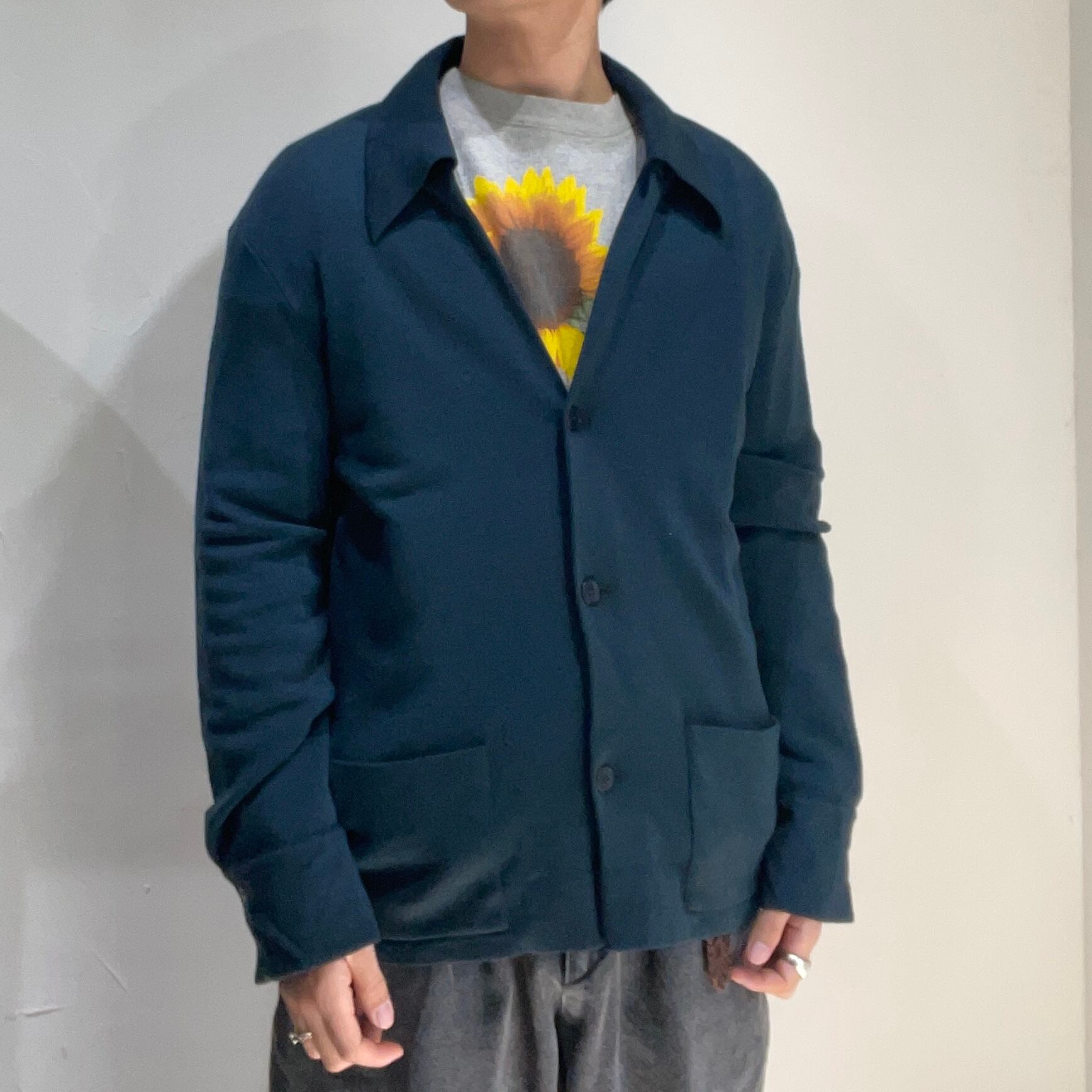カーディガンのようでありながらも襟付き。
