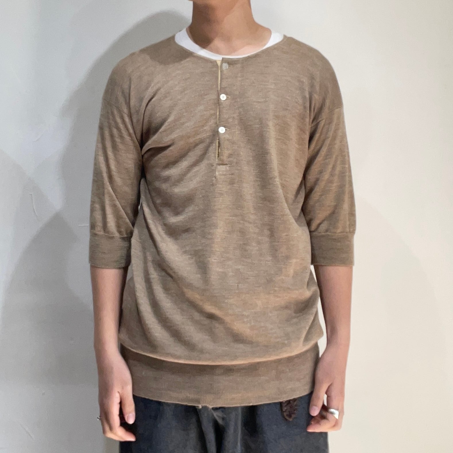 40〜50s henley neck wool knit t-shirts / made in england / size m