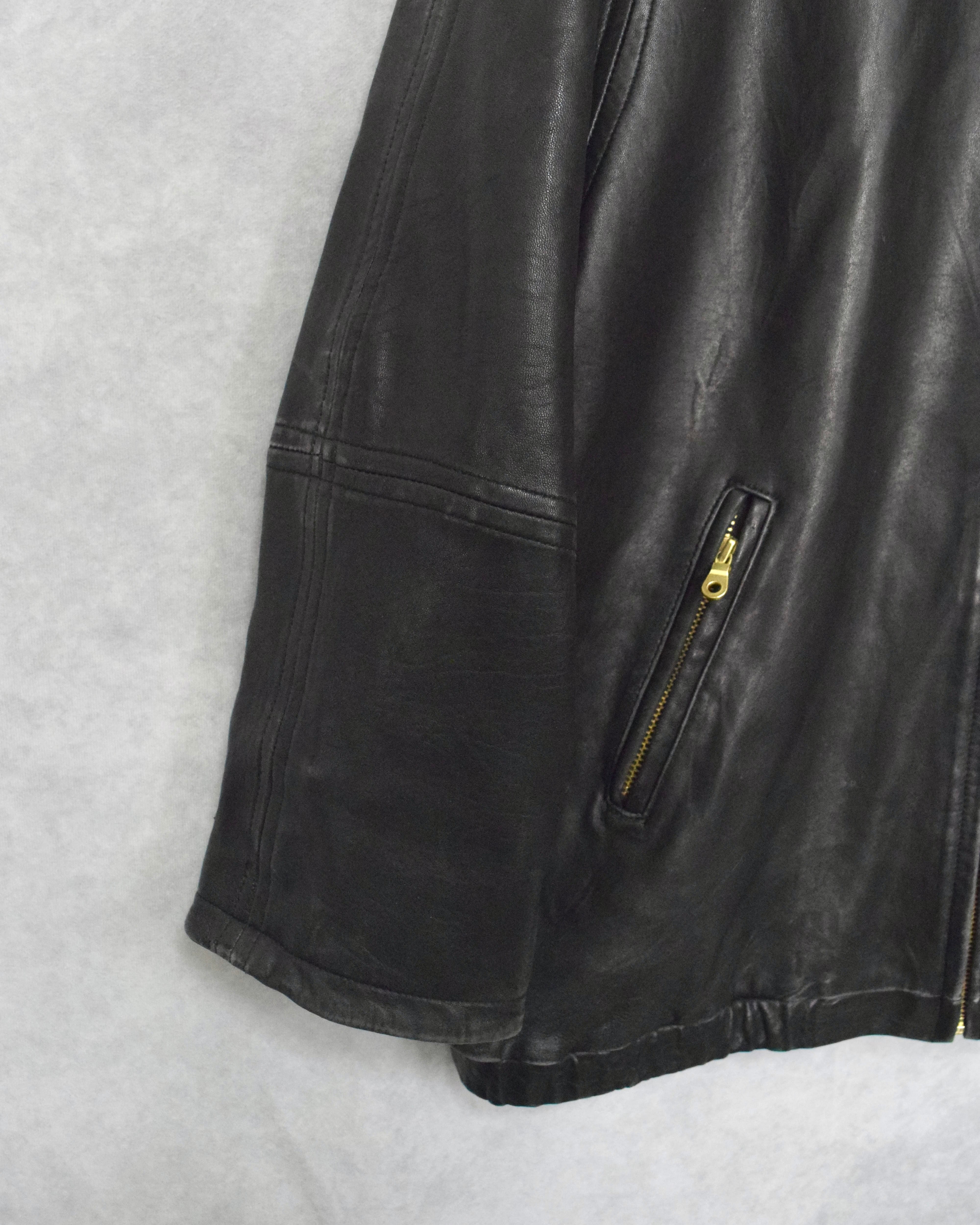 無骨な印象のあるレザージャケットですが、こちらはどこか中性的な1着。