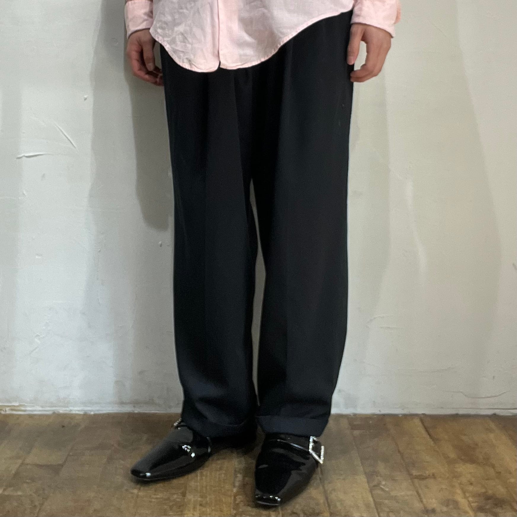 とてもゆとりある腿周りから程良くテーパードのかかるシルエット。