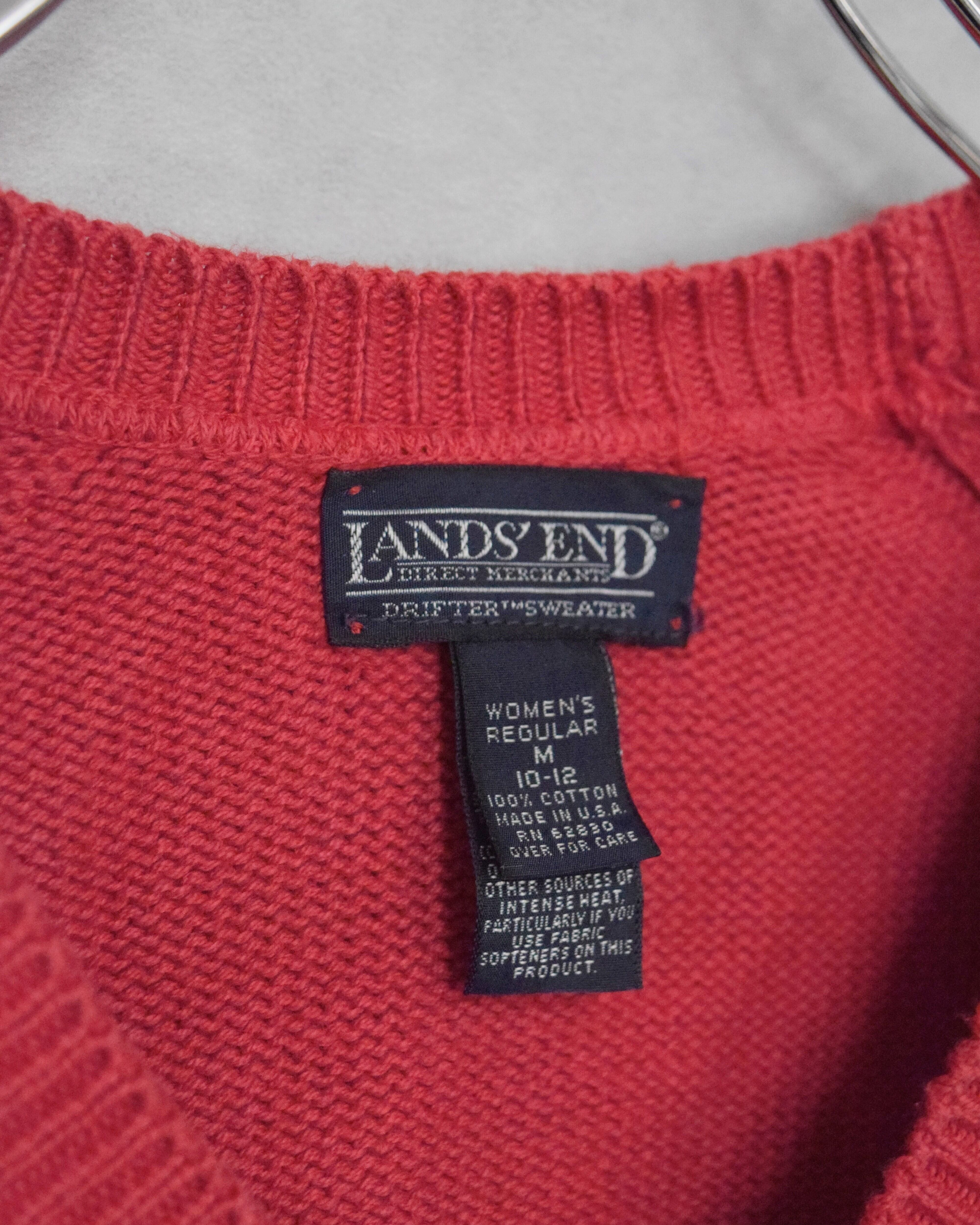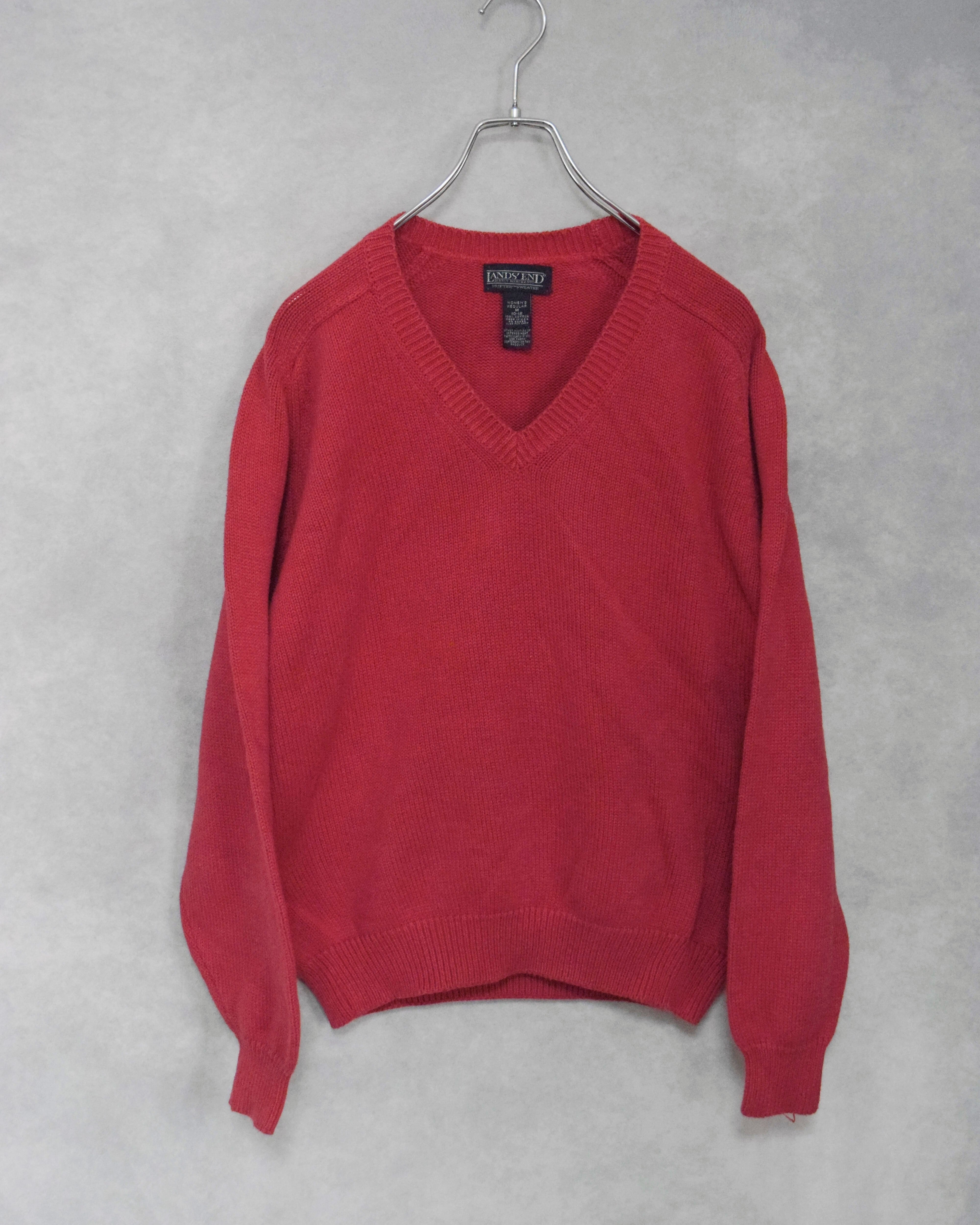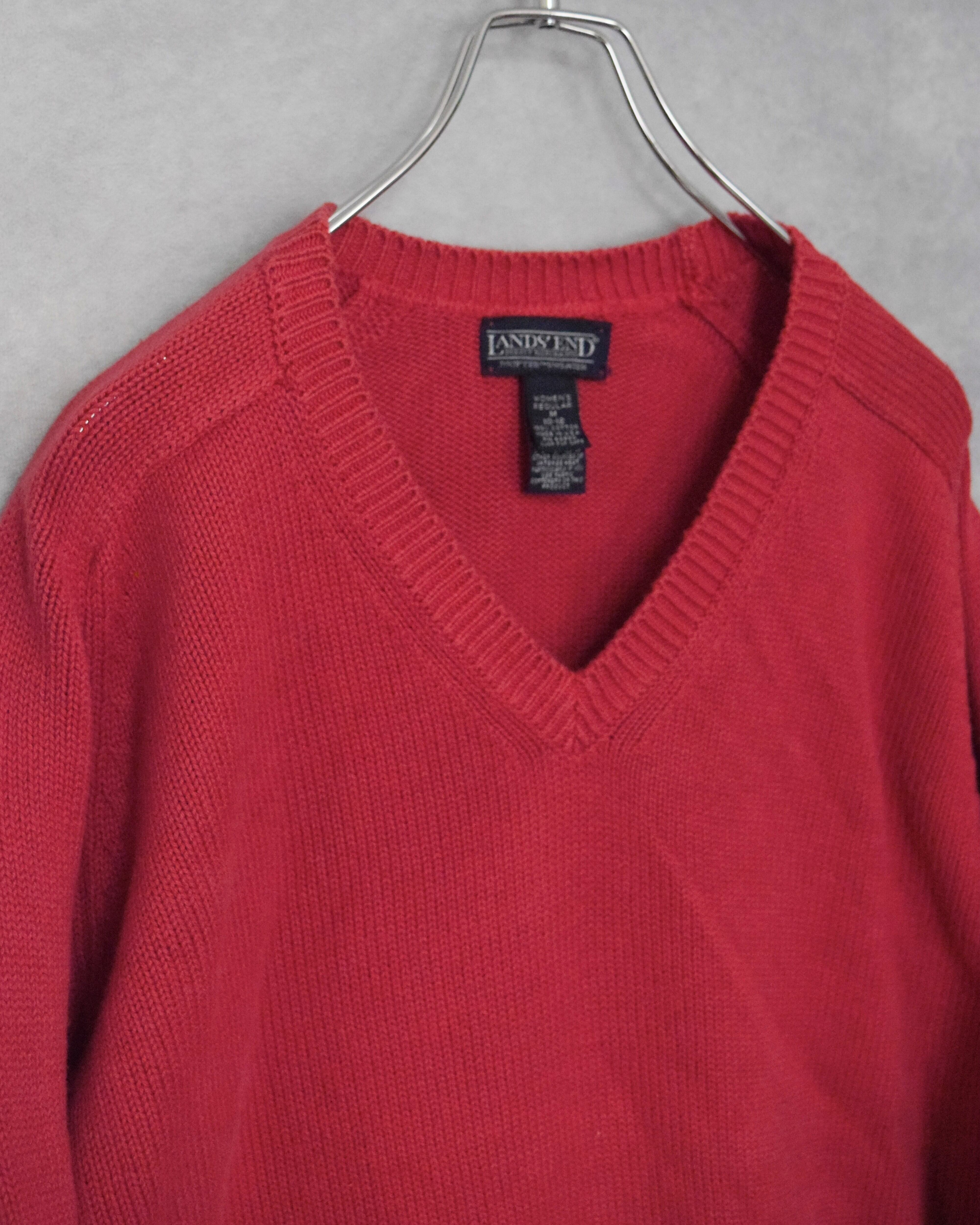90s " lands'end " cotton V-neck knit / made in usa / size m