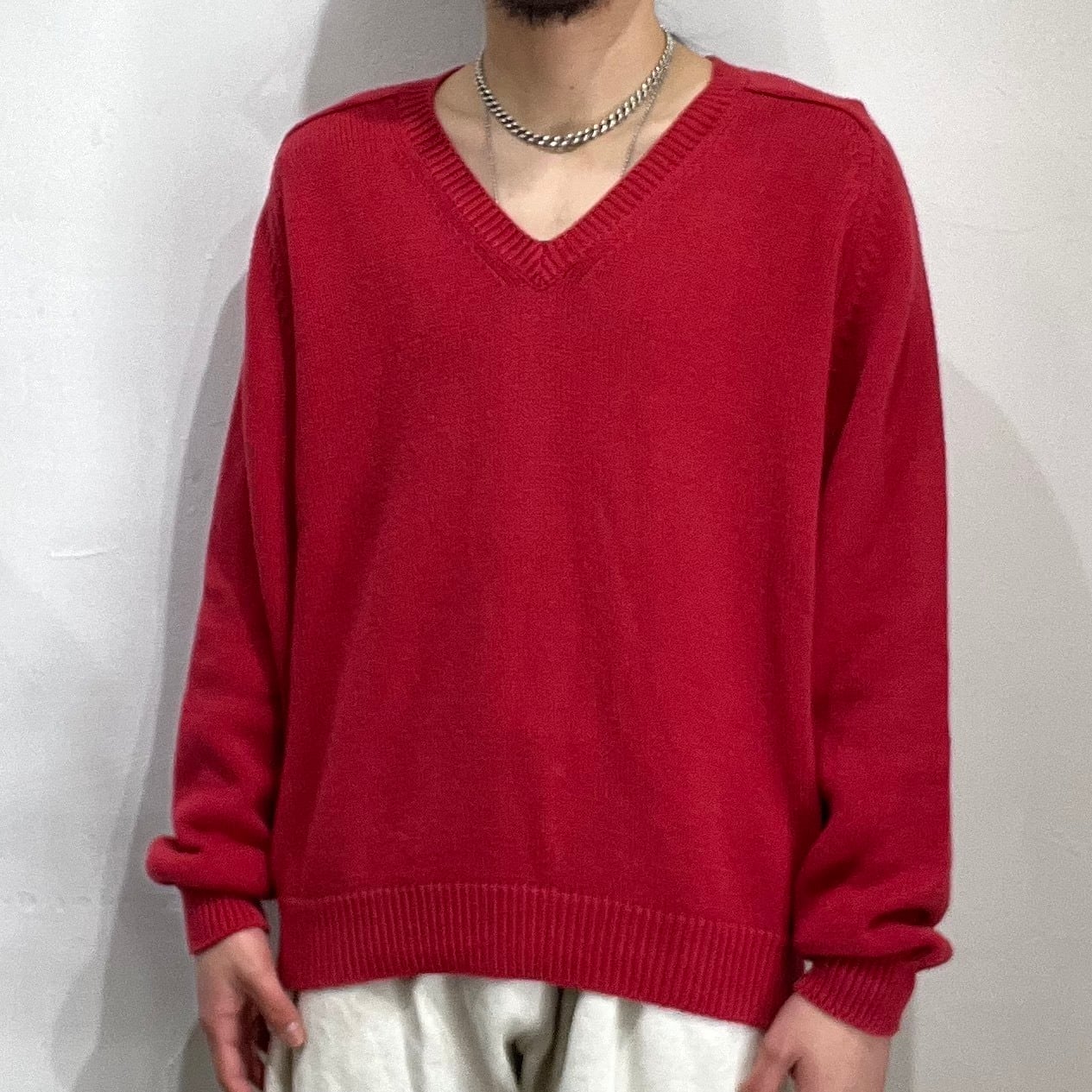 90年代頃のランズエンドのコットンVネックニット。