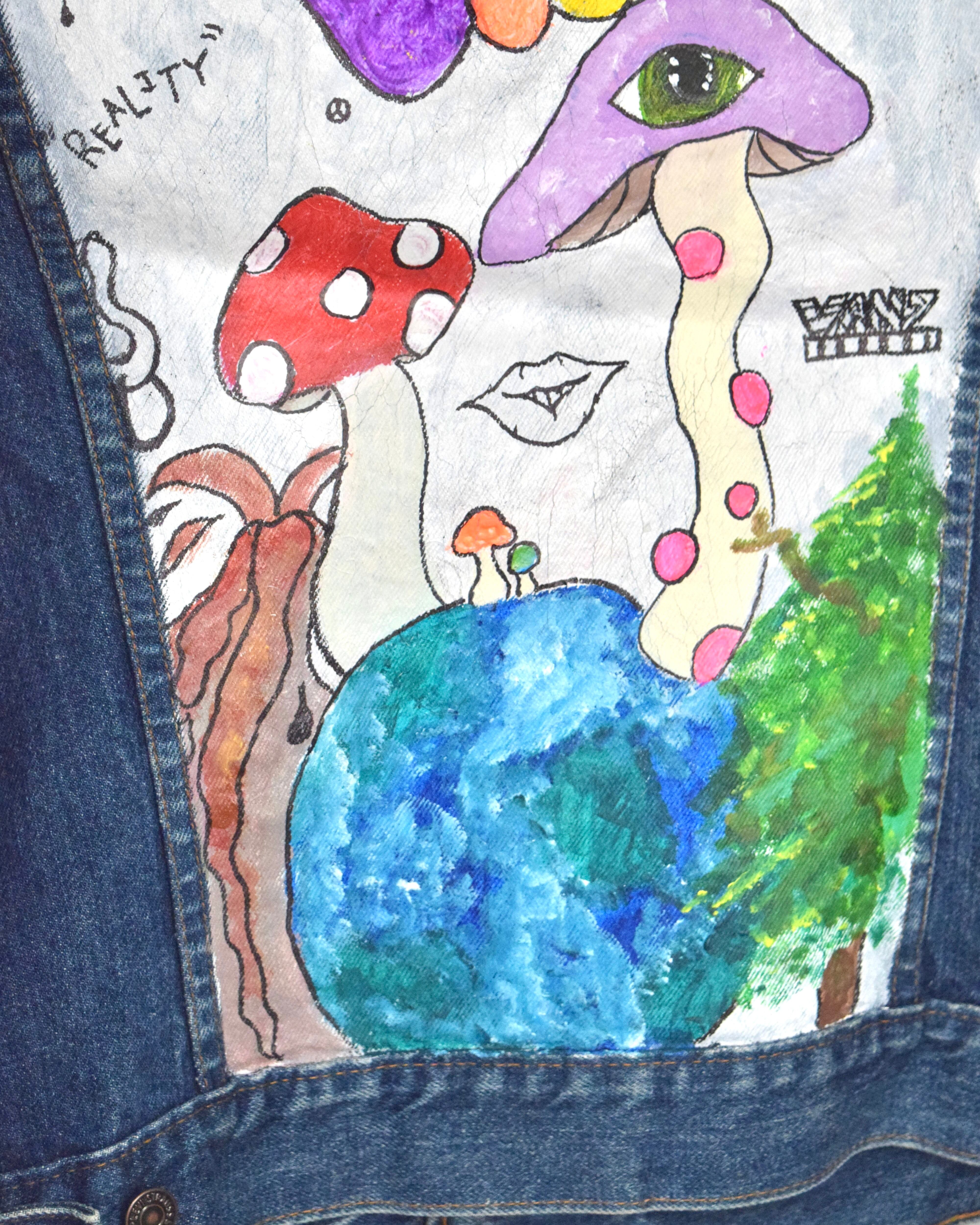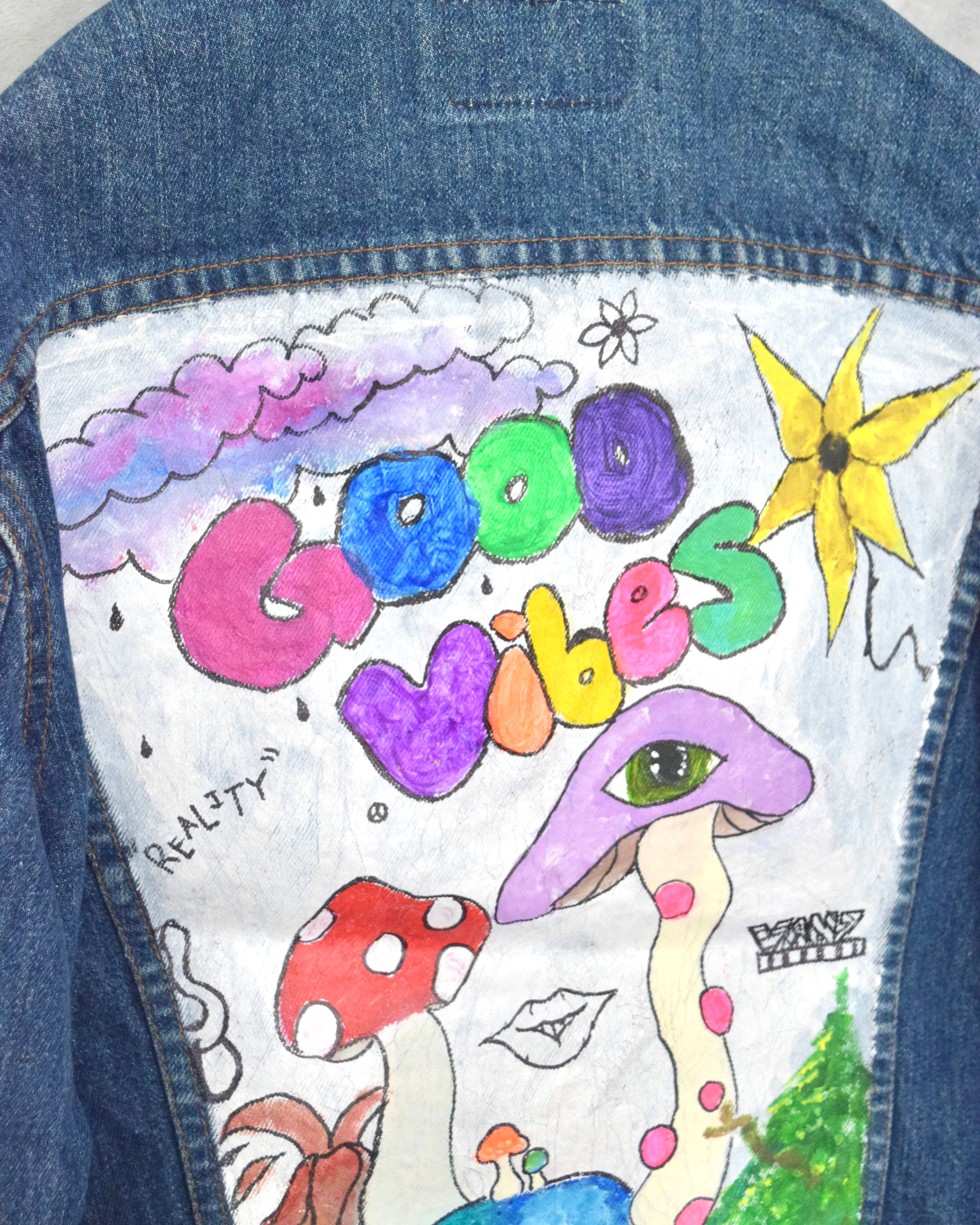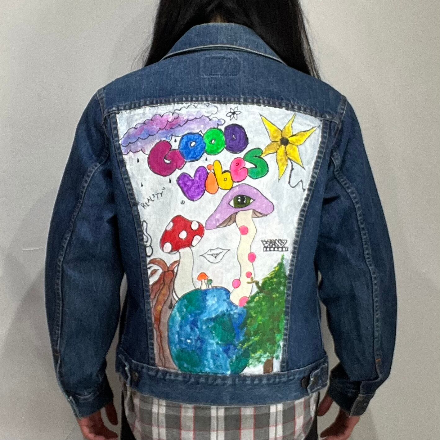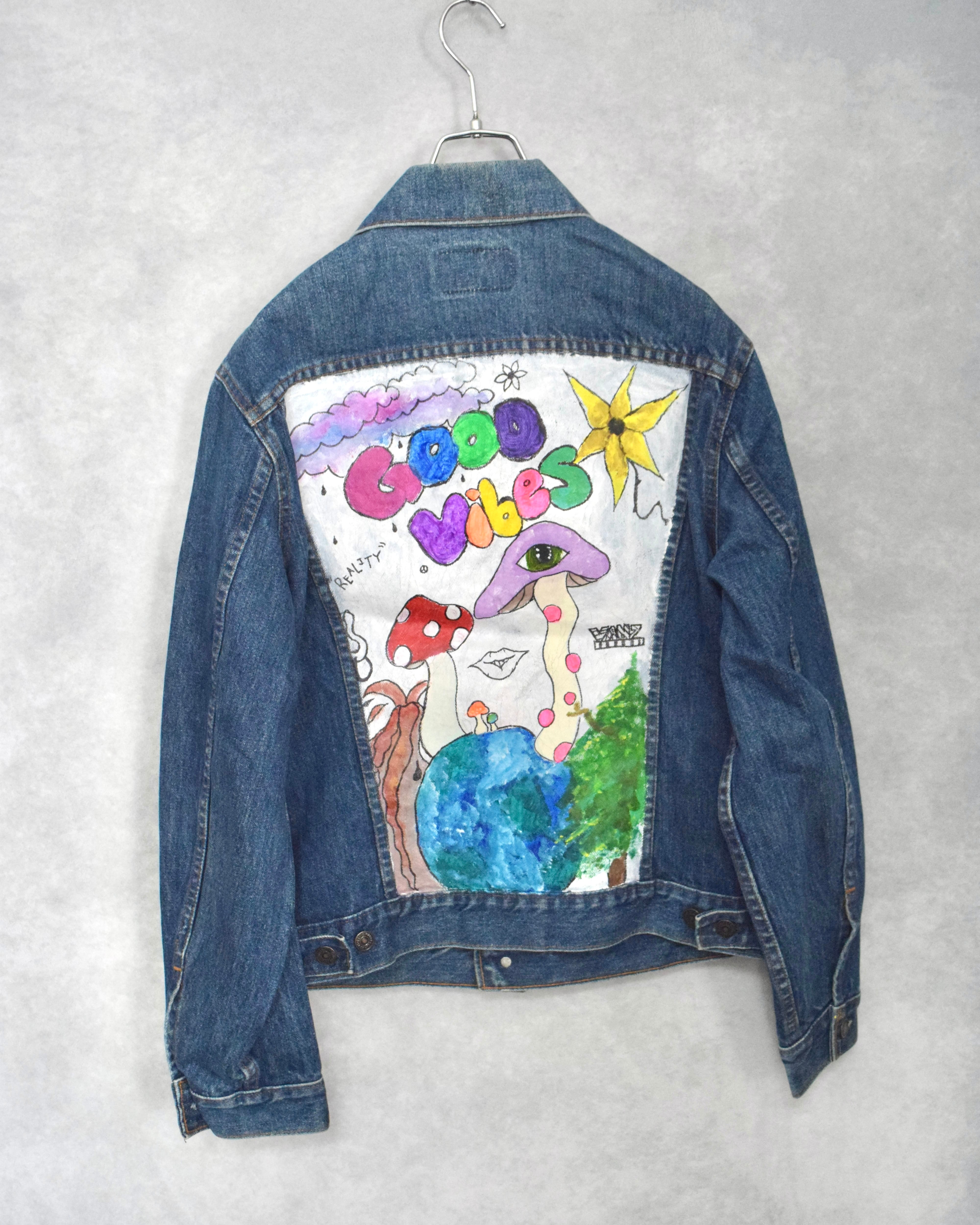 80s “ levi's 70506 " 70s vibes hand painted denim jacket / made in canada / size 40