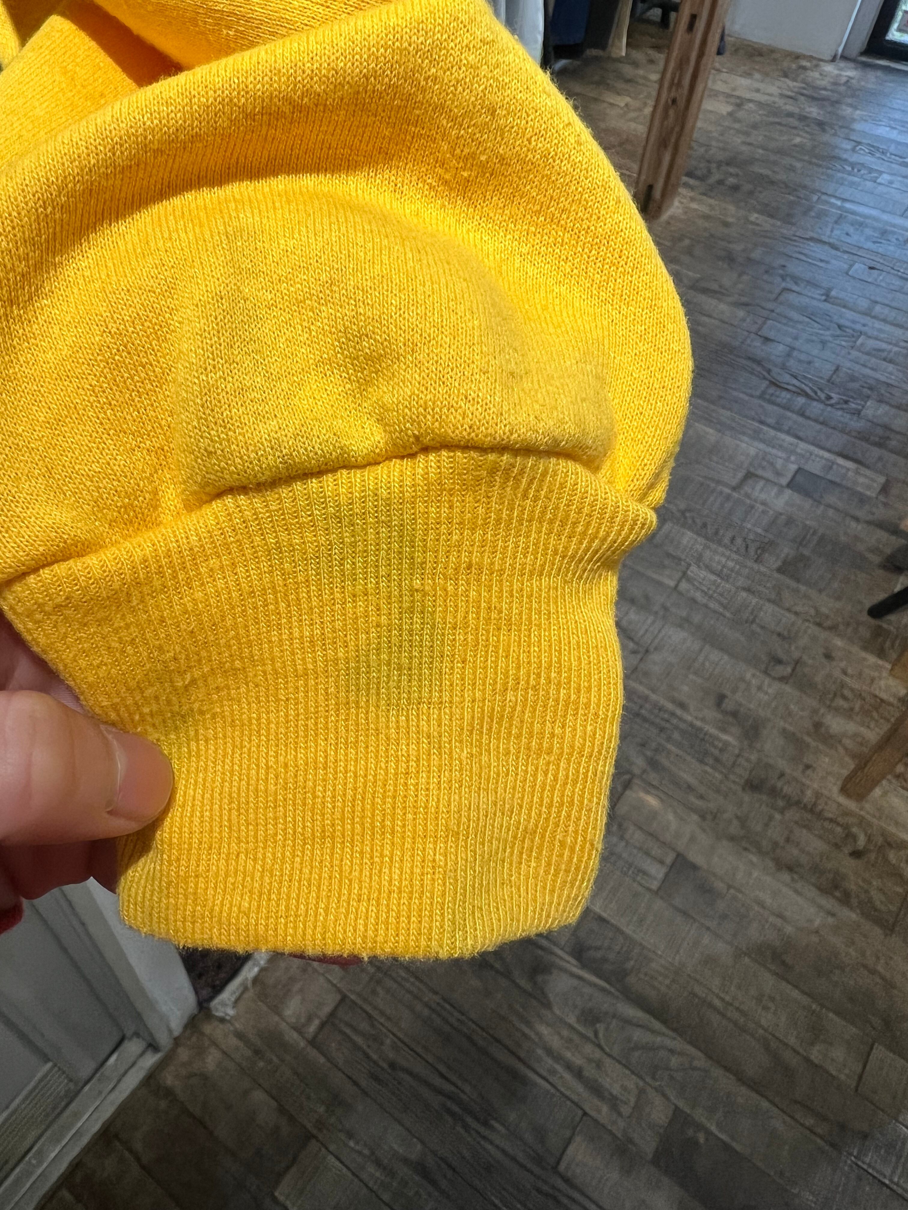 右袖先、右袖付け根に薄い汚れがあります。