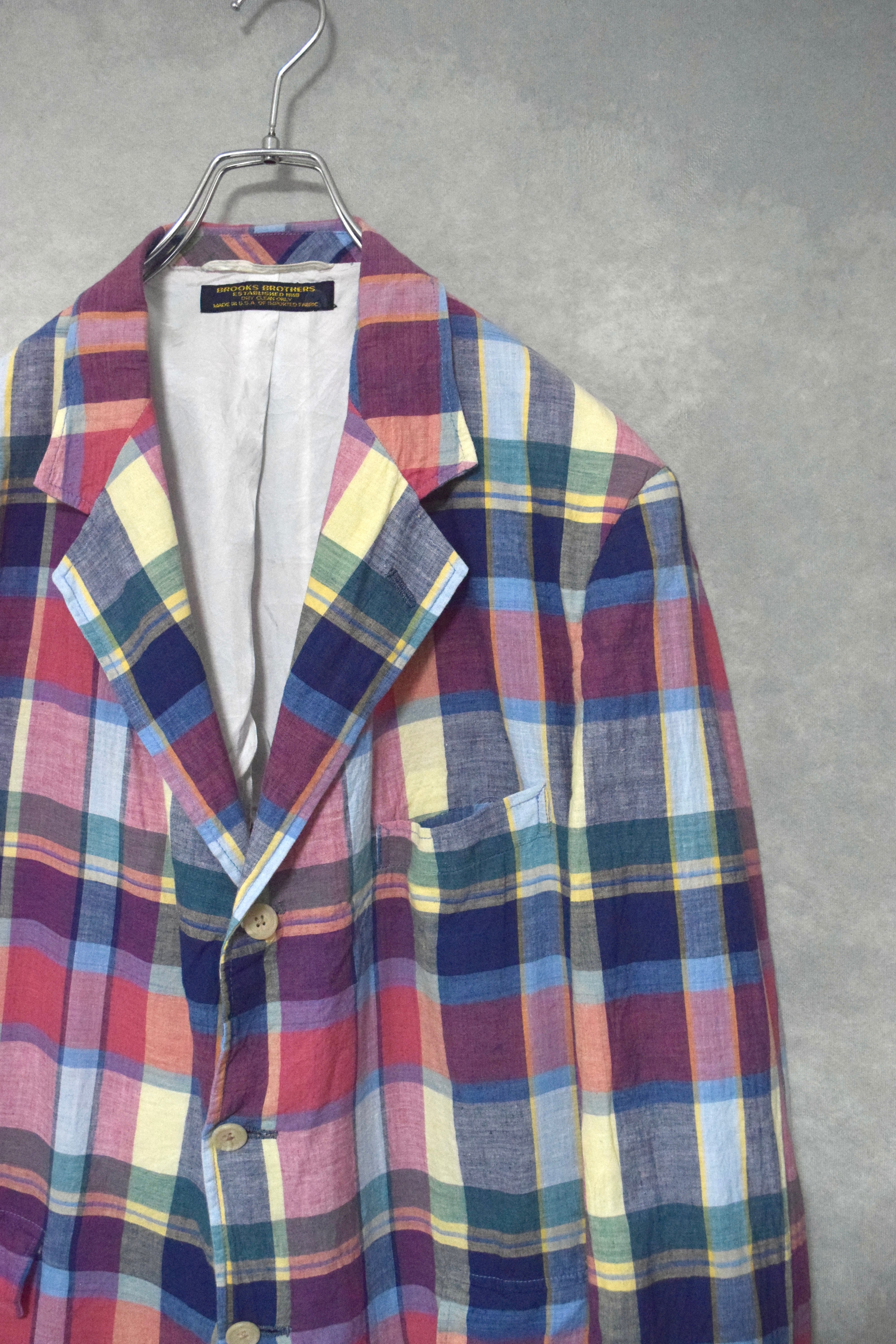 80s " brooks brothers " india madras tailored jacket / made in usa / size about 38
