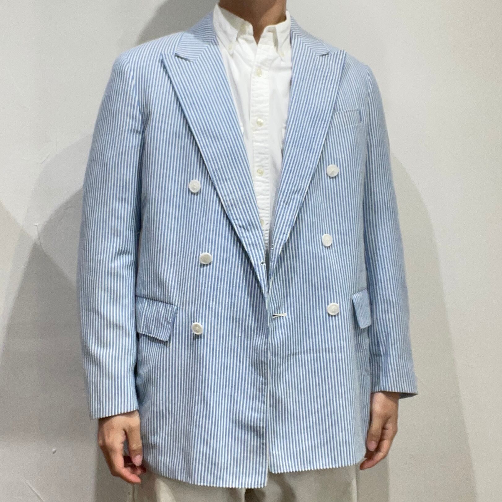シアサッカーのテーラードジャケットだとシングルのものであれば見ますが、ダブルブレストのものは中々見かけませんね。