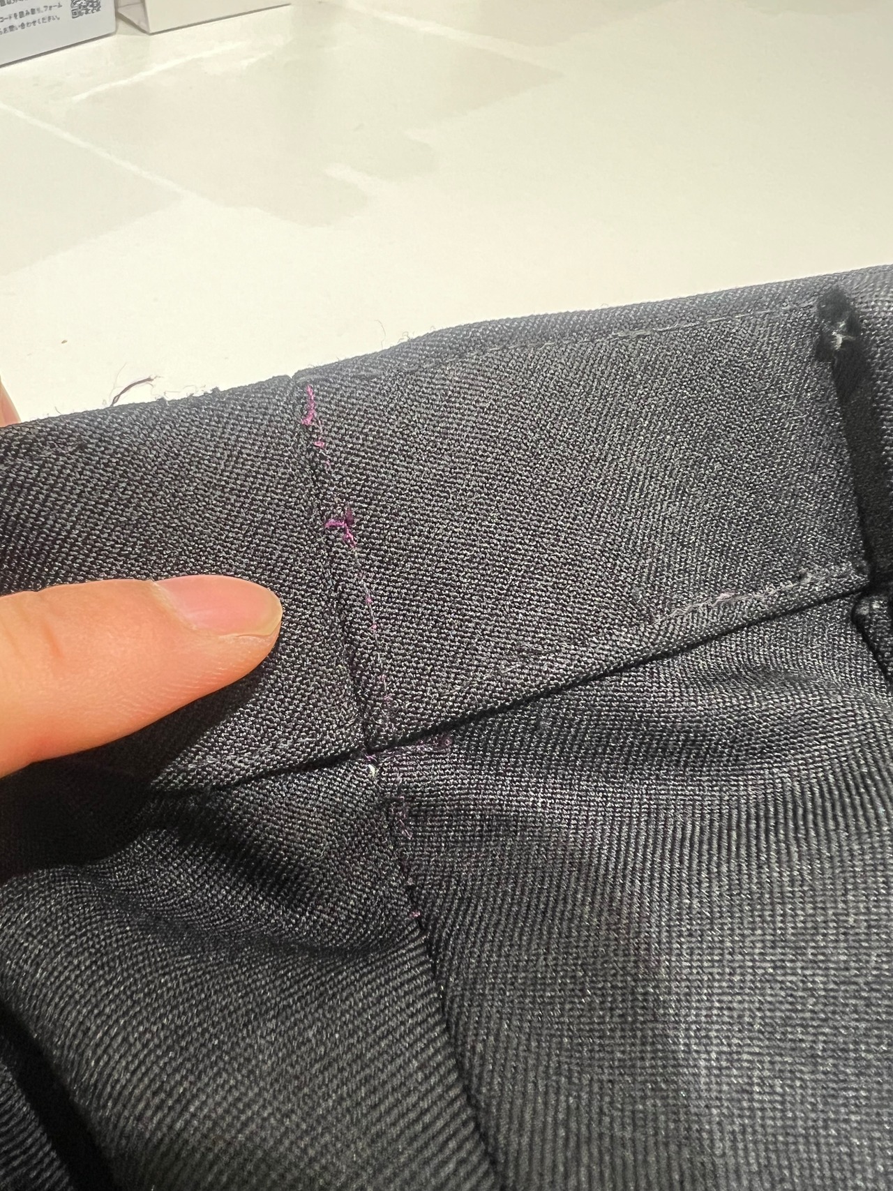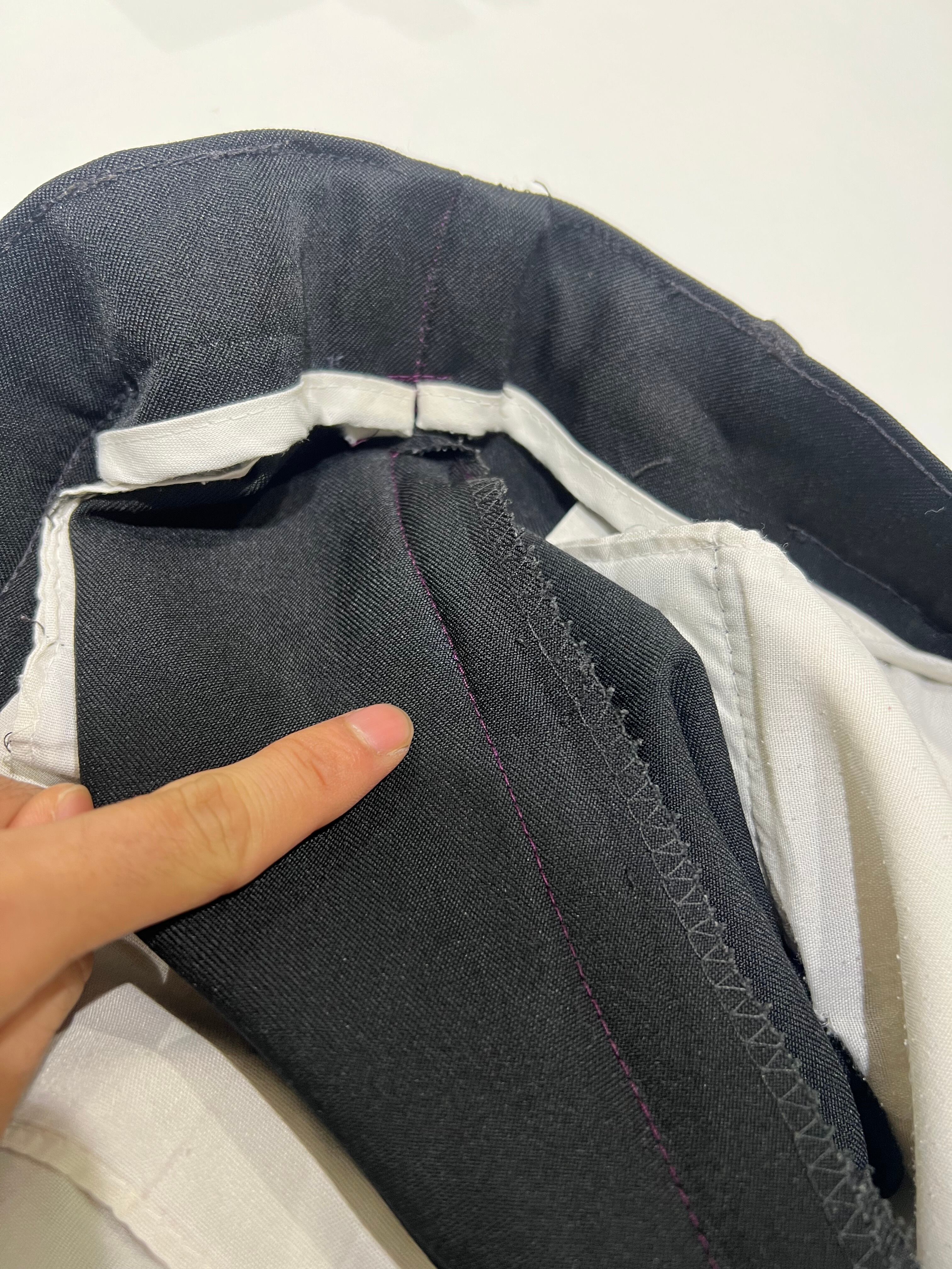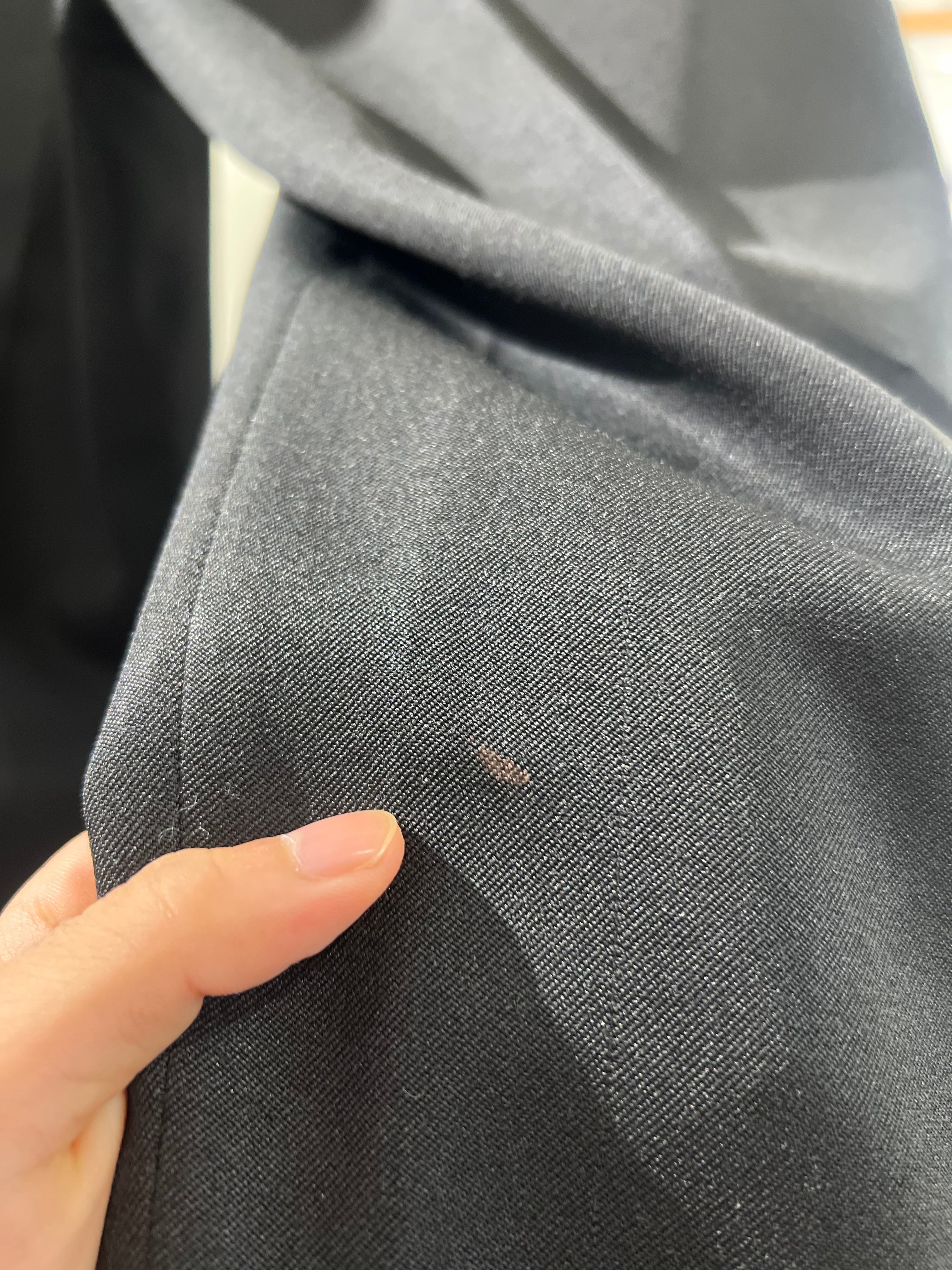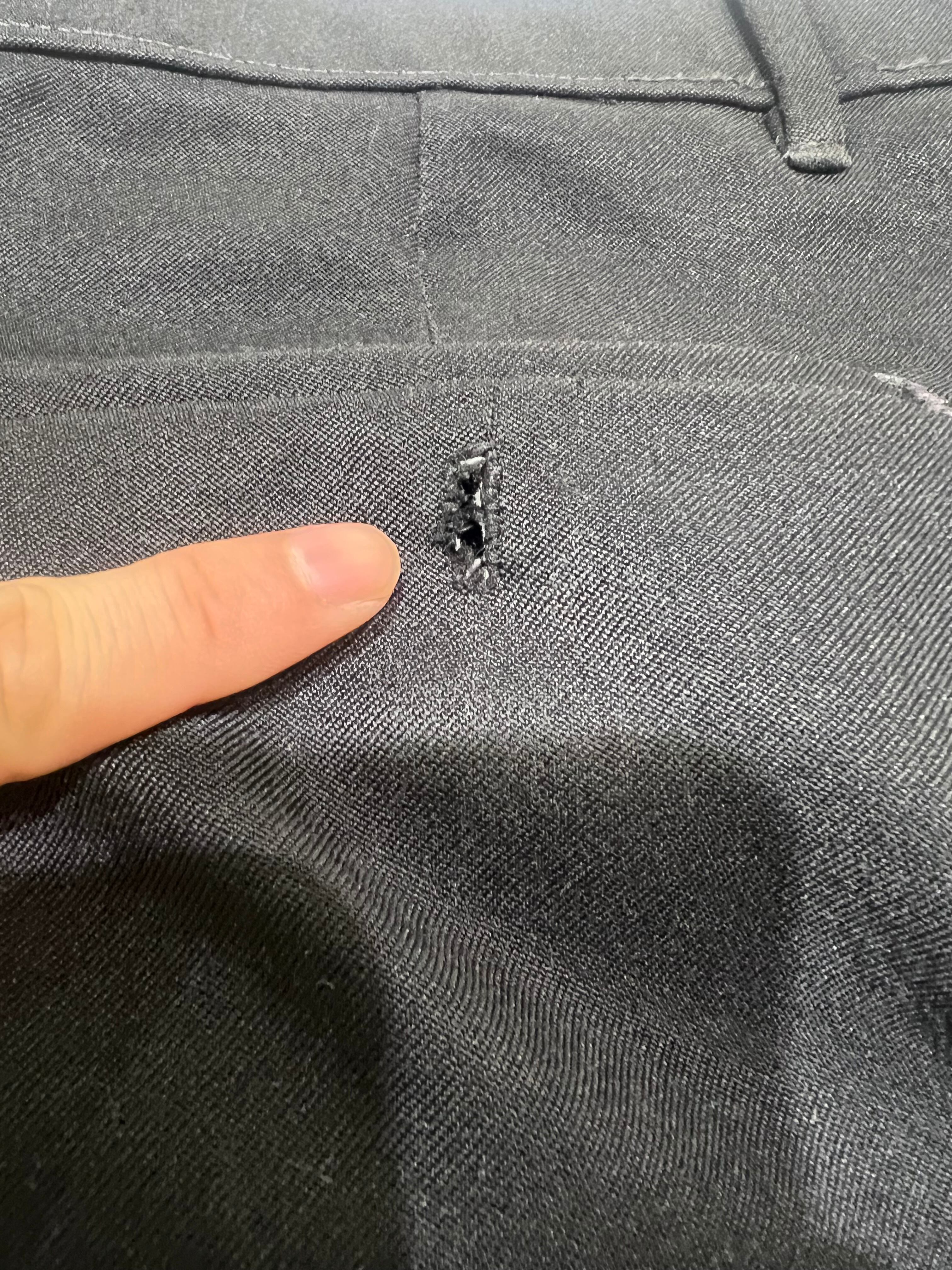 後ろポケットのボタンホールにリペアがあります。