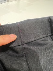 後ろベルトループからお尻辺りまでにリステッチされた箇所がありますが表に見えるのはベルトループの部分のみです。