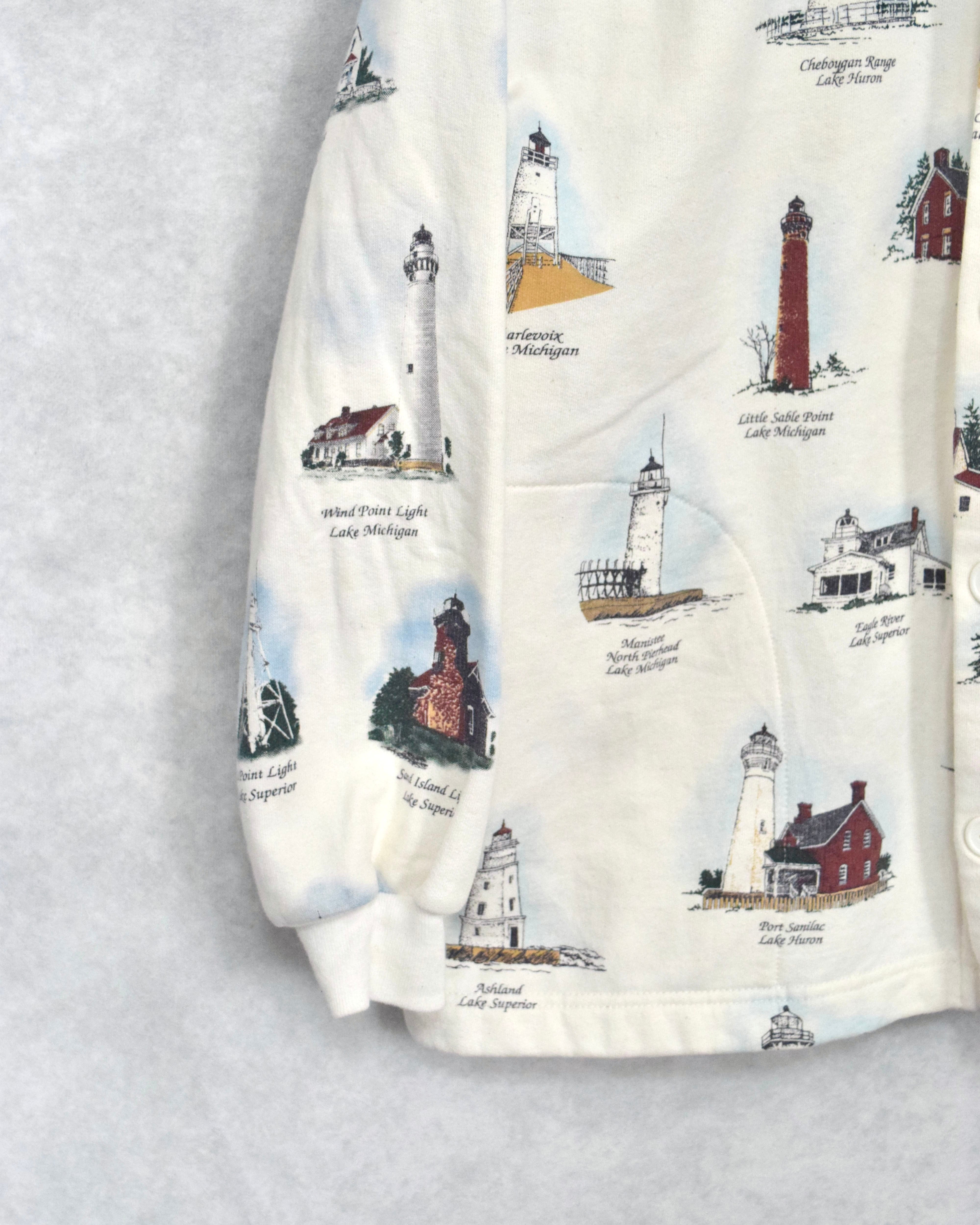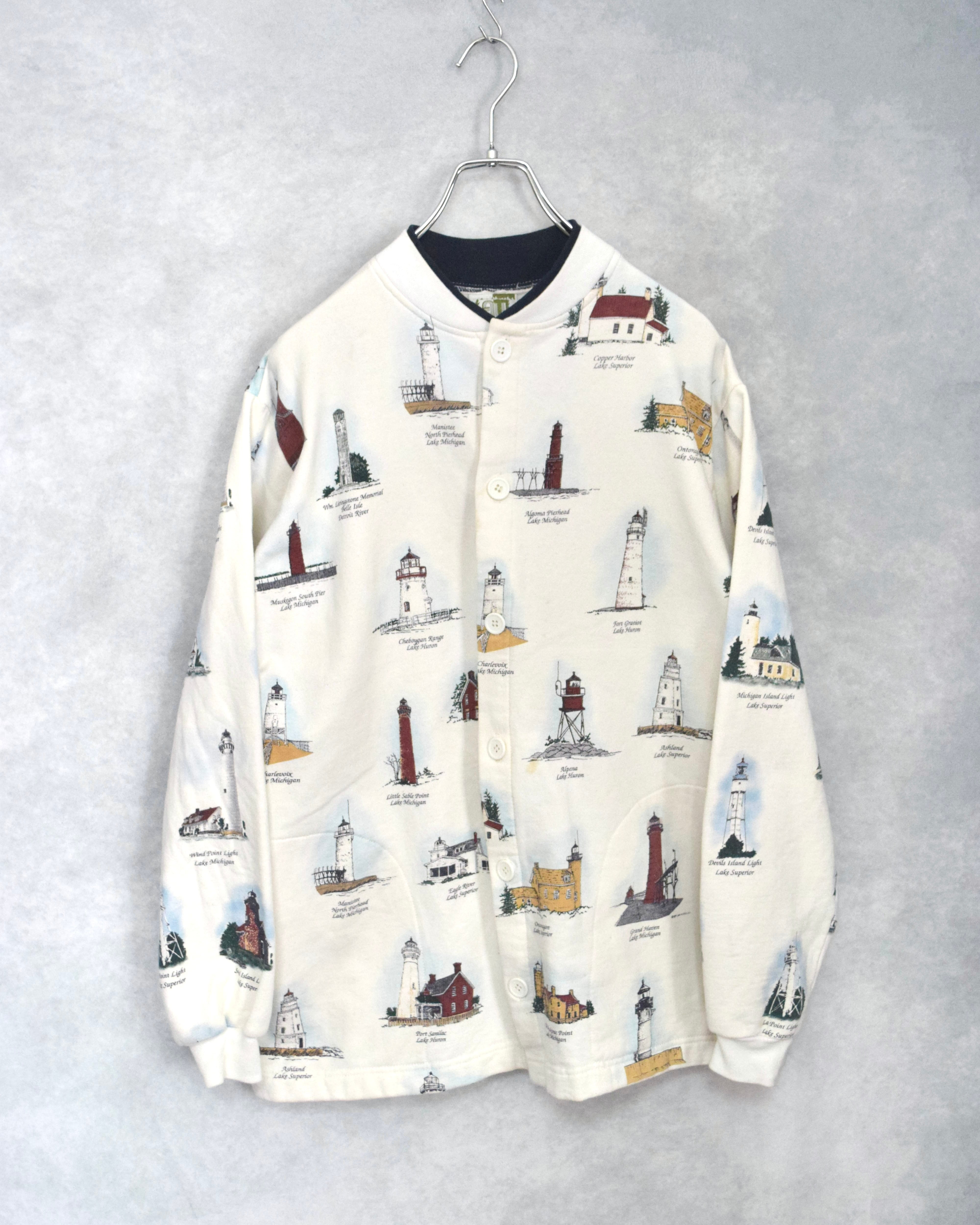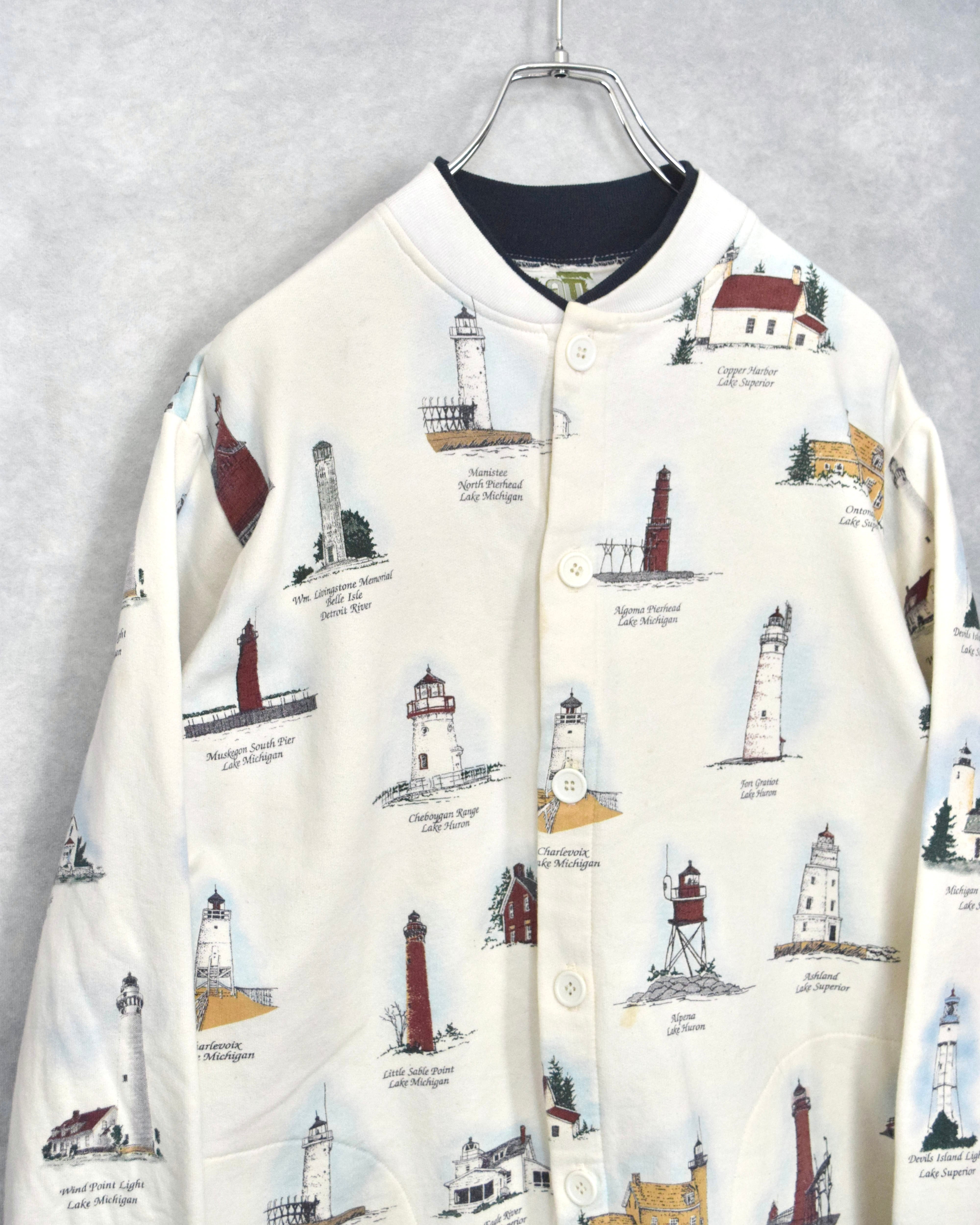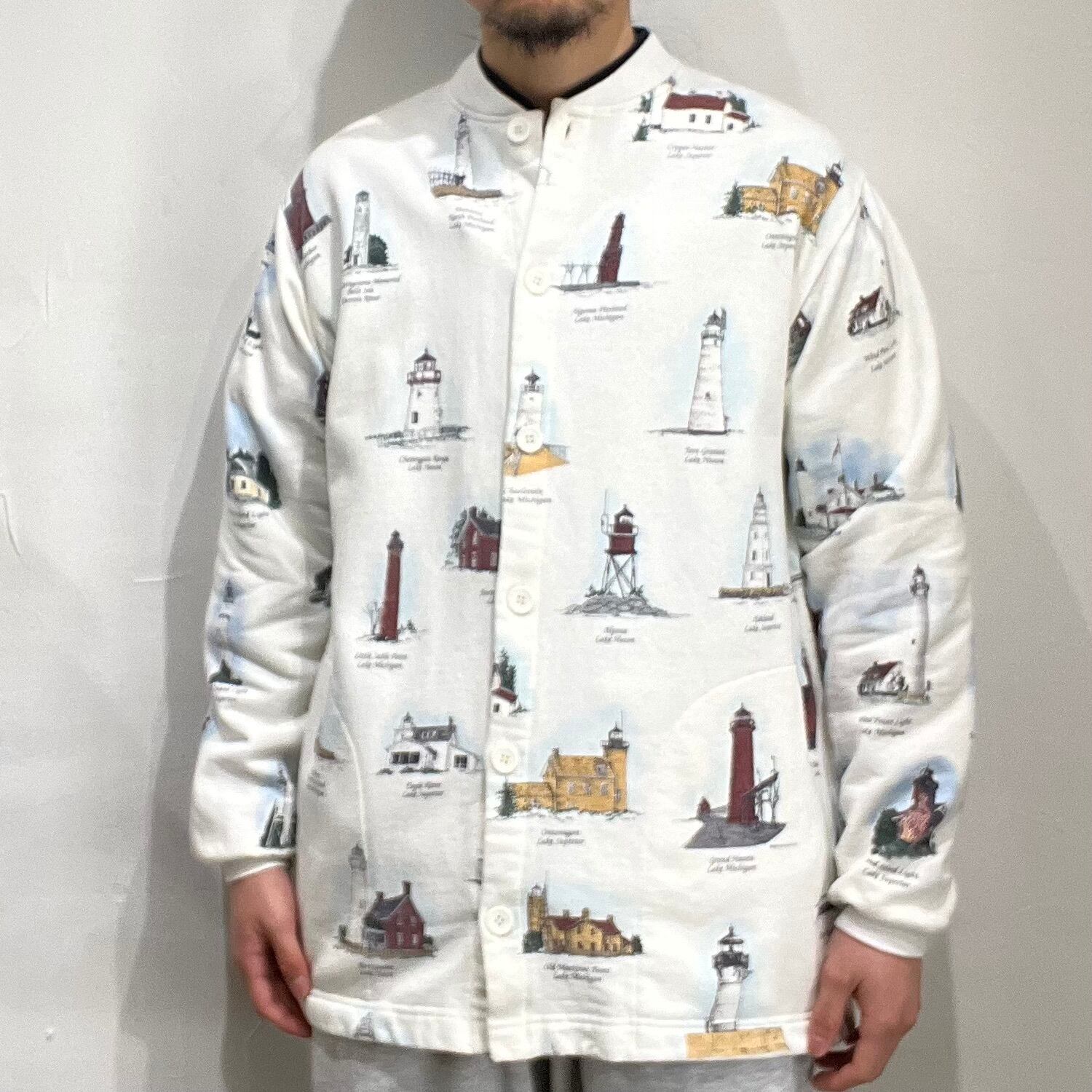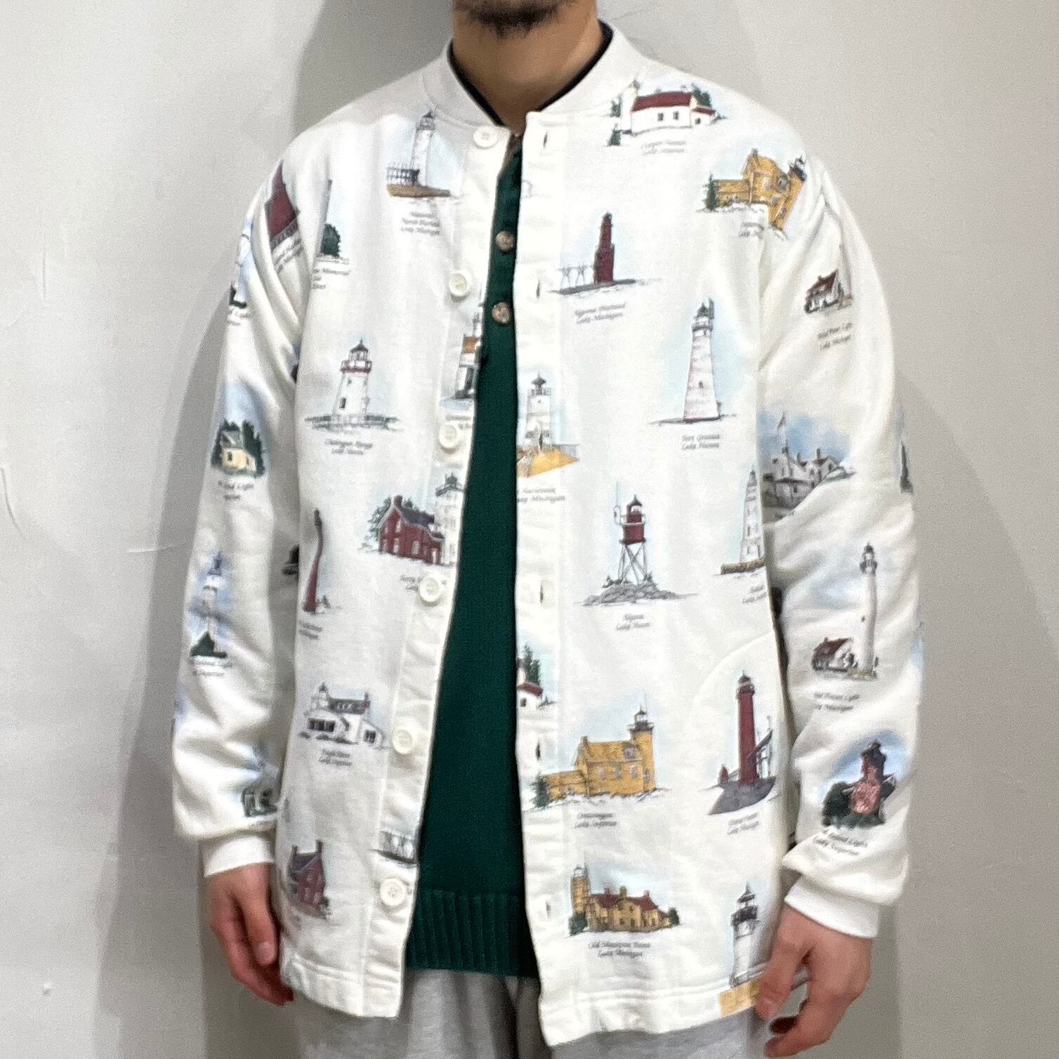 90年代ごろの灯台総柄スウェットカーディガン。
