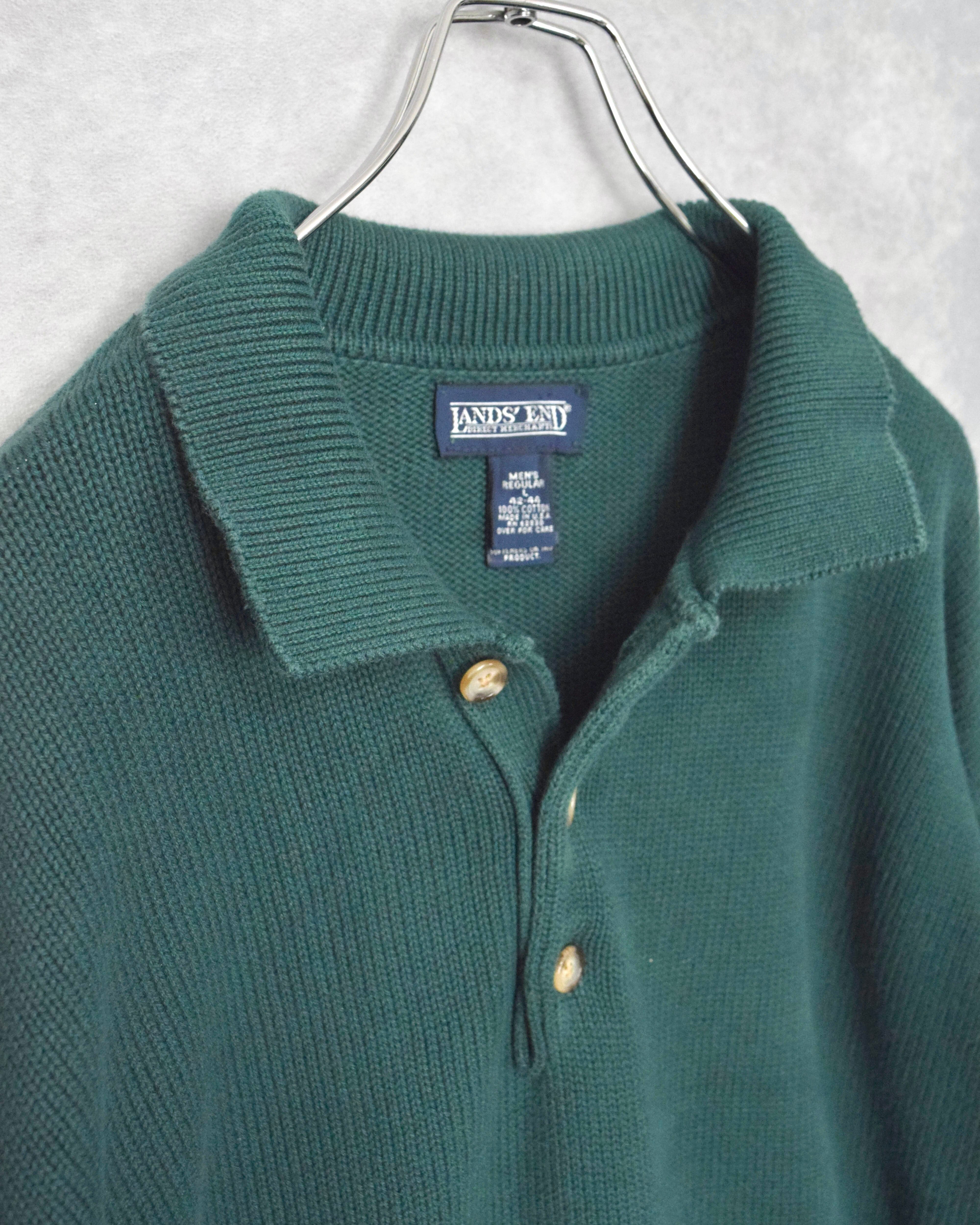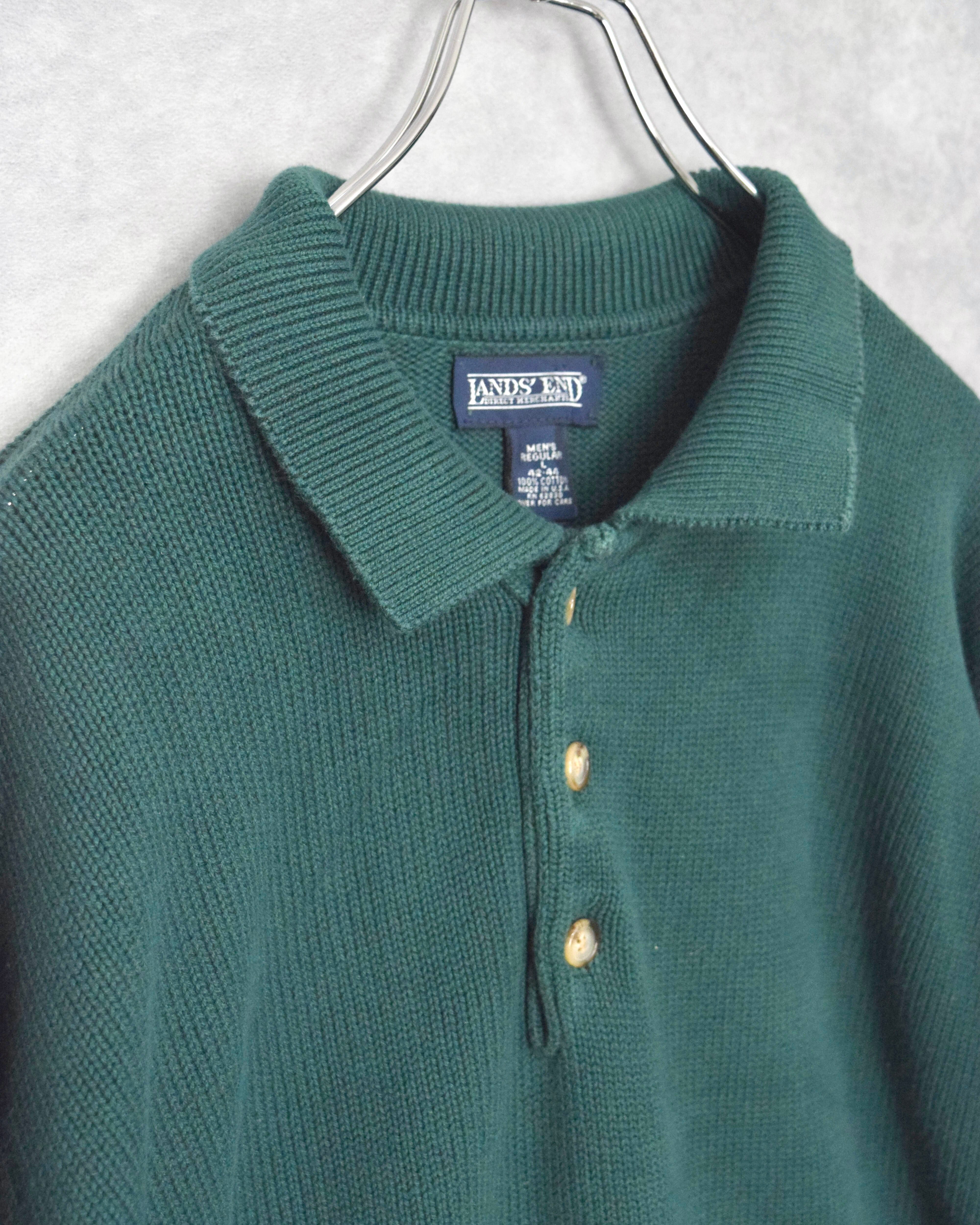 90s " lands'end " cotton knit polo shirt / made in usa / size L
