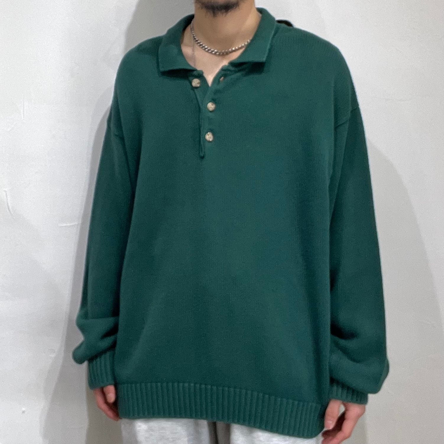 90年代頃のランズエンドのコットンニットポロシャツ。