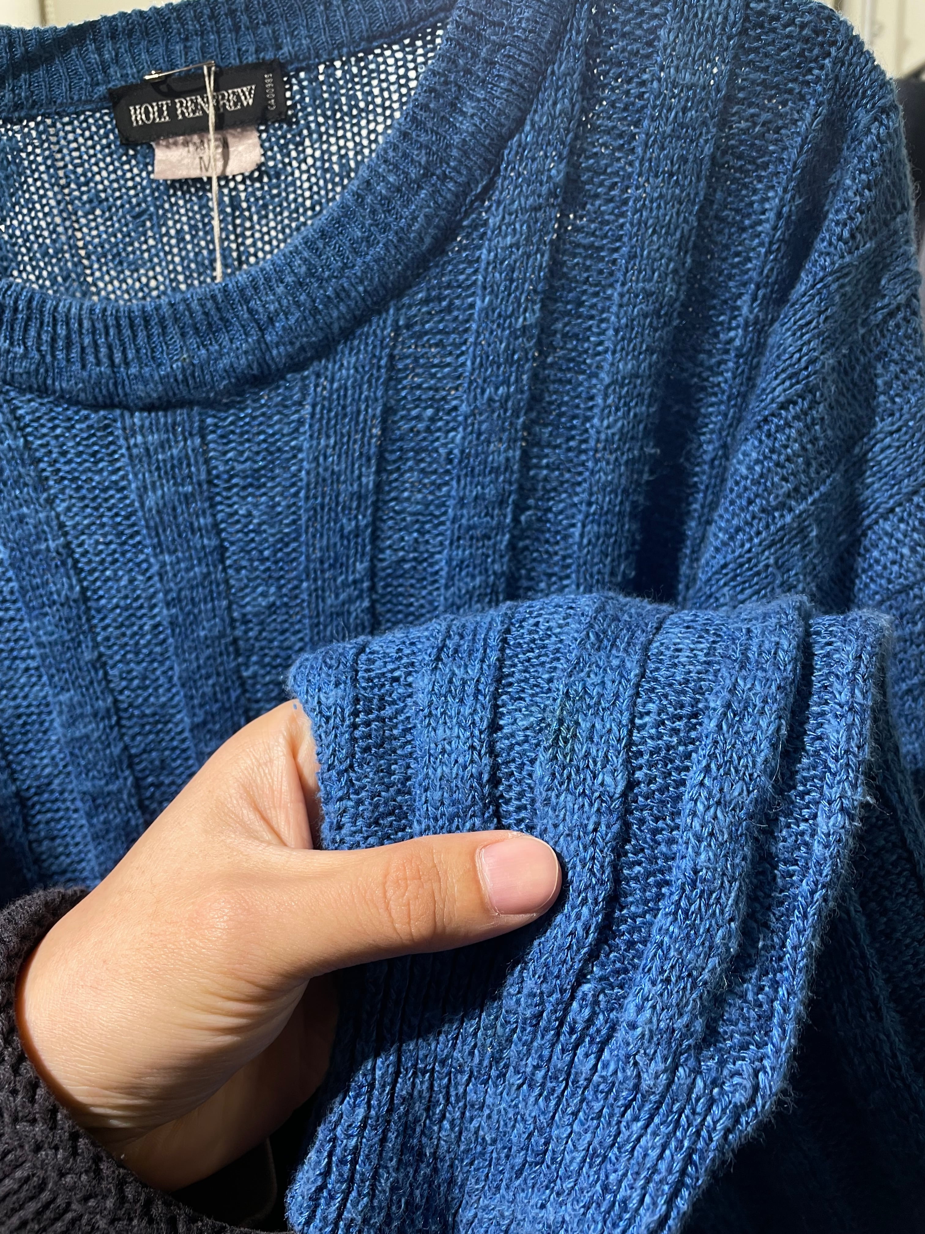 90s indigo cotton x linen x acrylic knit / made in italy / size ML