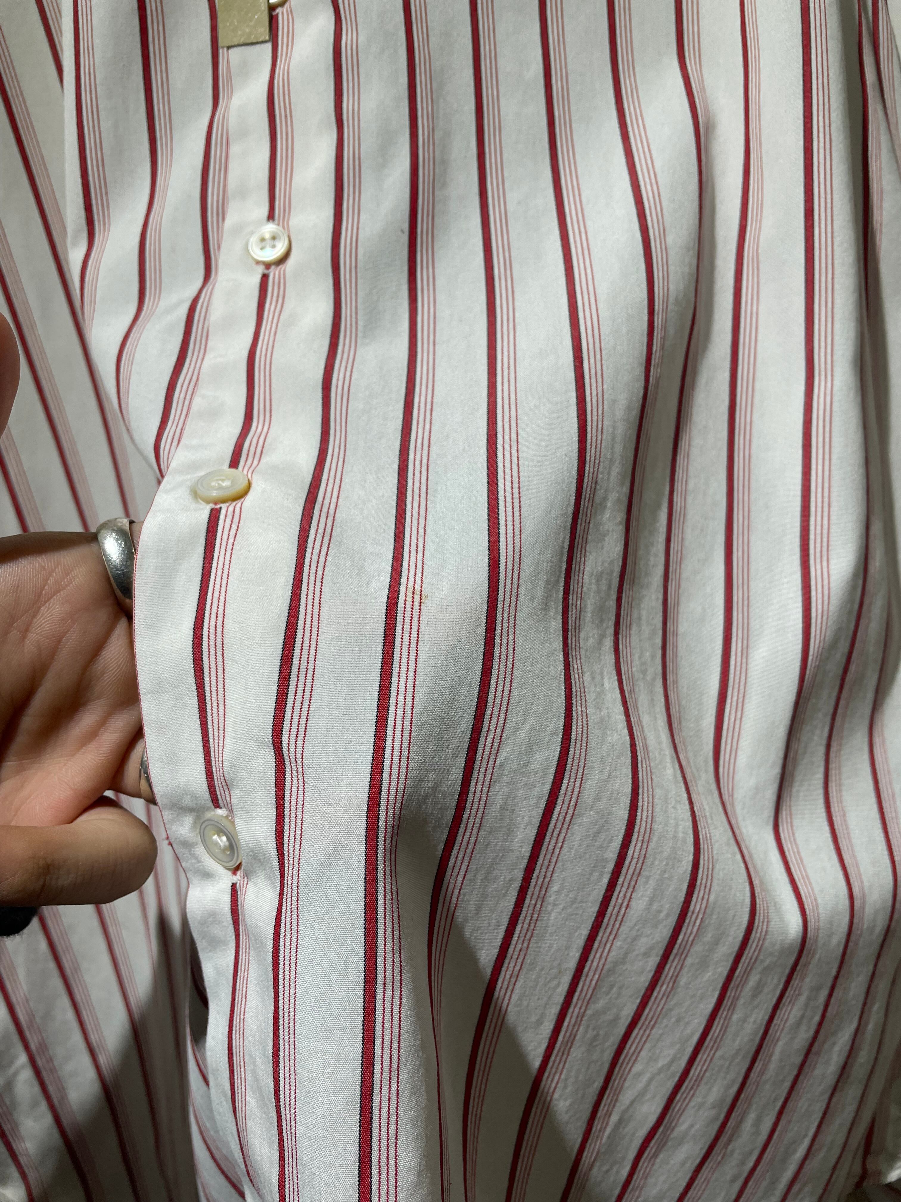 90s " Harvie & Hudson " stripe cotton shirt / made in England / size m