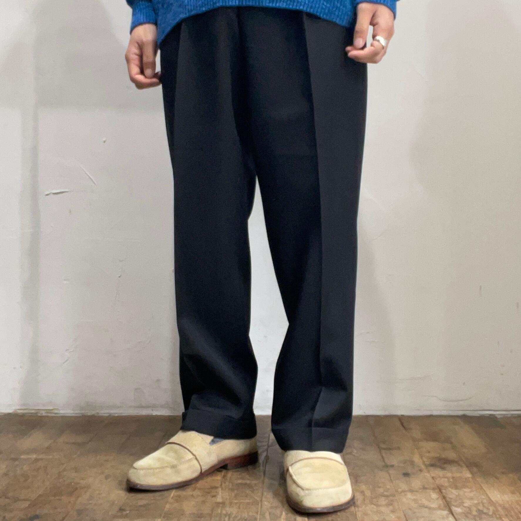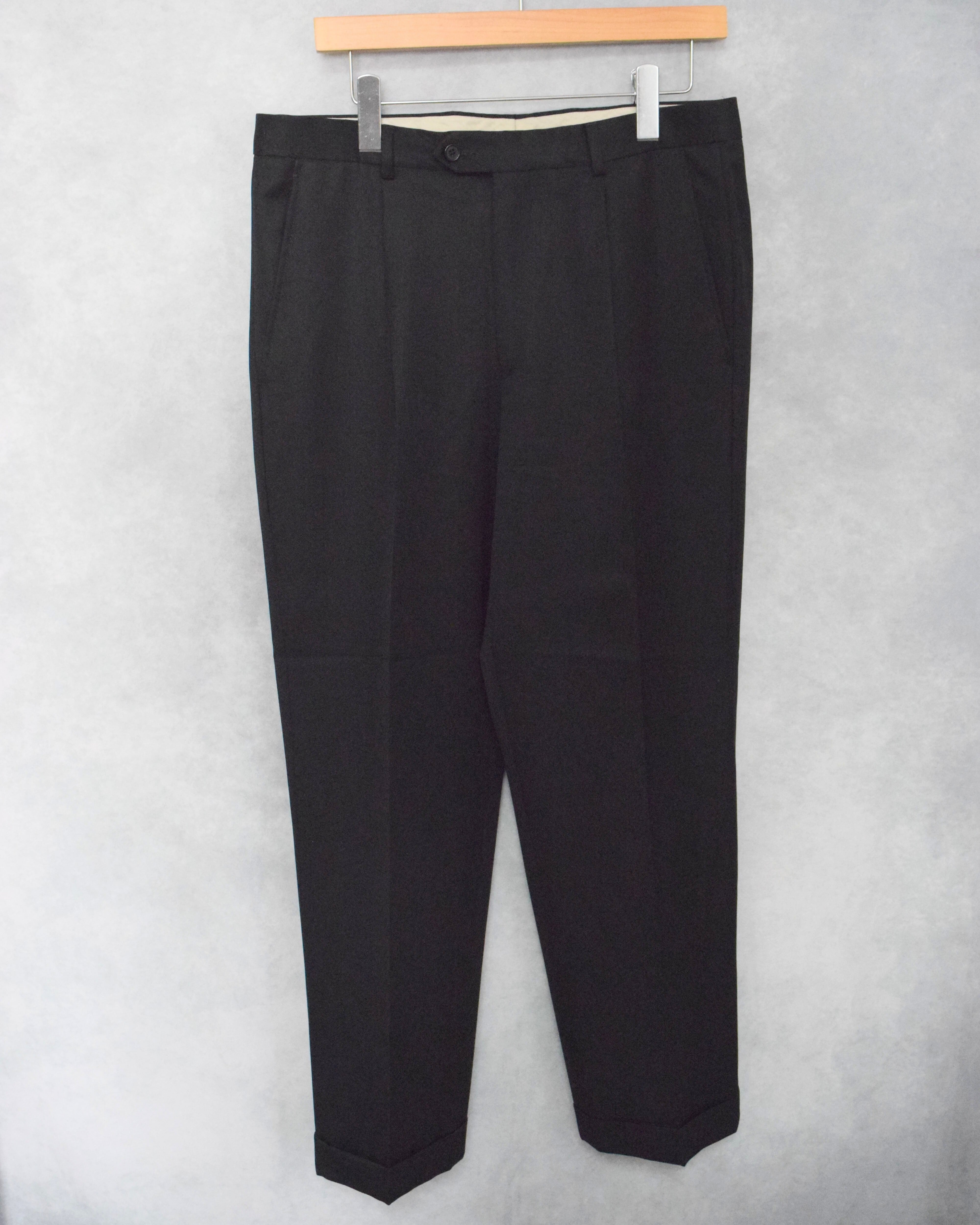 90s " pazoni " black summer wool one tuck slacks / made in italy / size 34 x 30