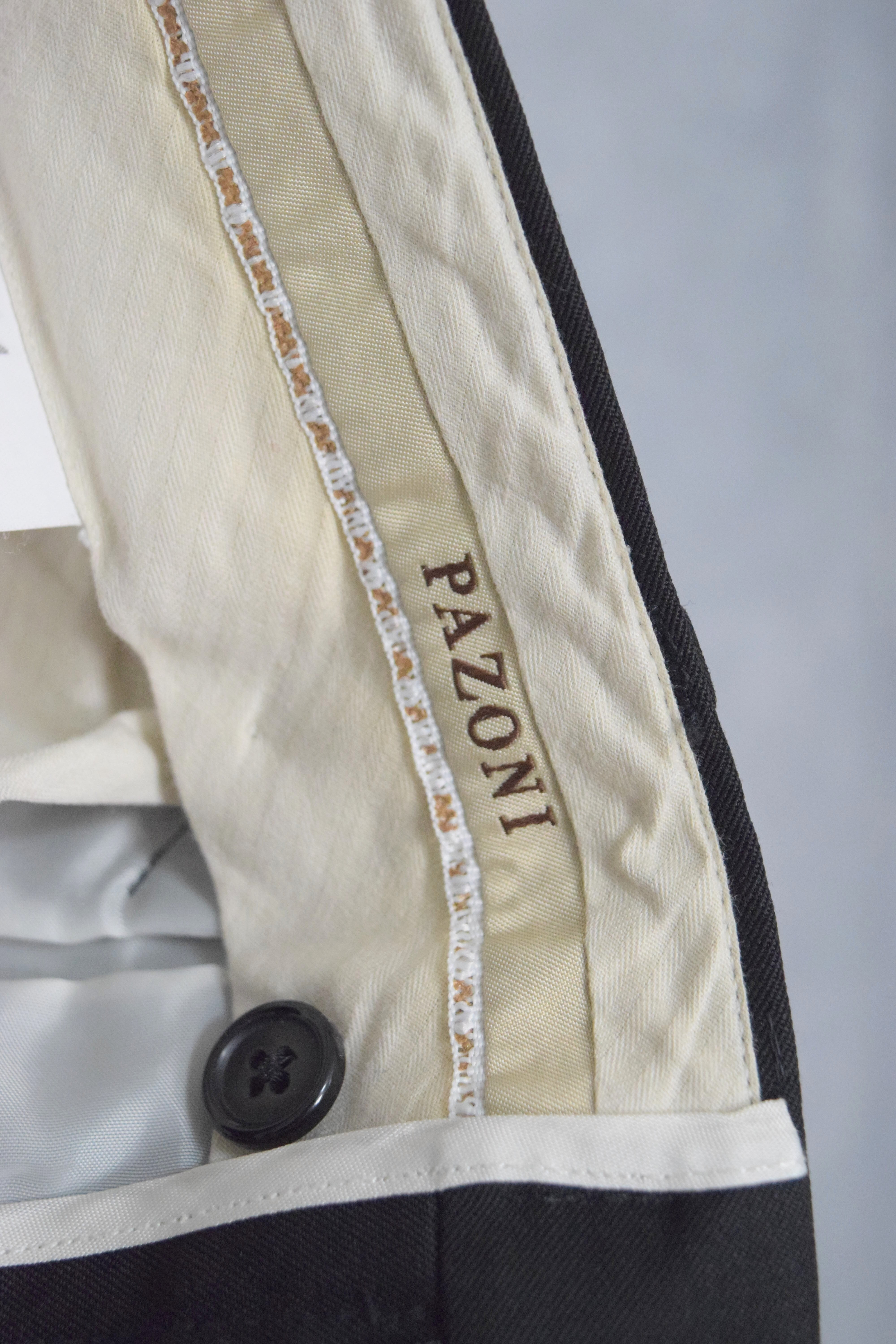 パゾーニのブラックサマーウールワンタックスラックス。