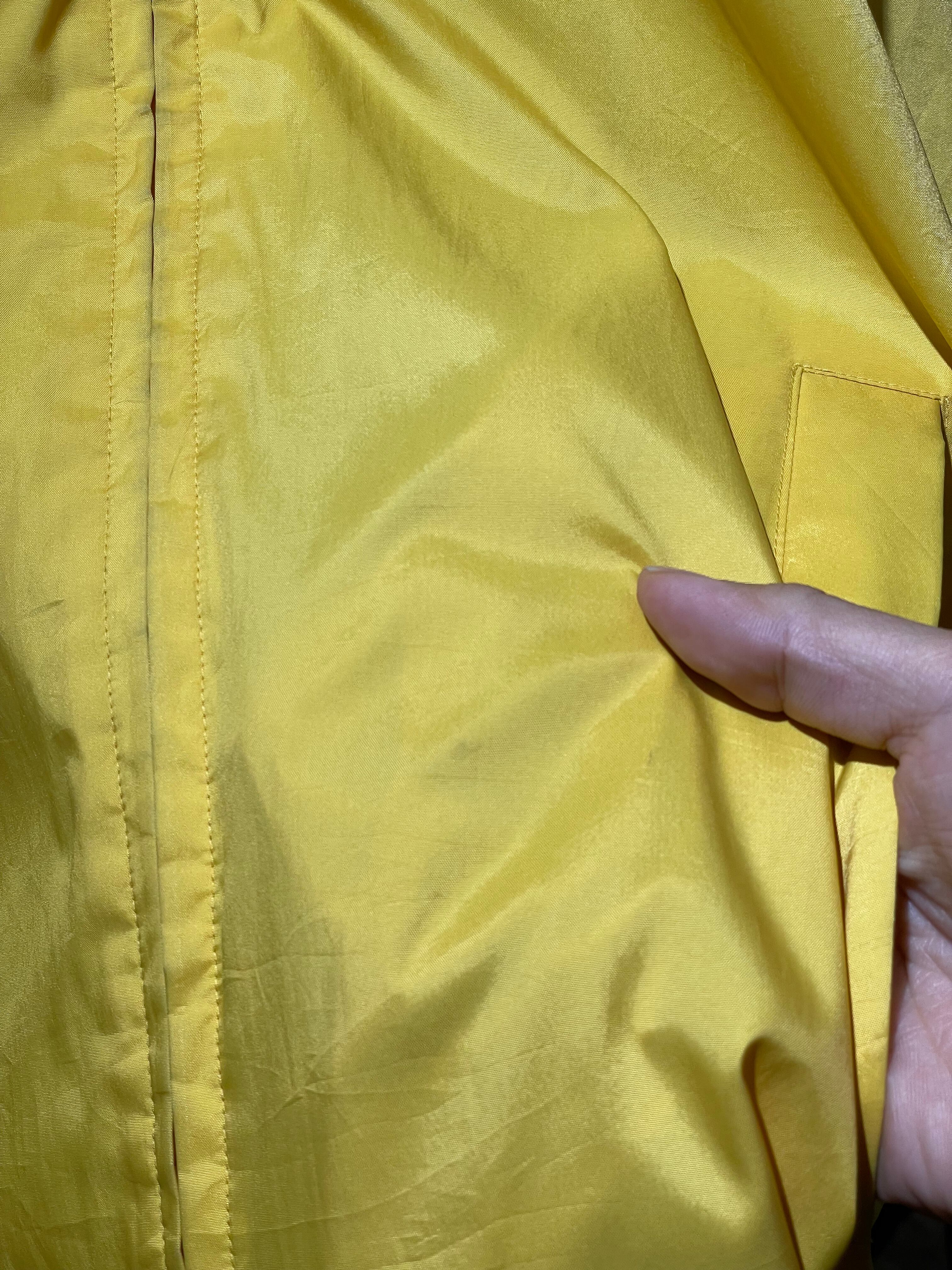 前面右裾、左ポケット付近、右胸、背面首元に目立たない程度の小さな薄汚れがあります。