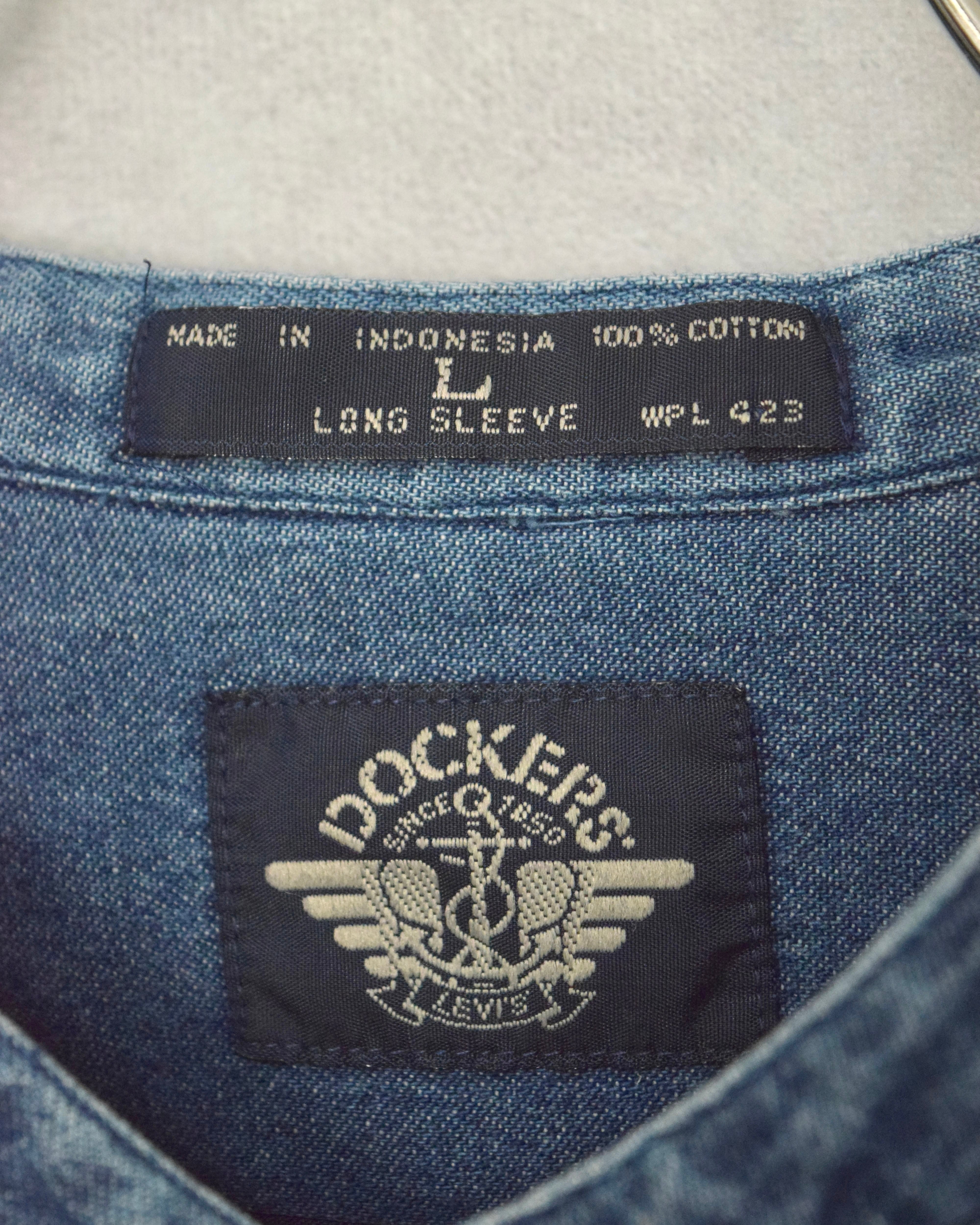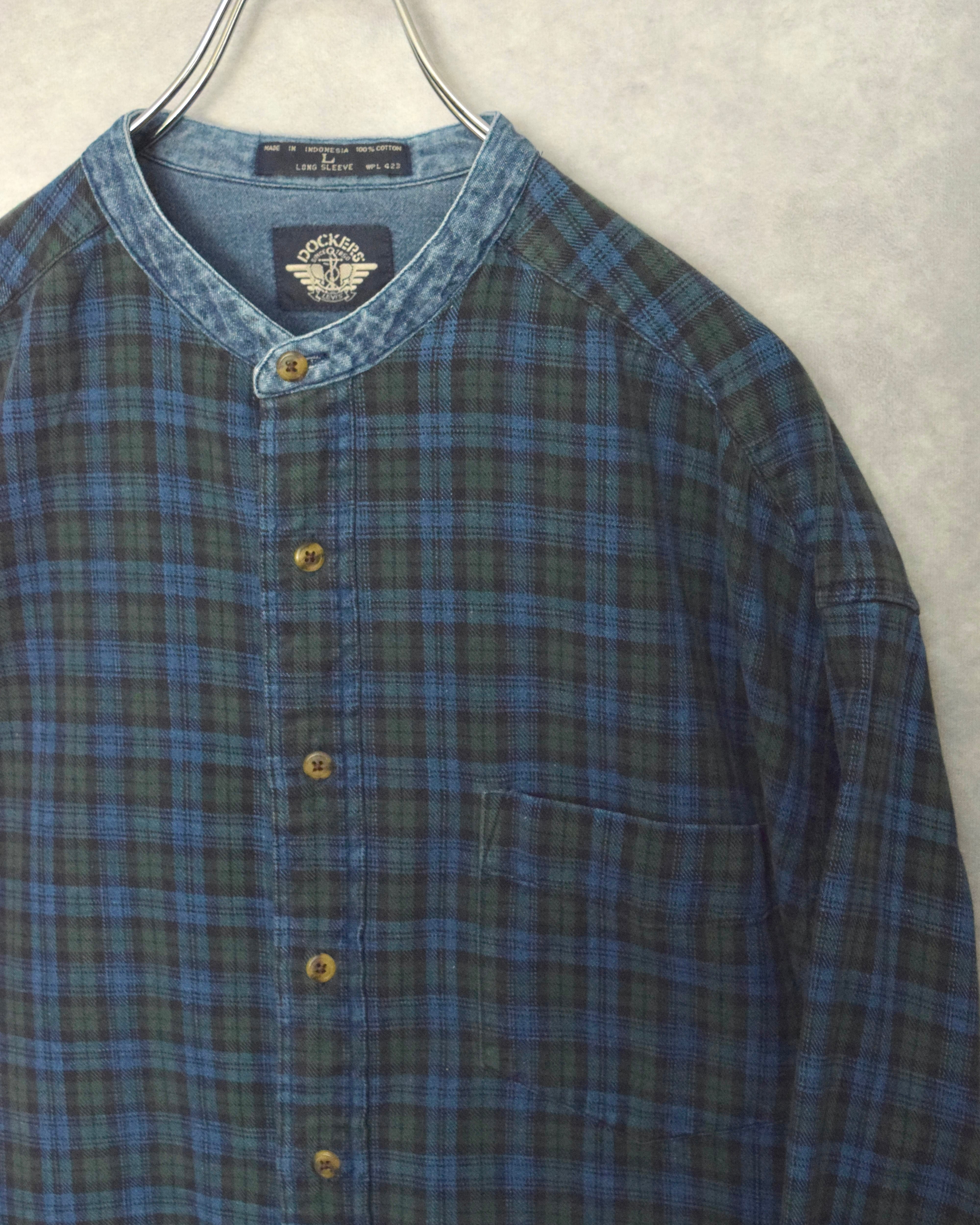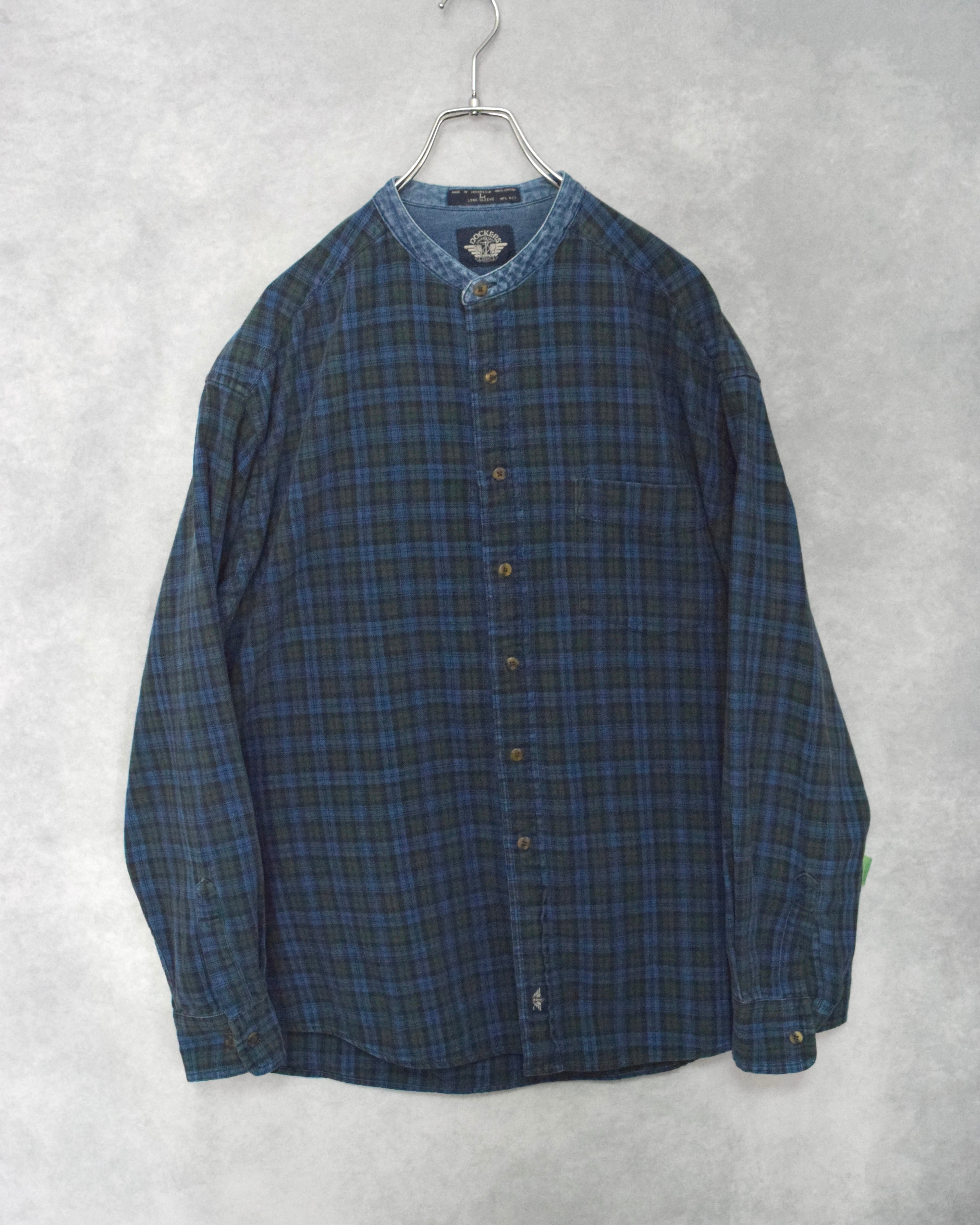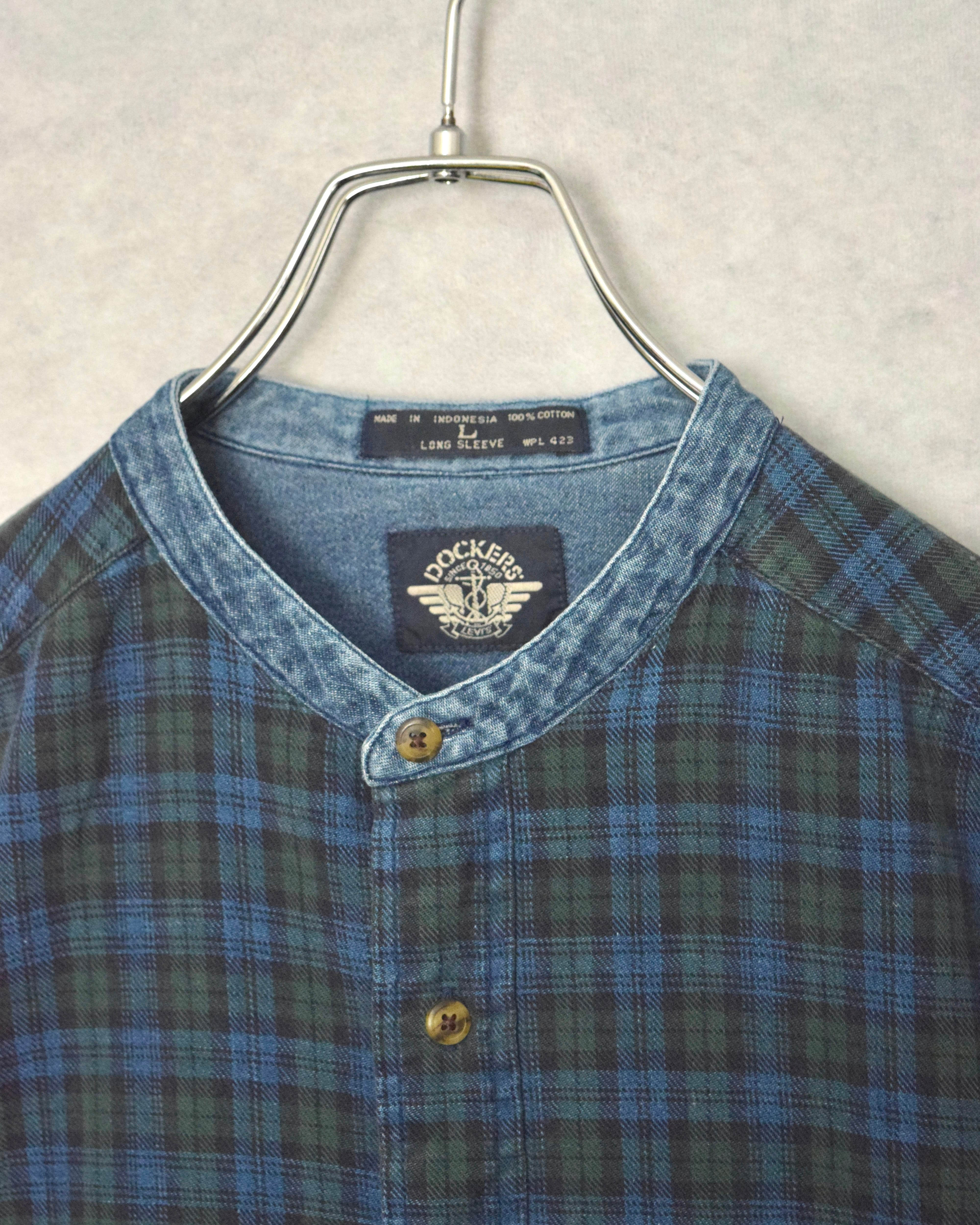 90s " dockers / levi's " stand collar indigo cotton x denim shirt / size L