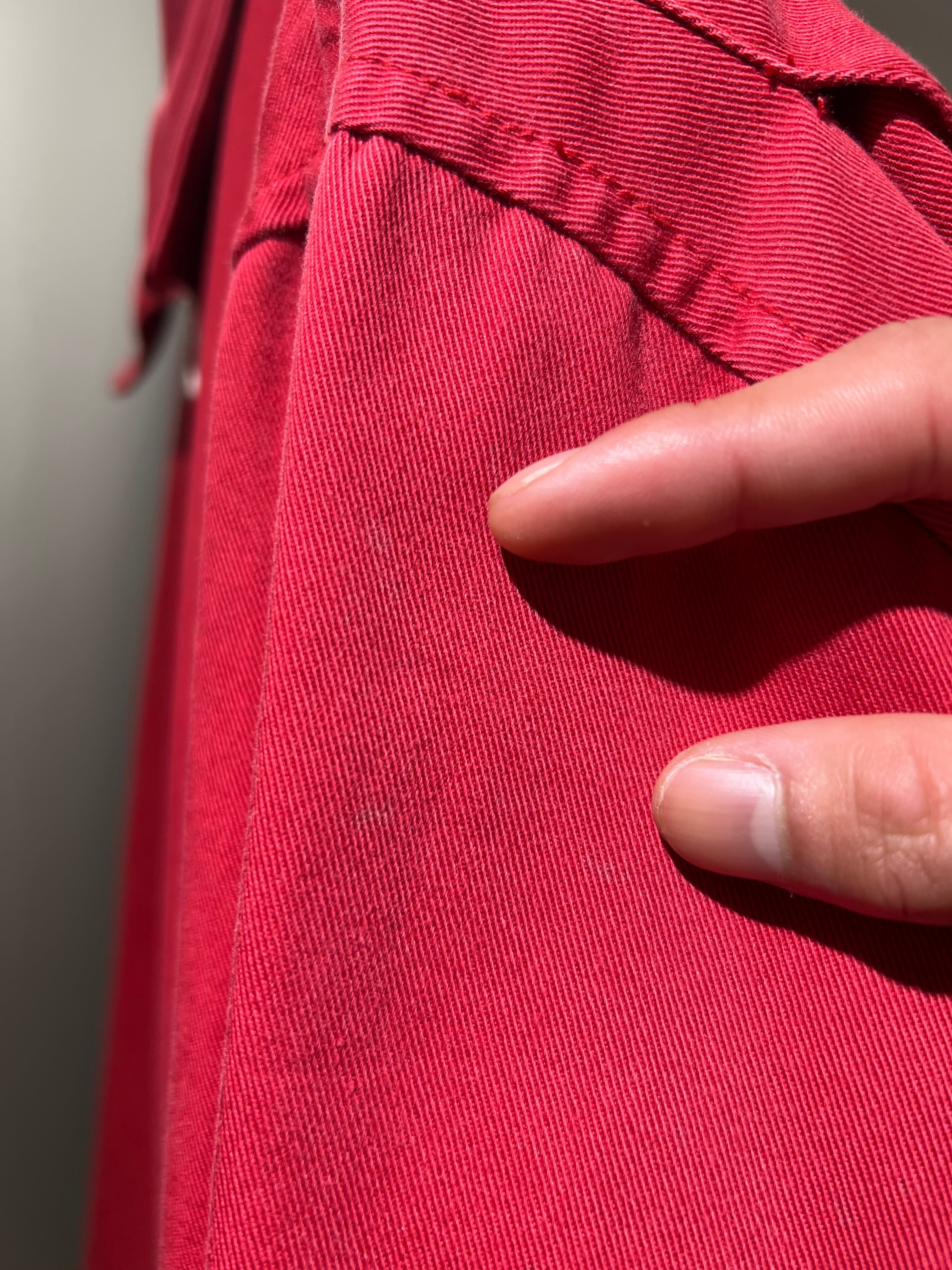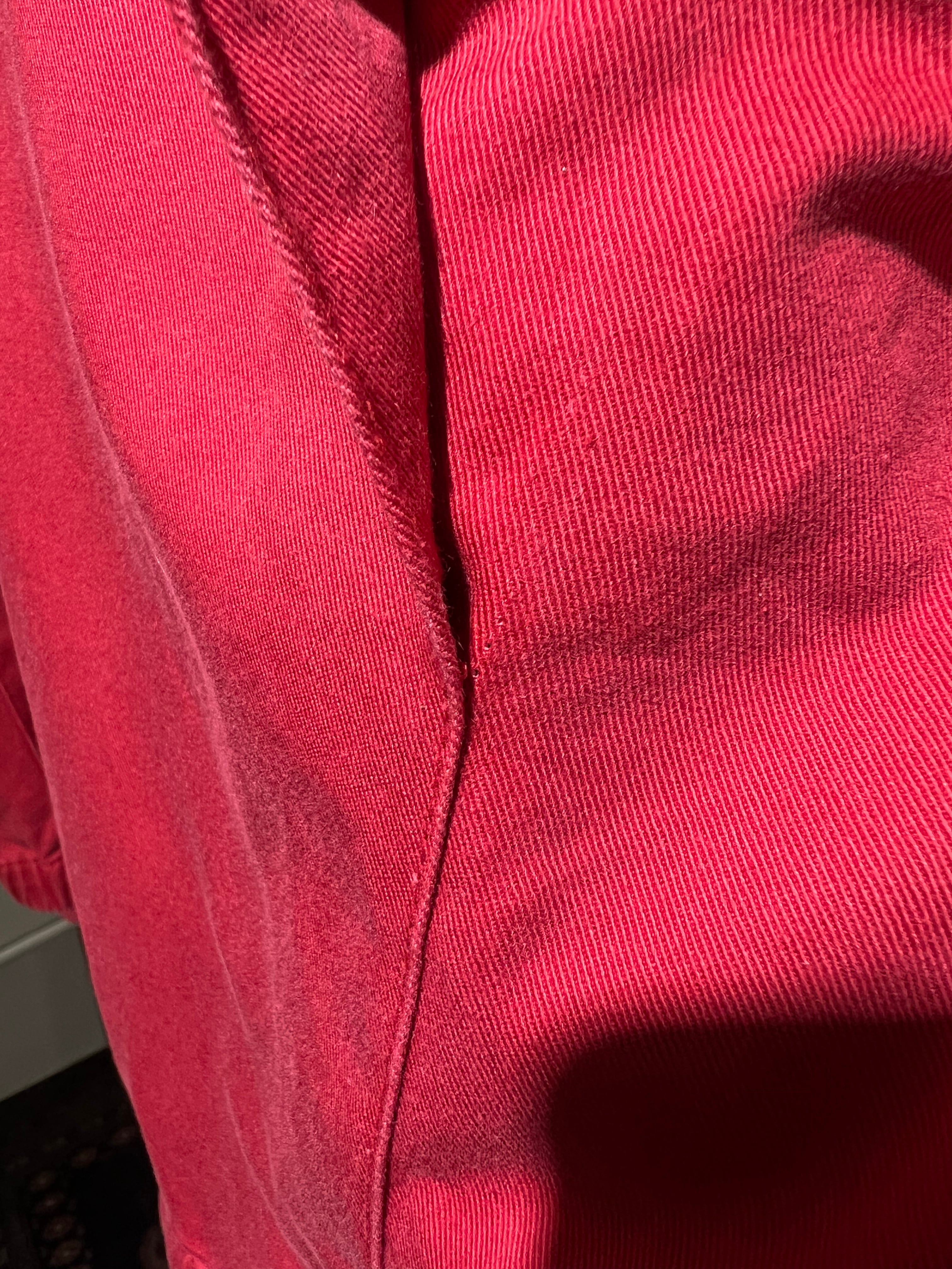 右アクションプリーツの下部に少しステッチ抜けがあります。
