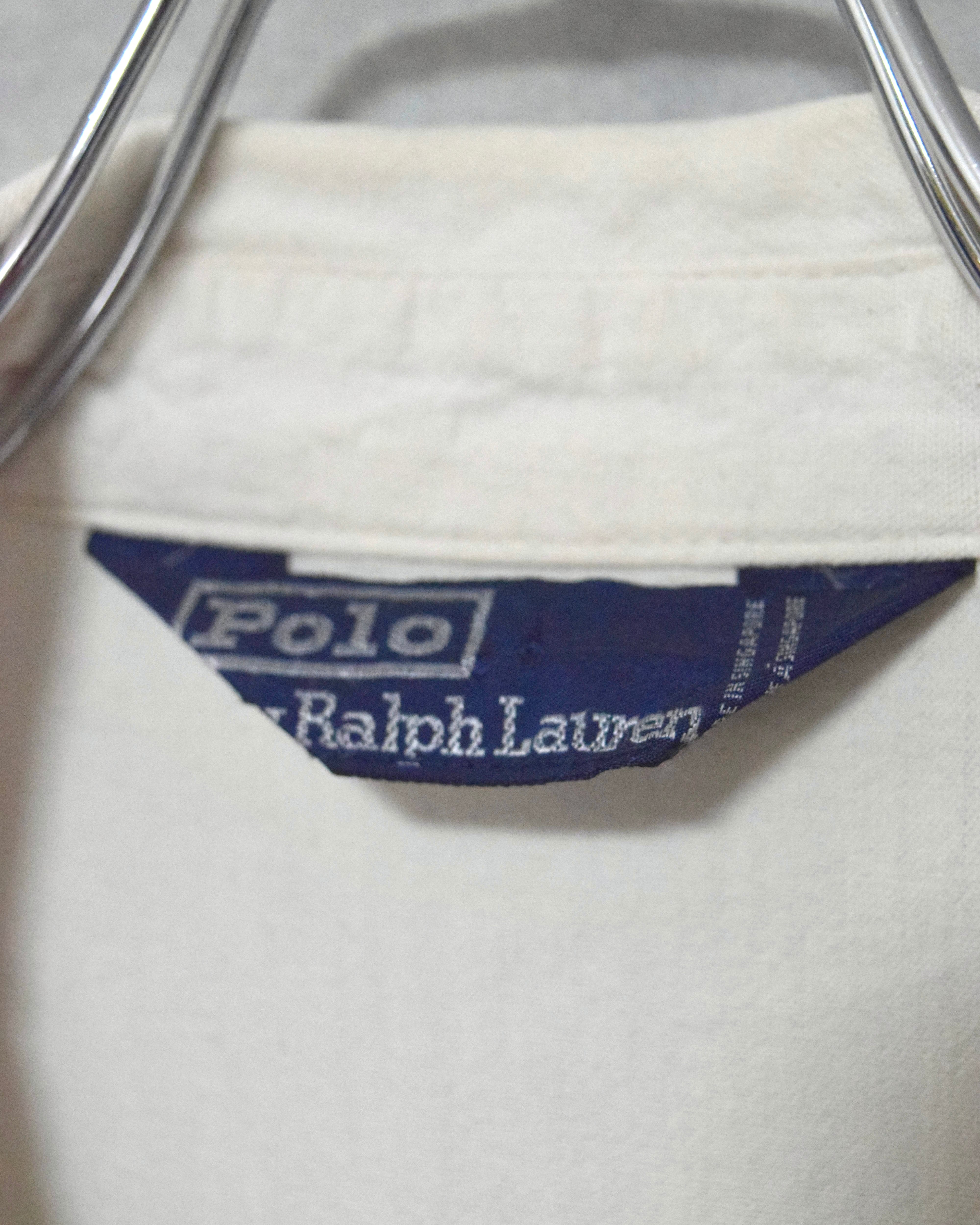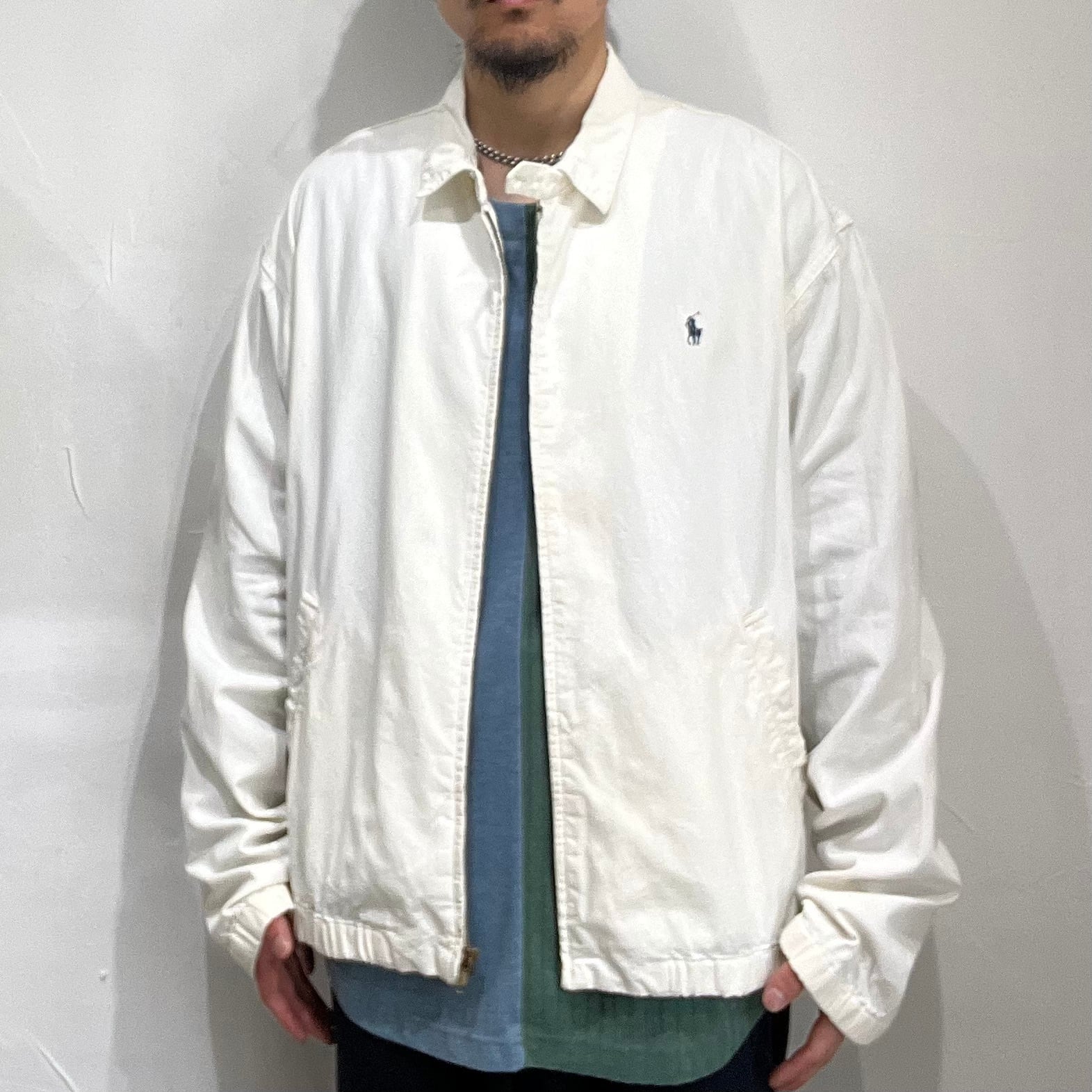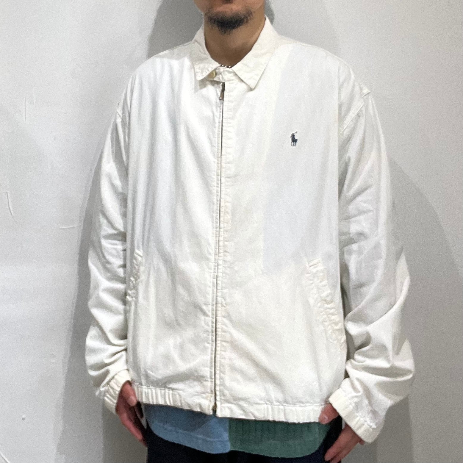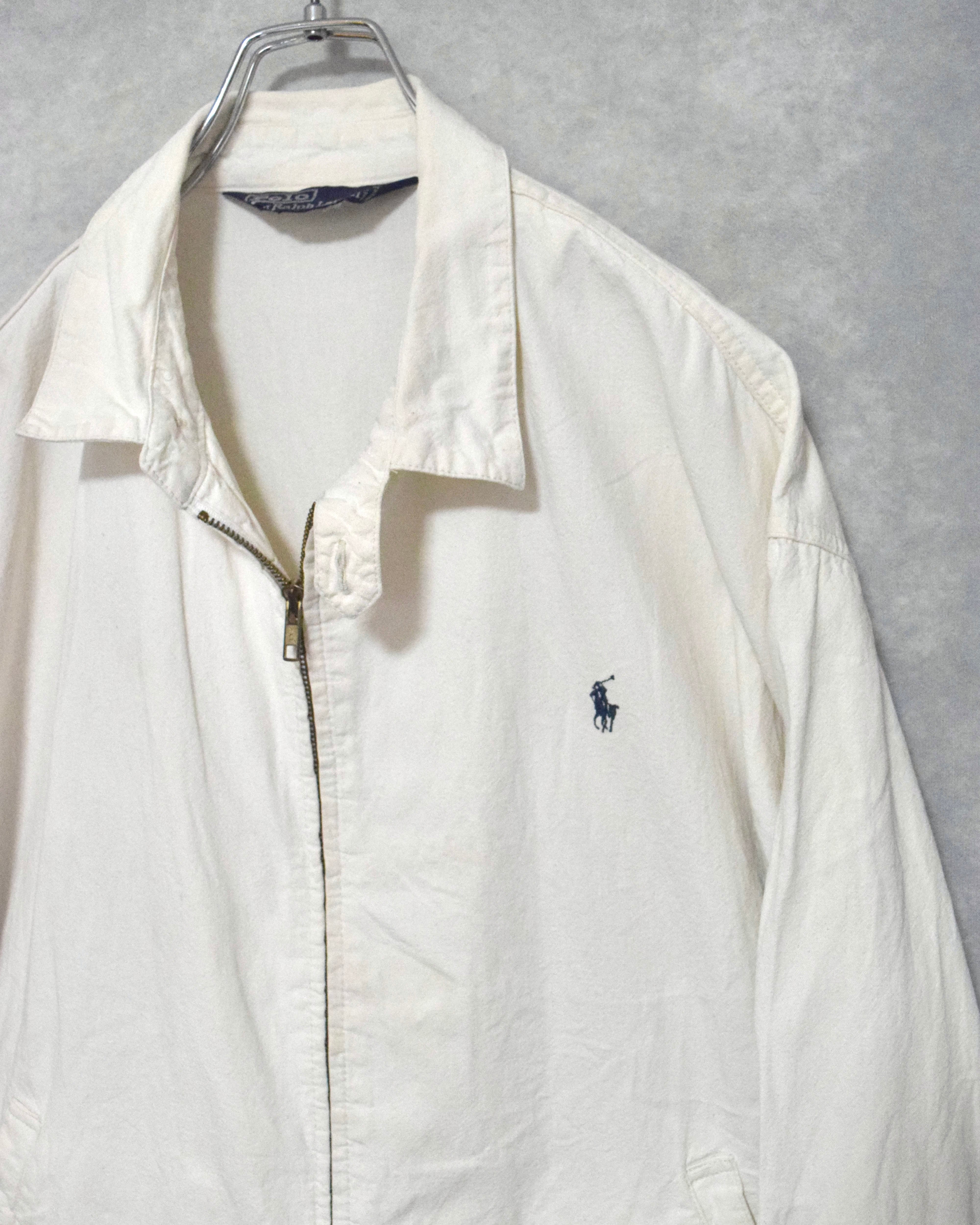 90年代頃のポロラルフローレンのホワイトシャンブレージップアップジャケット。