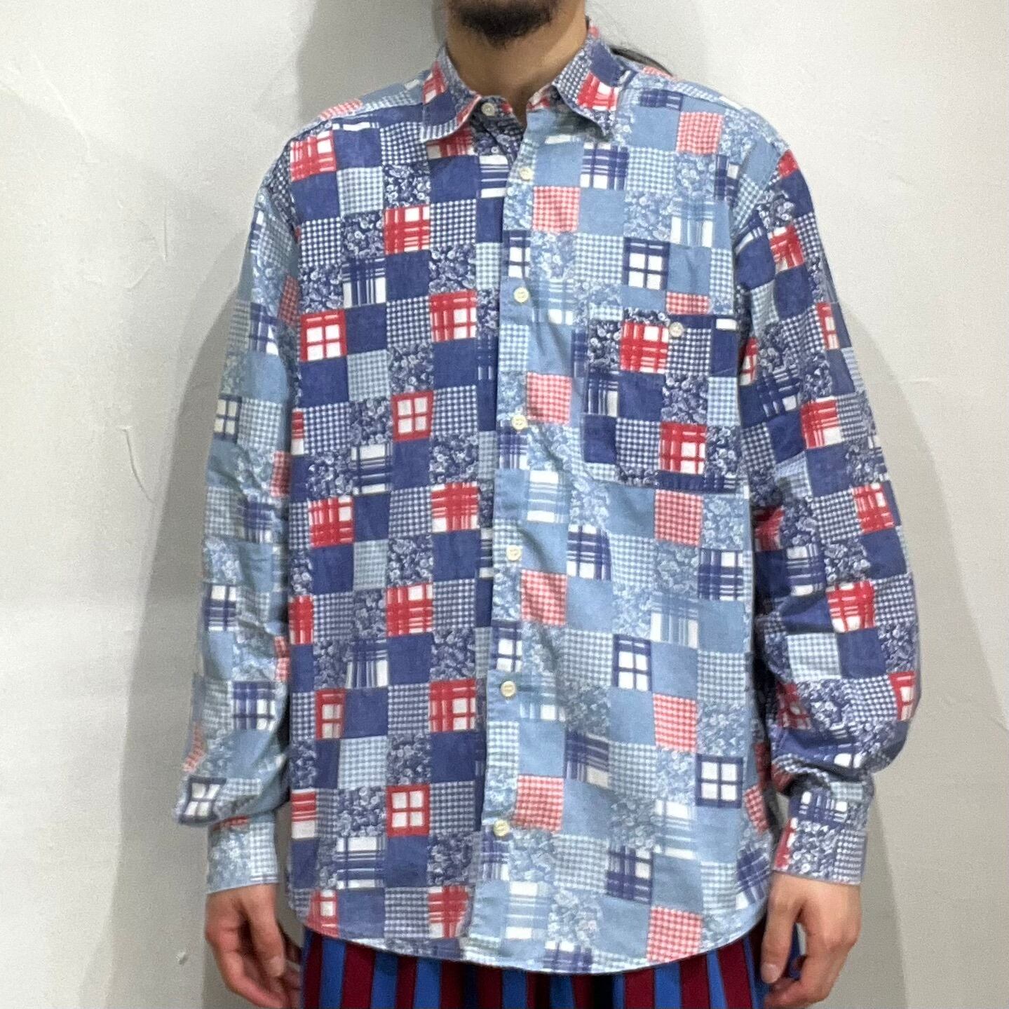 90年代頃のパッチワークパターンコットンシャツ。