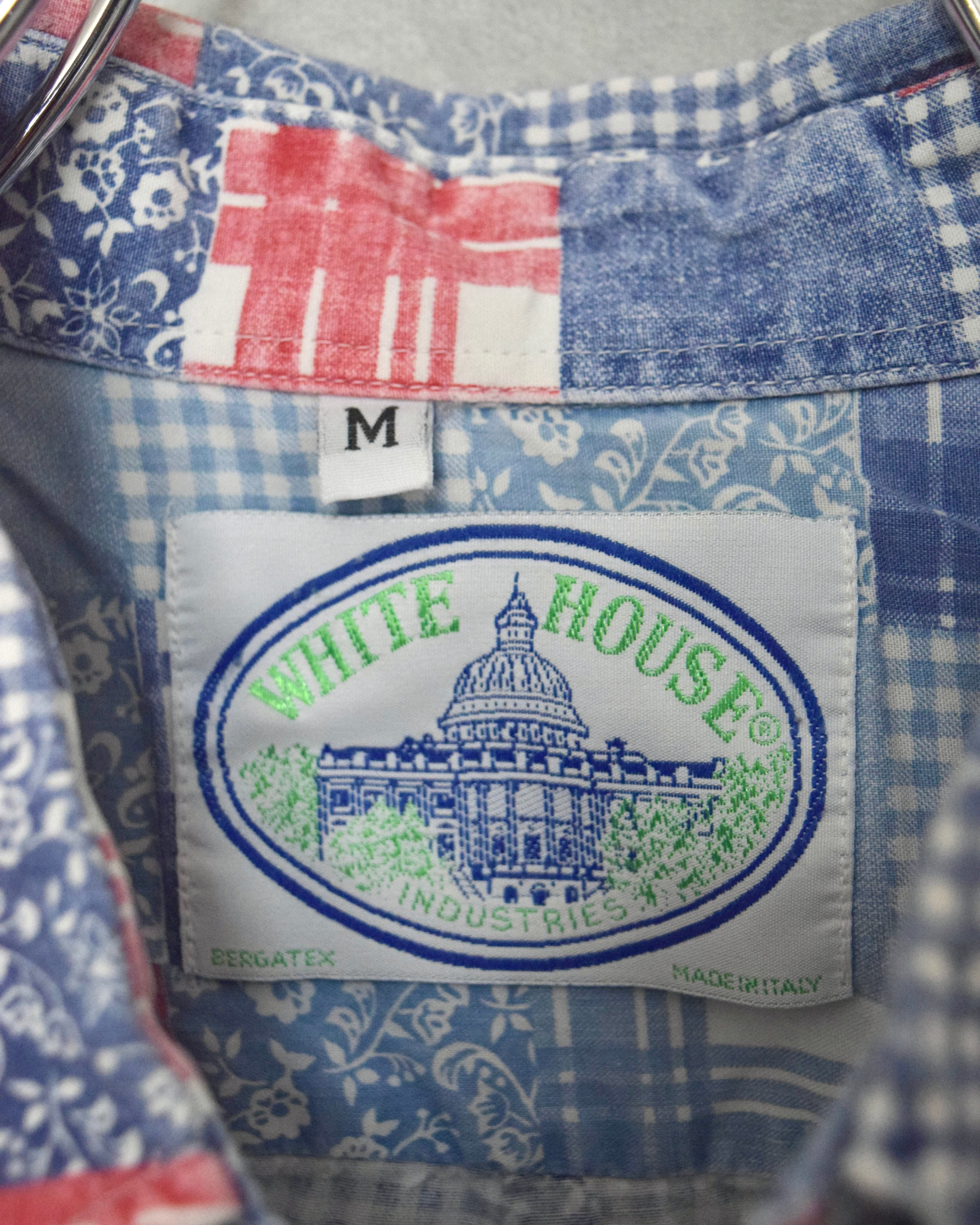 90s patchwork pattern cotton shirt / made in italy / size m