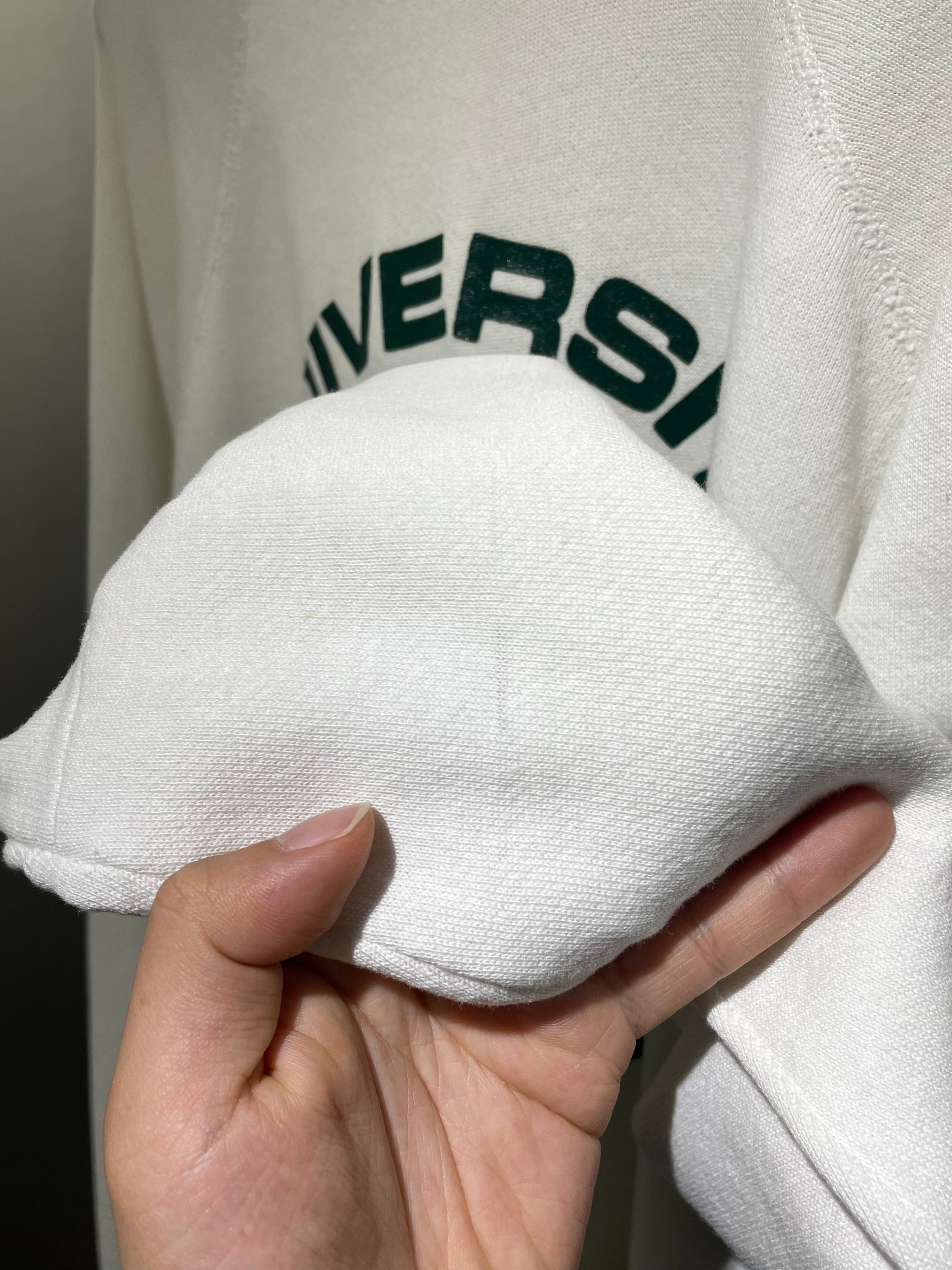 年代らしいコットンポリの柔らかなスウェット生地。