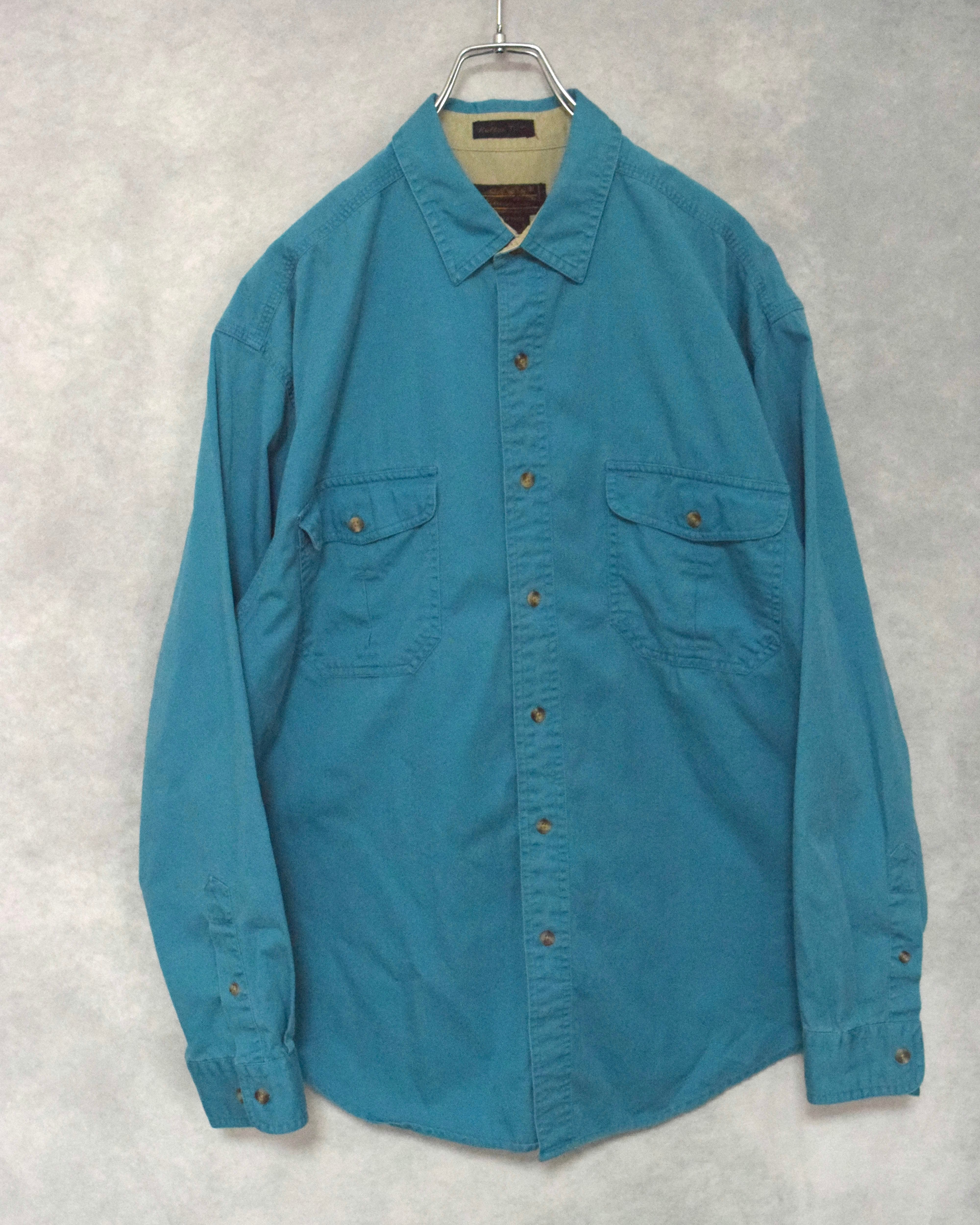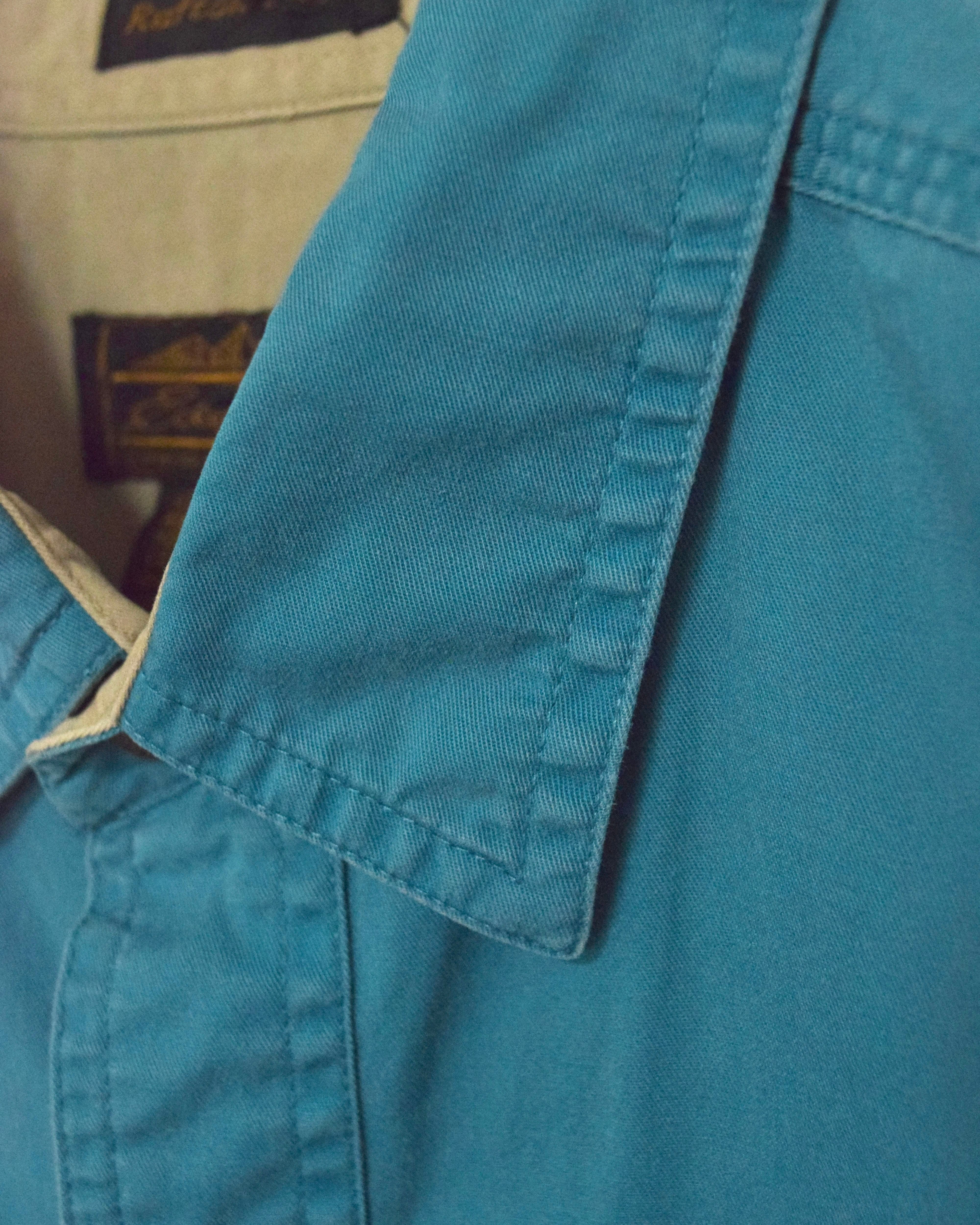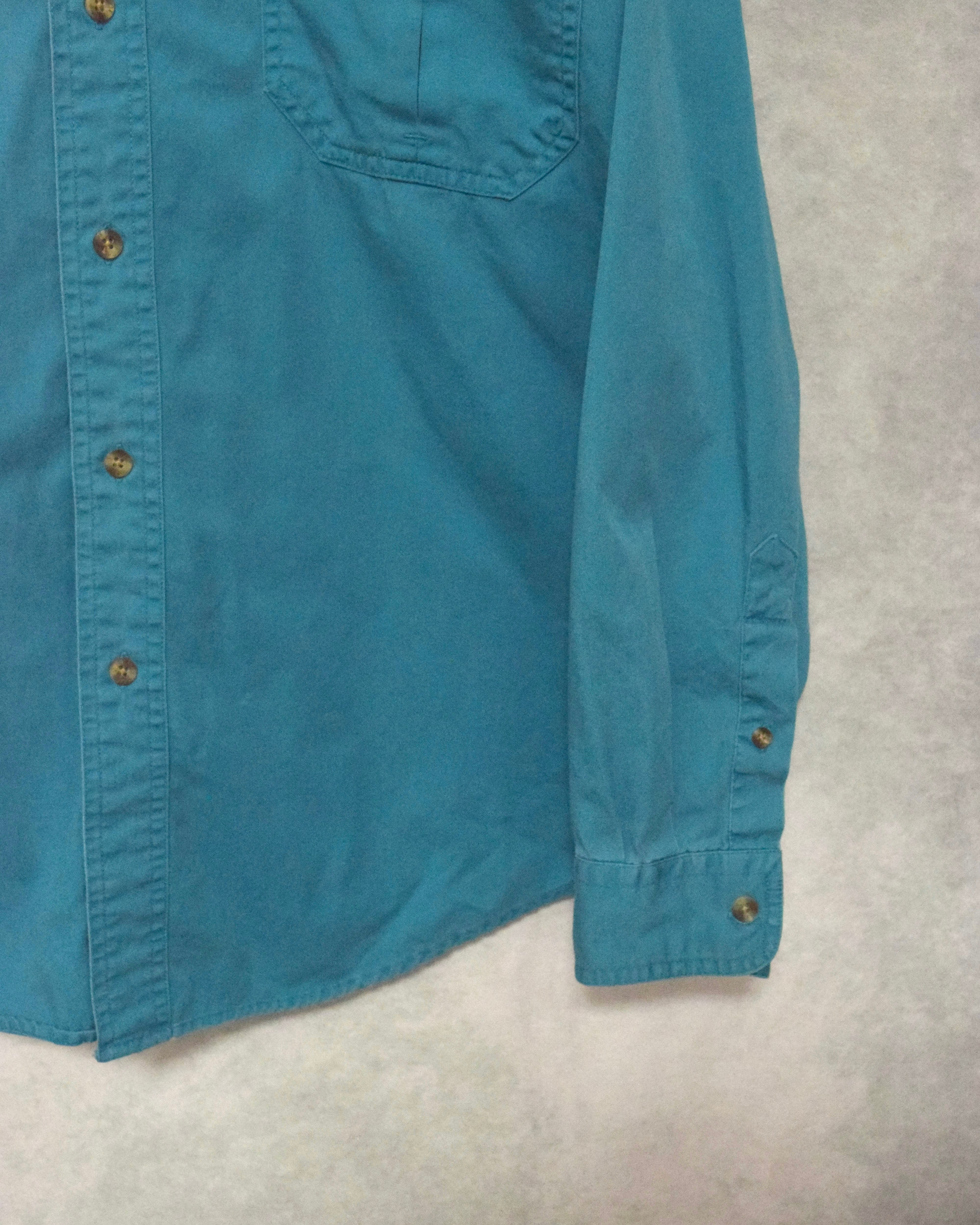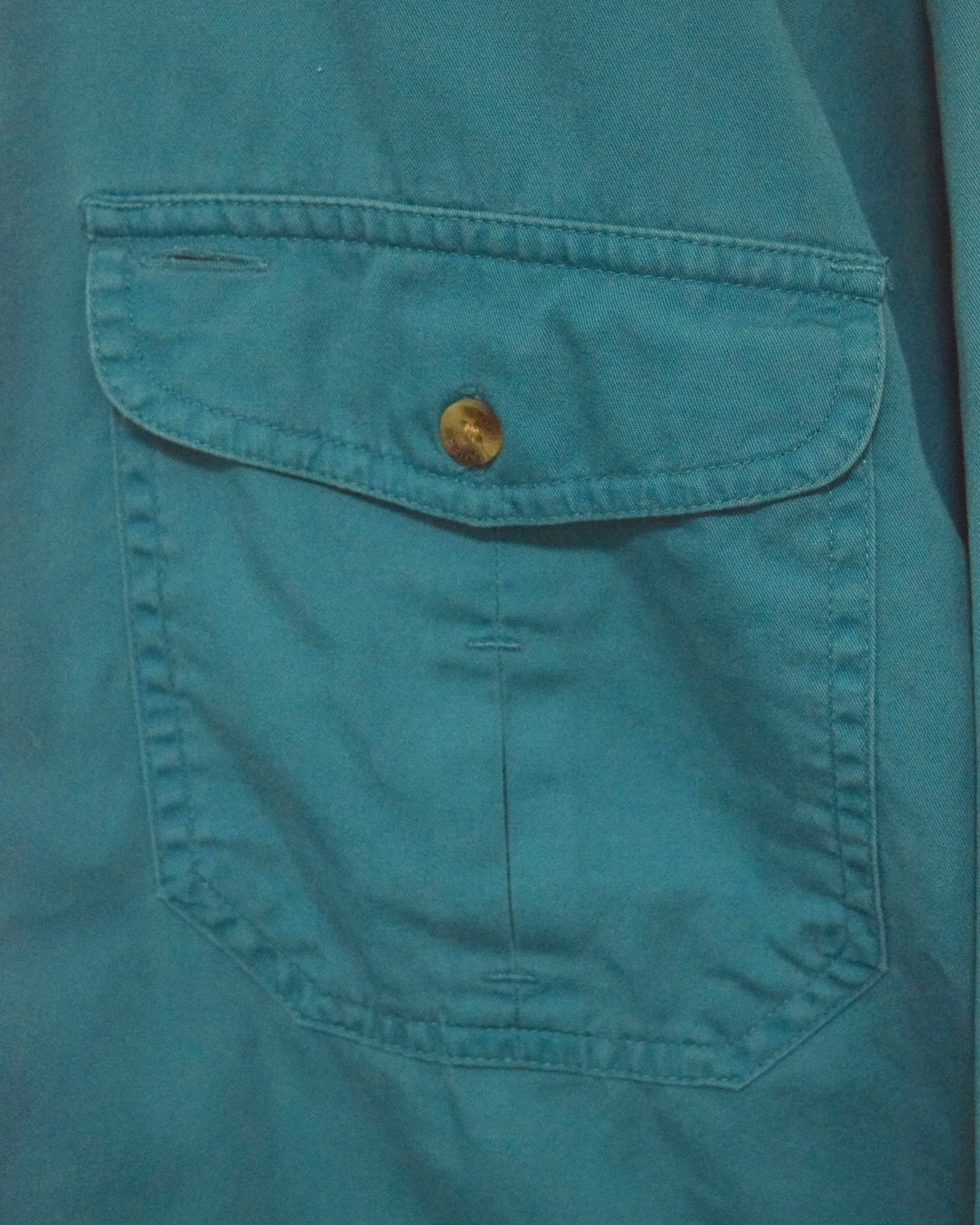 ワークシャツのディテールでありながらこのターコイズブルー。