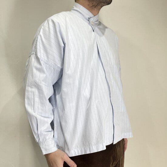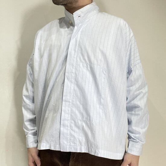 " shirin guild " stripe pattern cotton stand collar wide shirts / made in U.K.