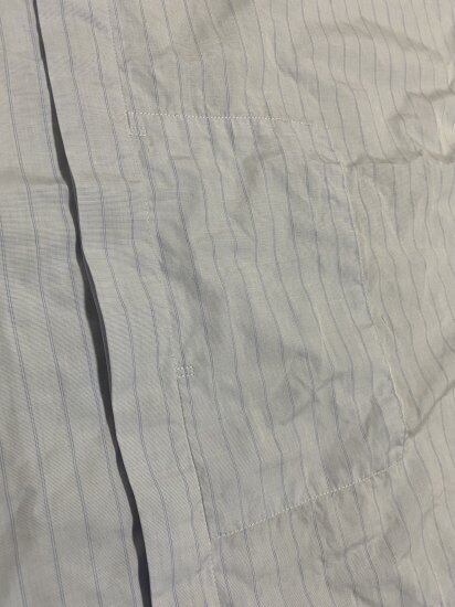 サックスブルーに同系色のストライプ柄の入ったコットンシャツ。