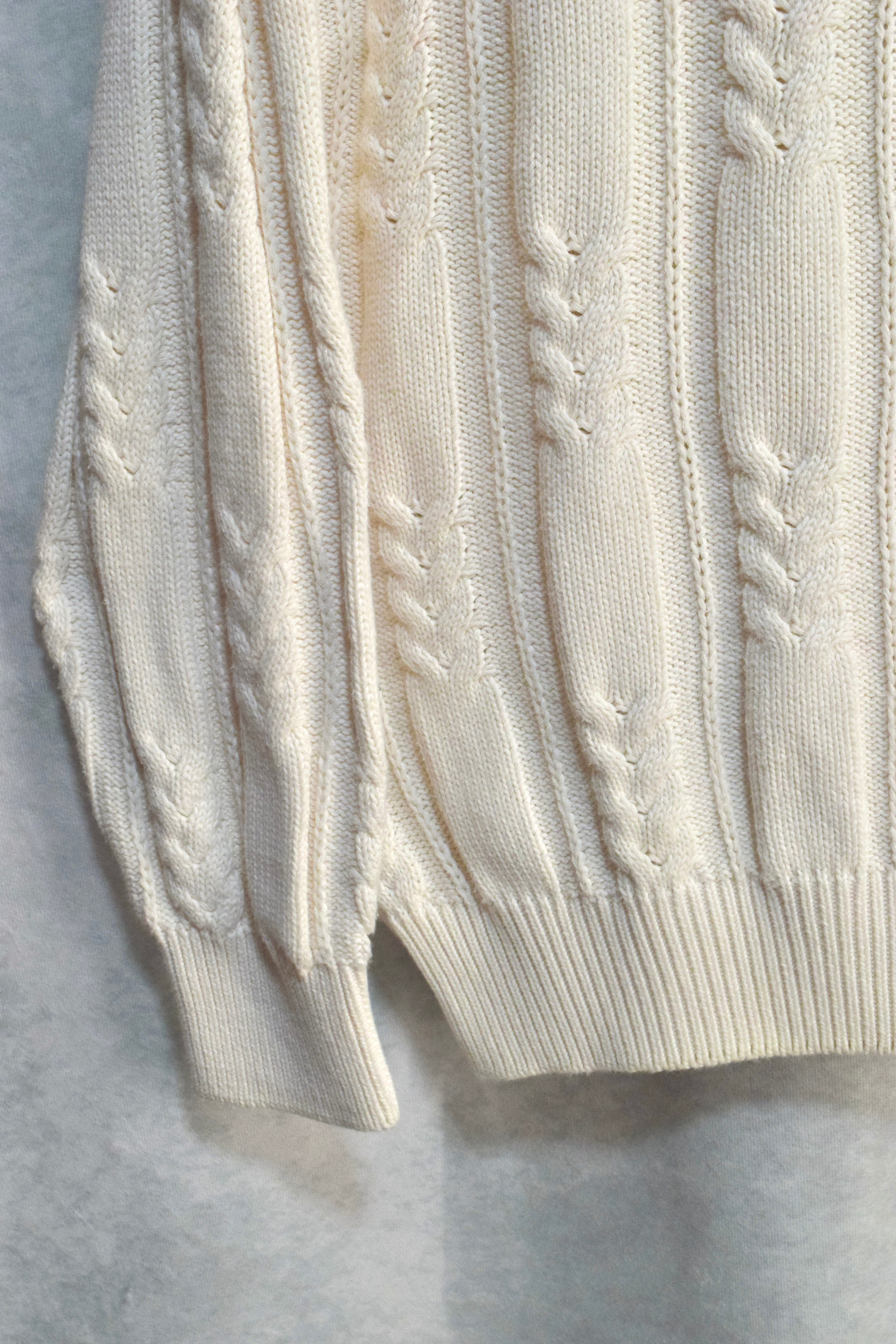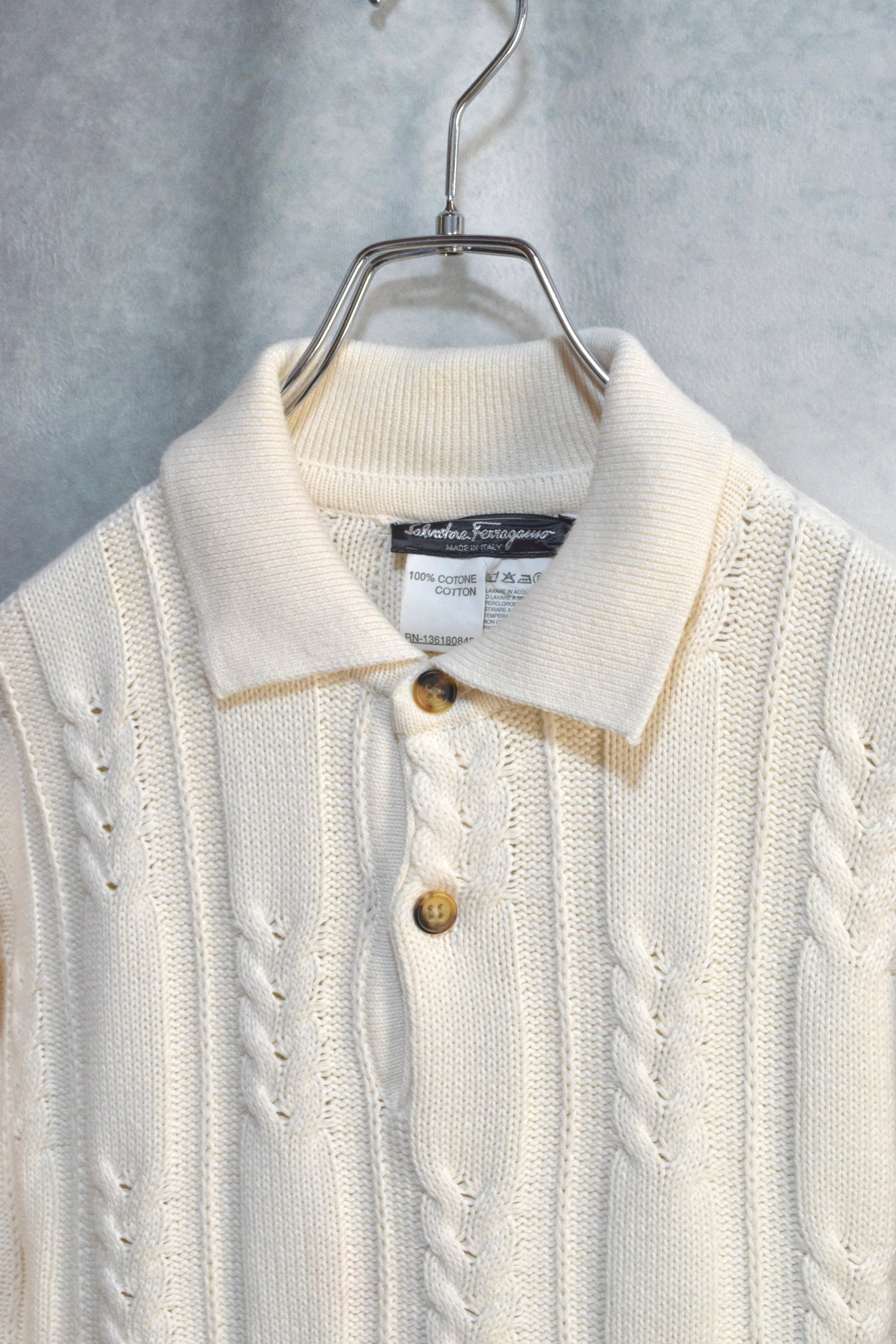 90s " salvatore ferragamo " white cotton knit polo shirts / made in italy / size m