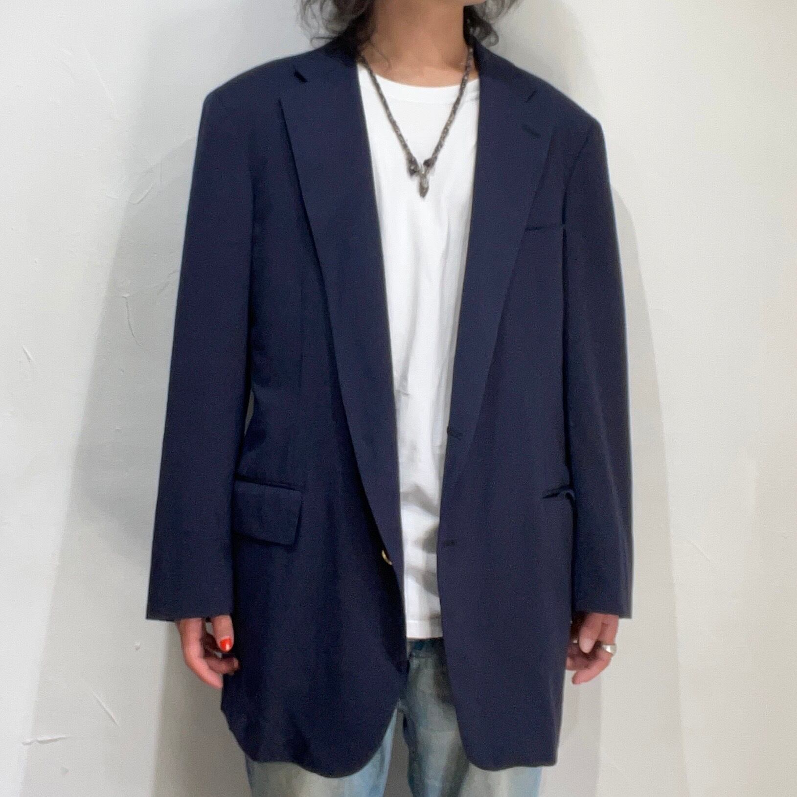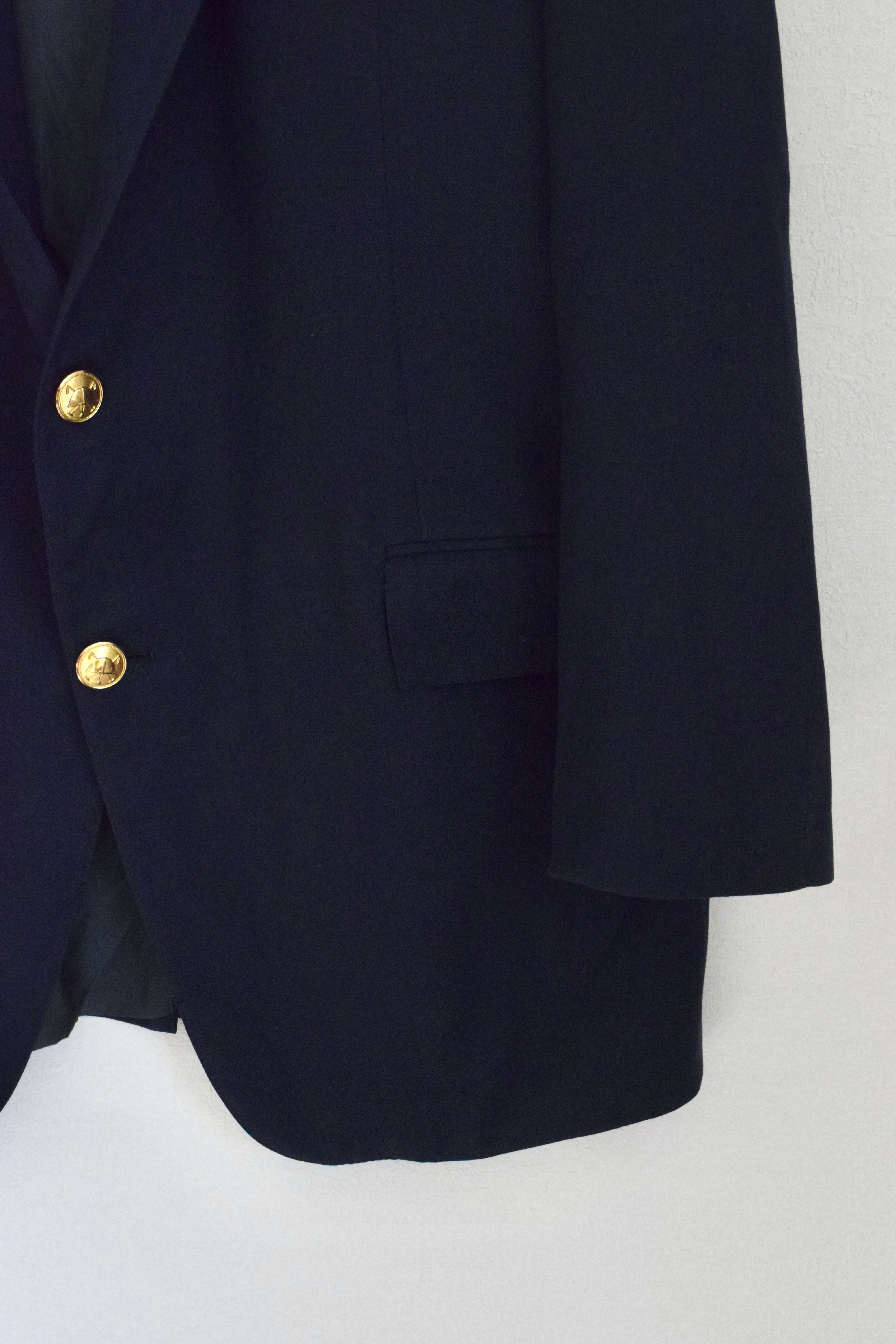 金ボタン、センターベントと良いルックスです。