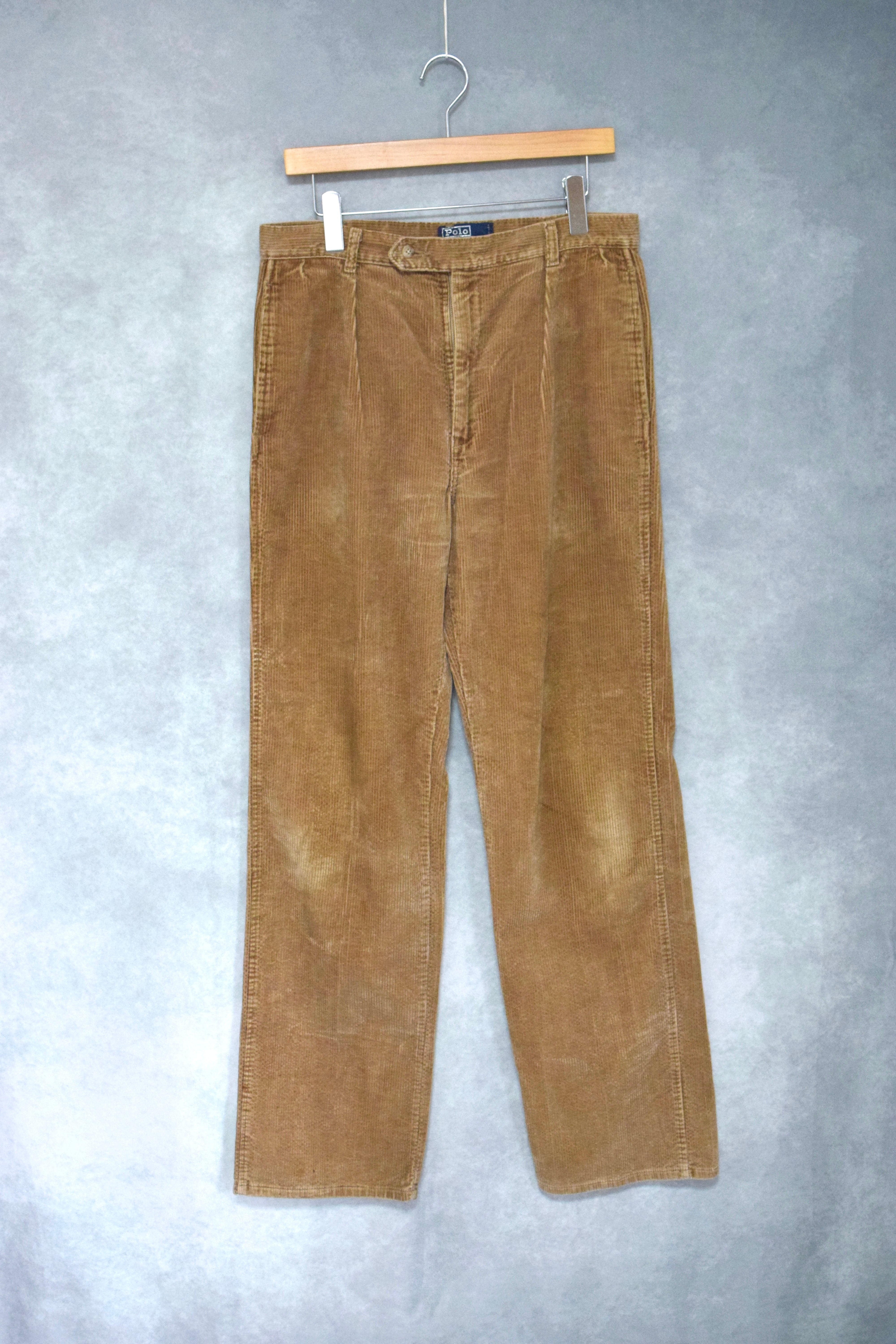 80s " polo ralph lauren " wide wall corduroy two tuck slacks / made in usa / size 33