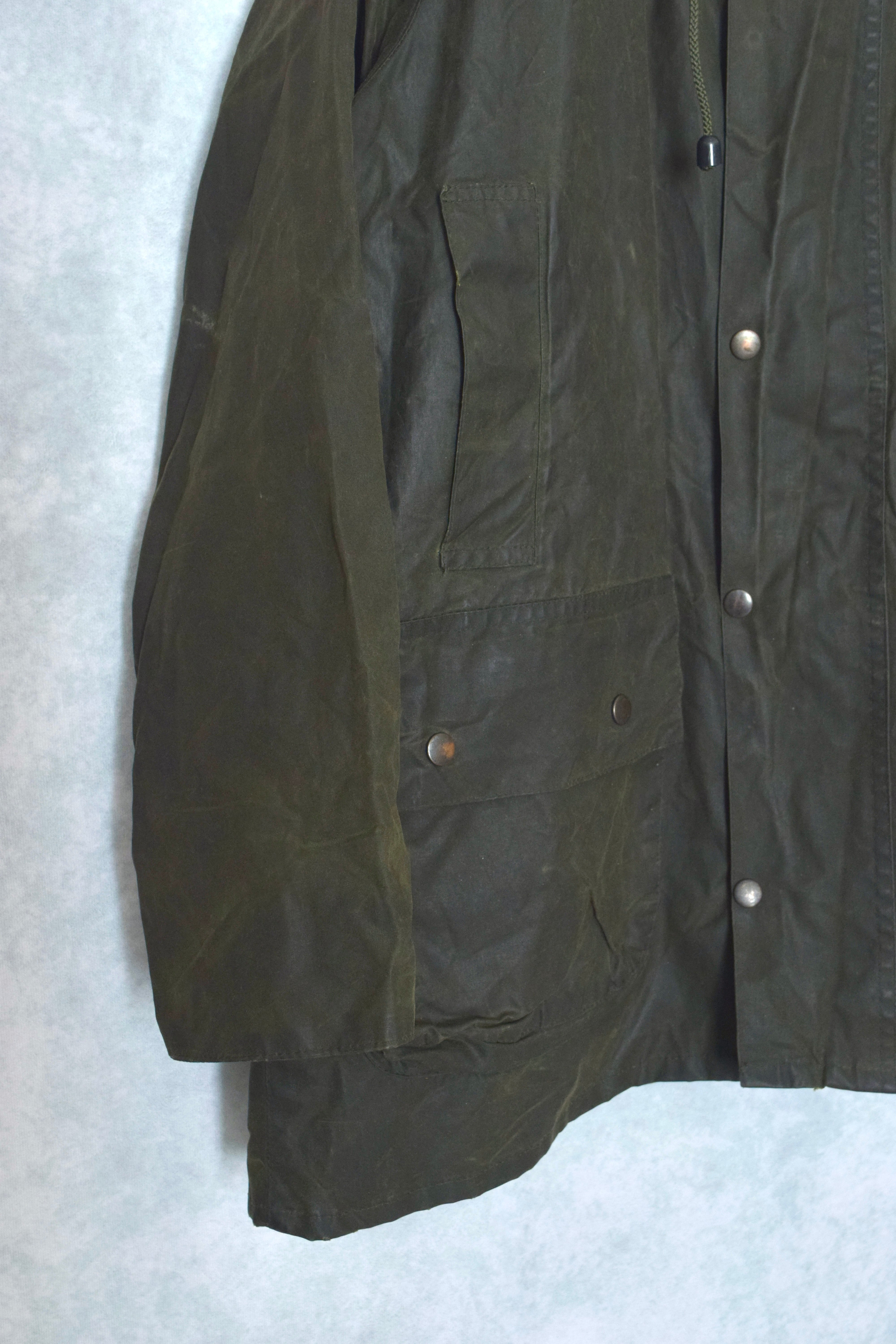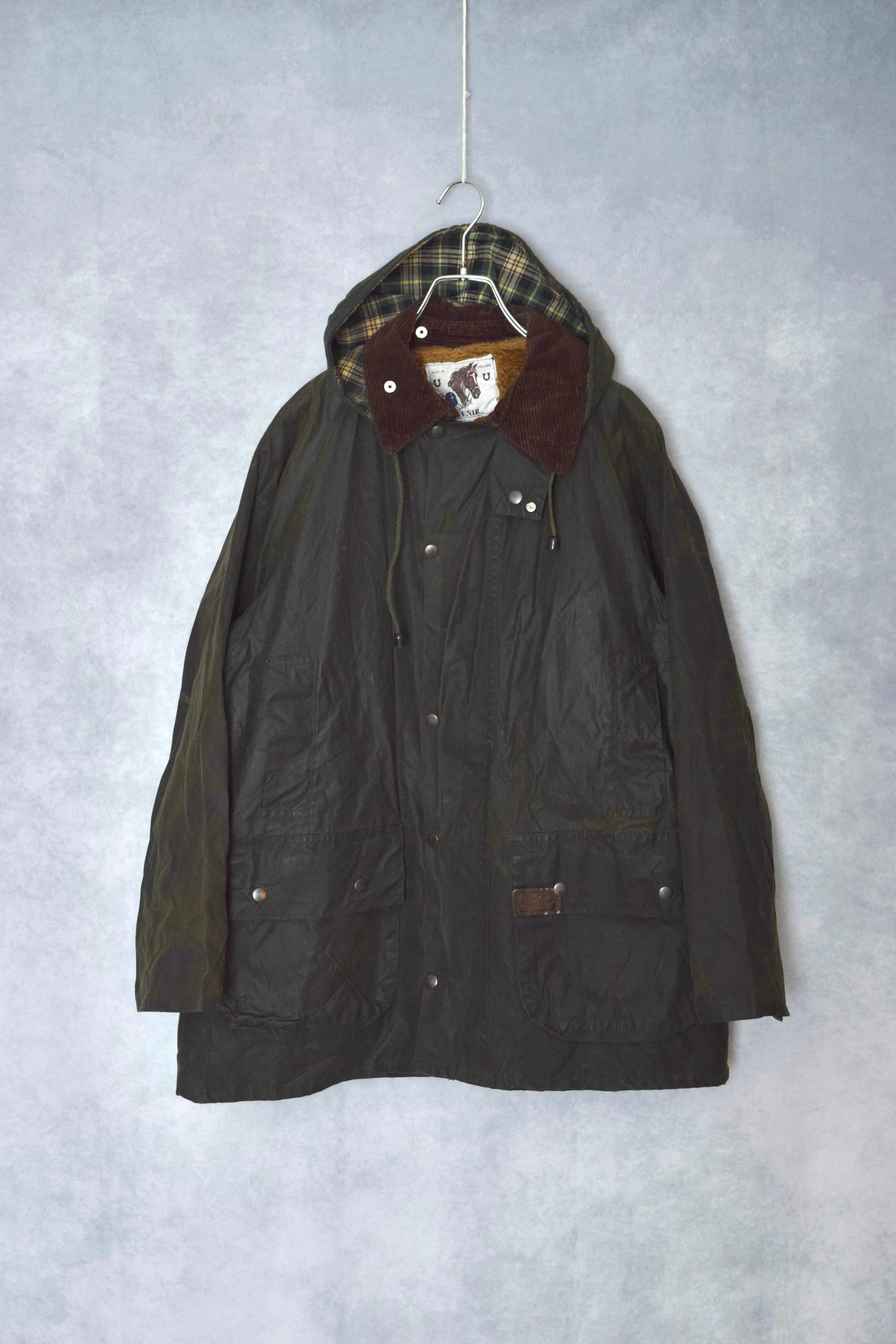 old oiled cotton hooded jacket with boa liner / made in england / size 40 (m)