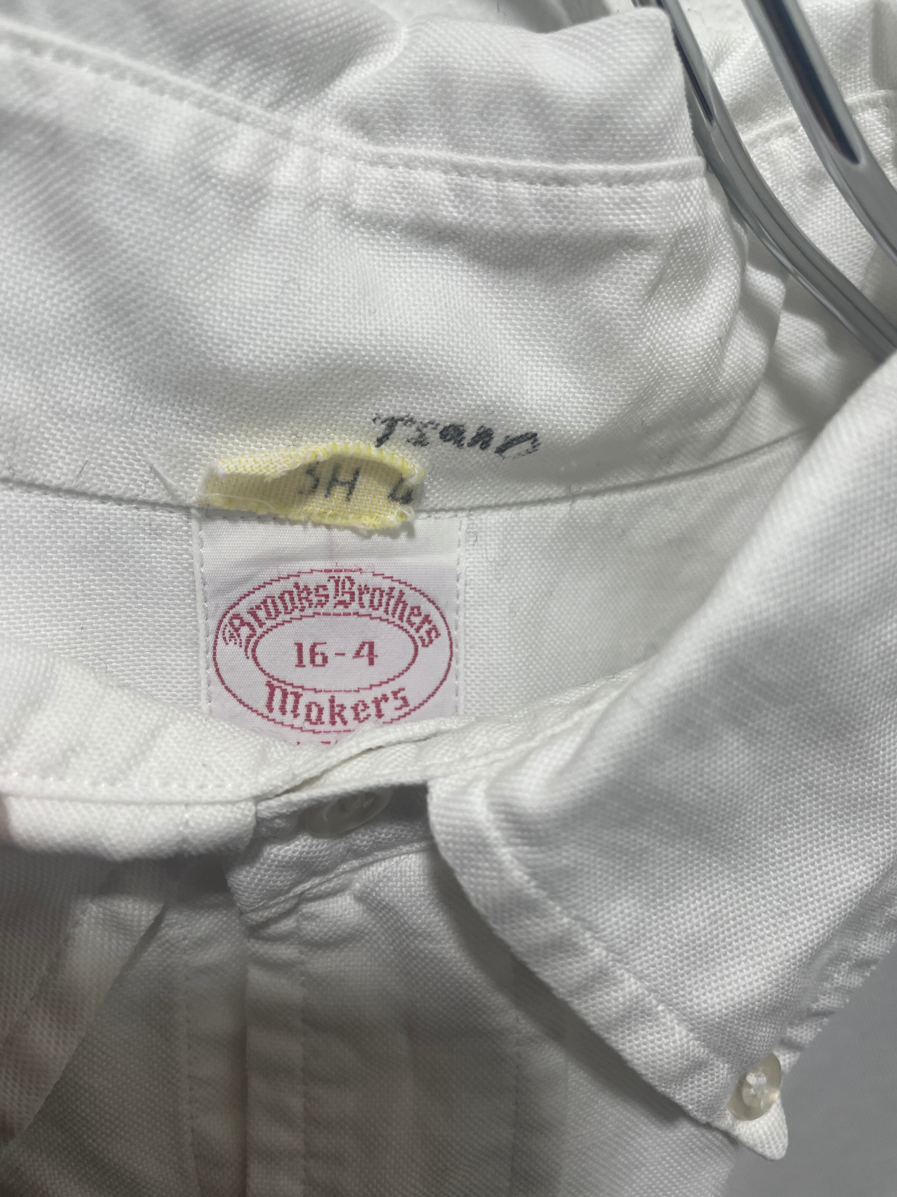 old " brooks brothers " white cotton oxford BD shirts / made in usa / size 16(L)