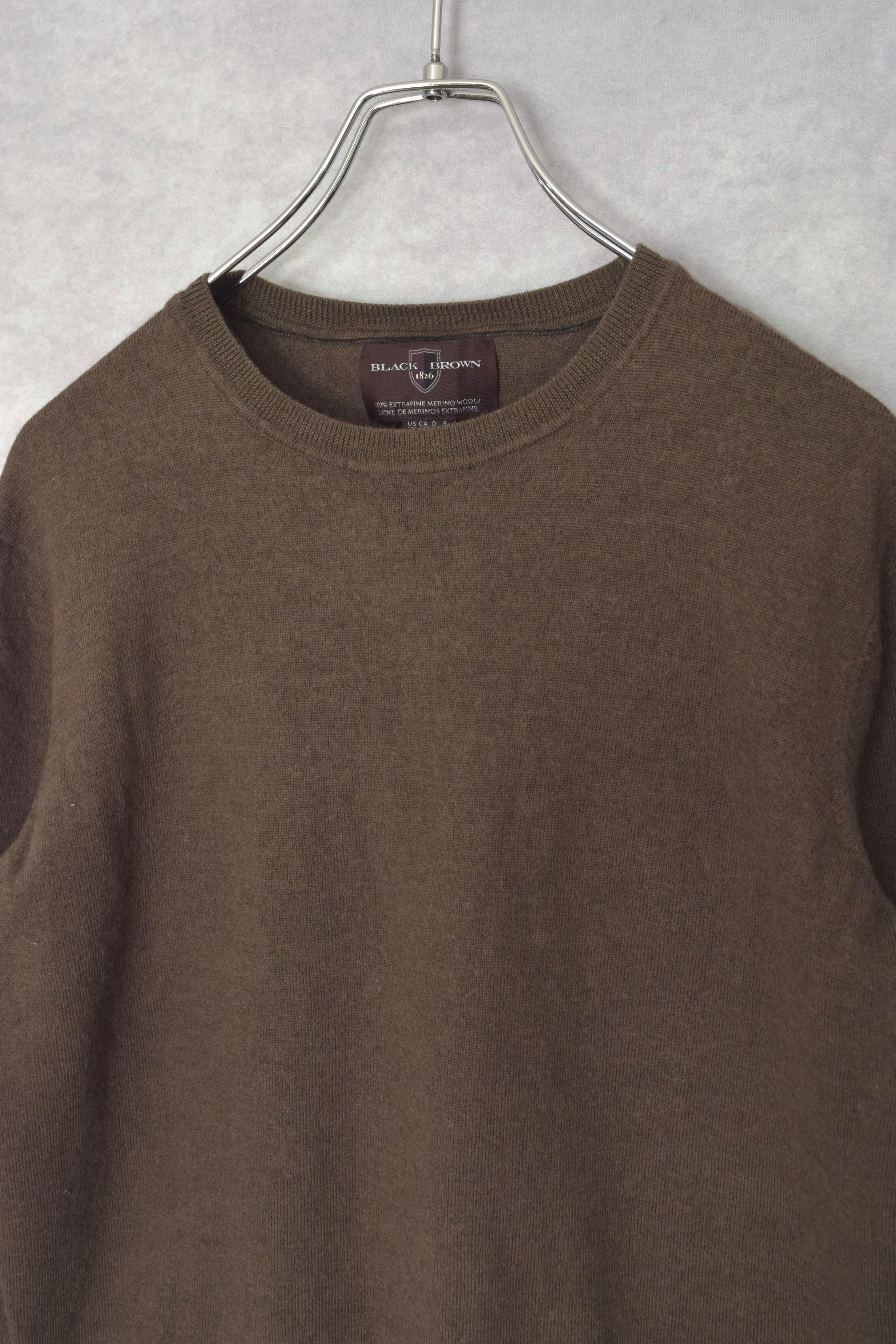 " black brown " merino wool hi gauge knit cutsewn / size ML