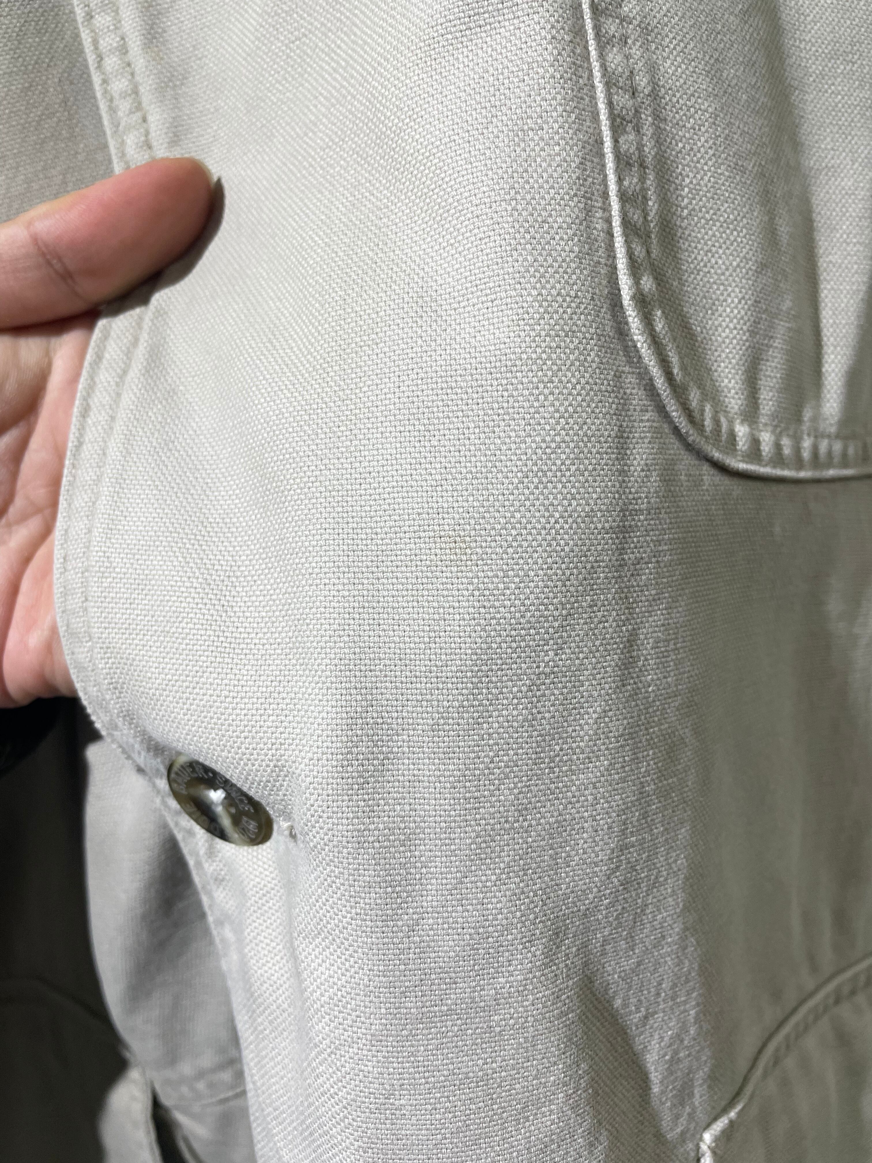 old " eddie bauer " canvas x goose down liner hunting chore jacket / size L