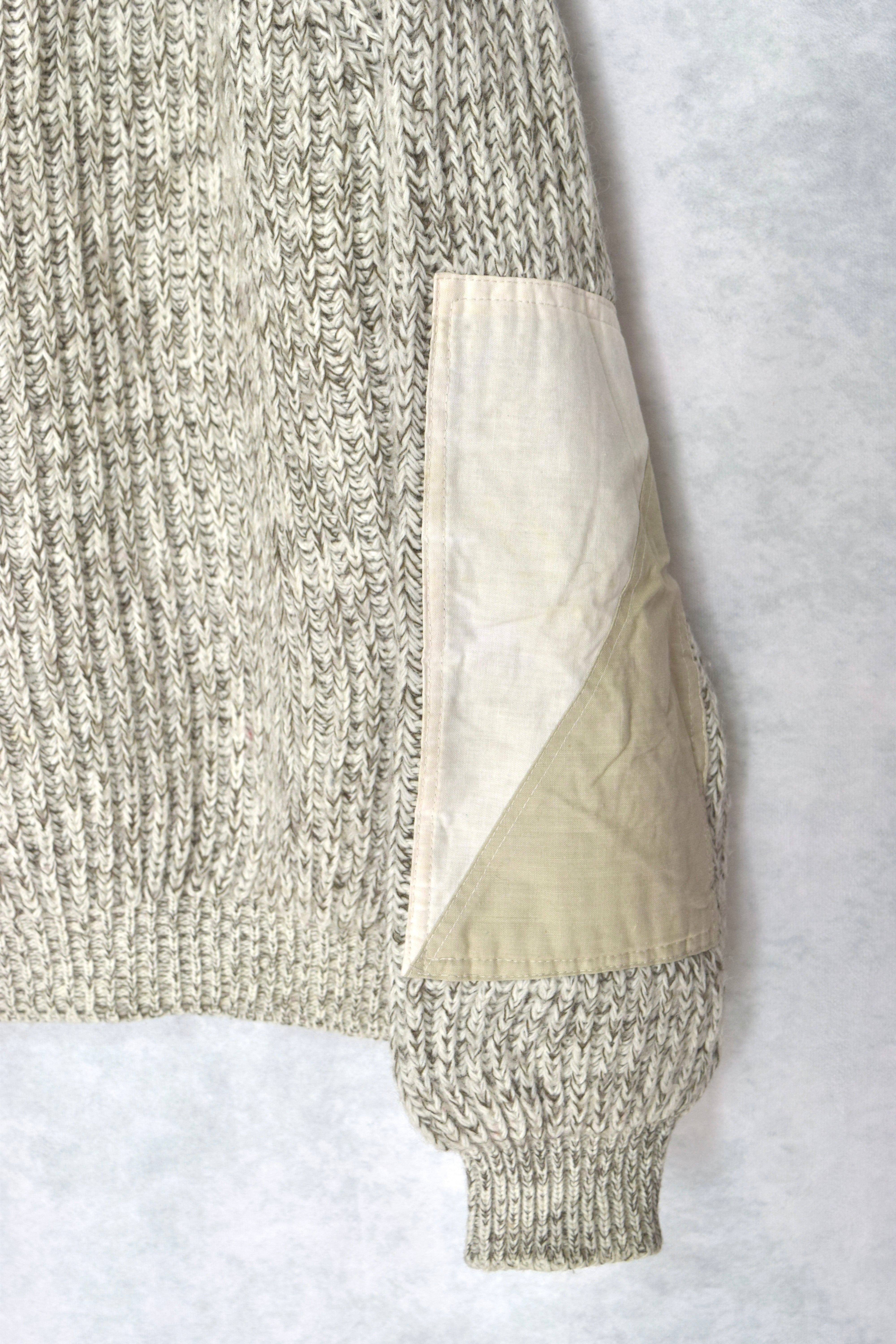 エルボーパッチがスエードレザーではなくコットンと思われる布帛。