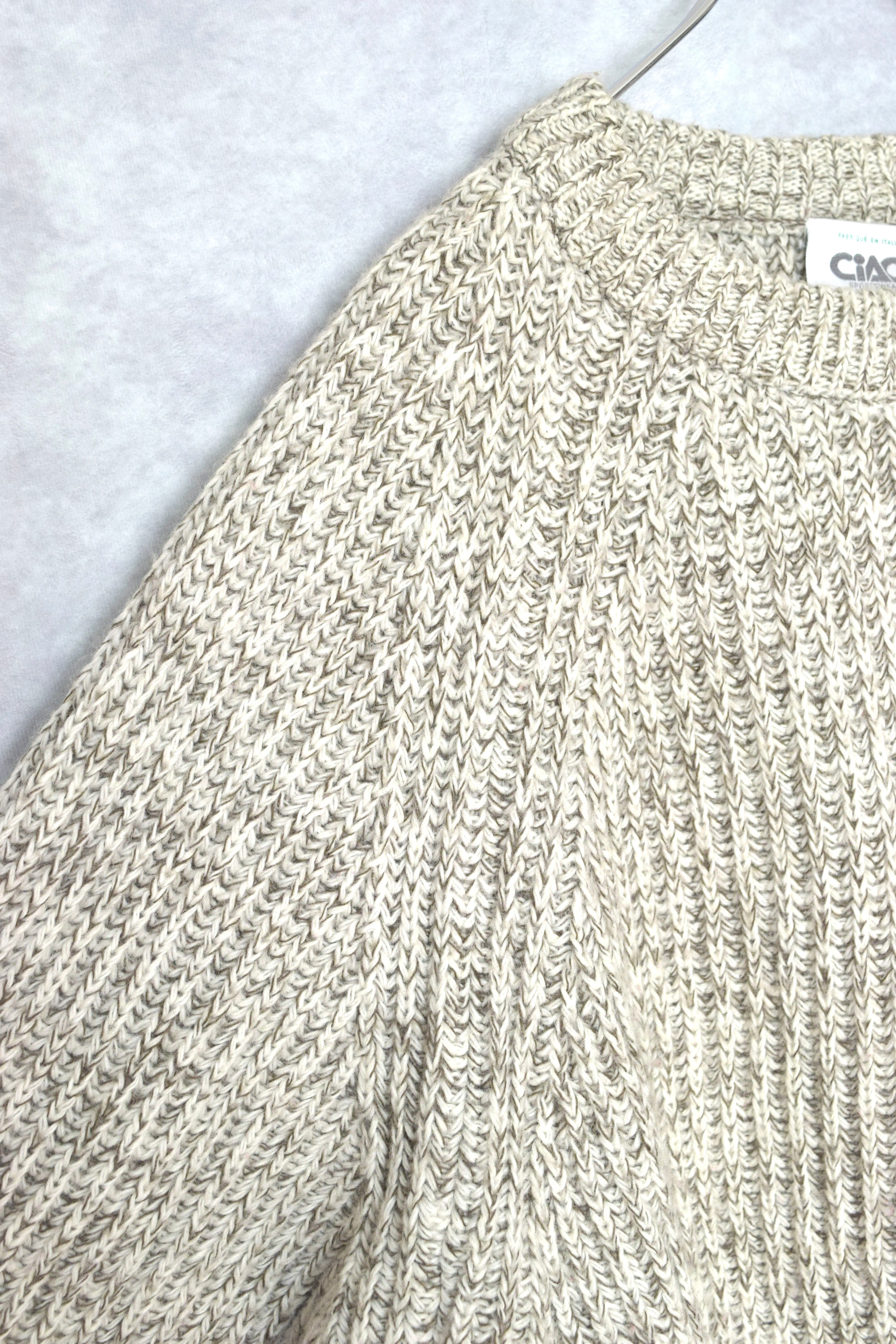 ざっくりとした編みのニットをざっくりとしたサイズ感で着用してパンツは細めとかお勧めです。