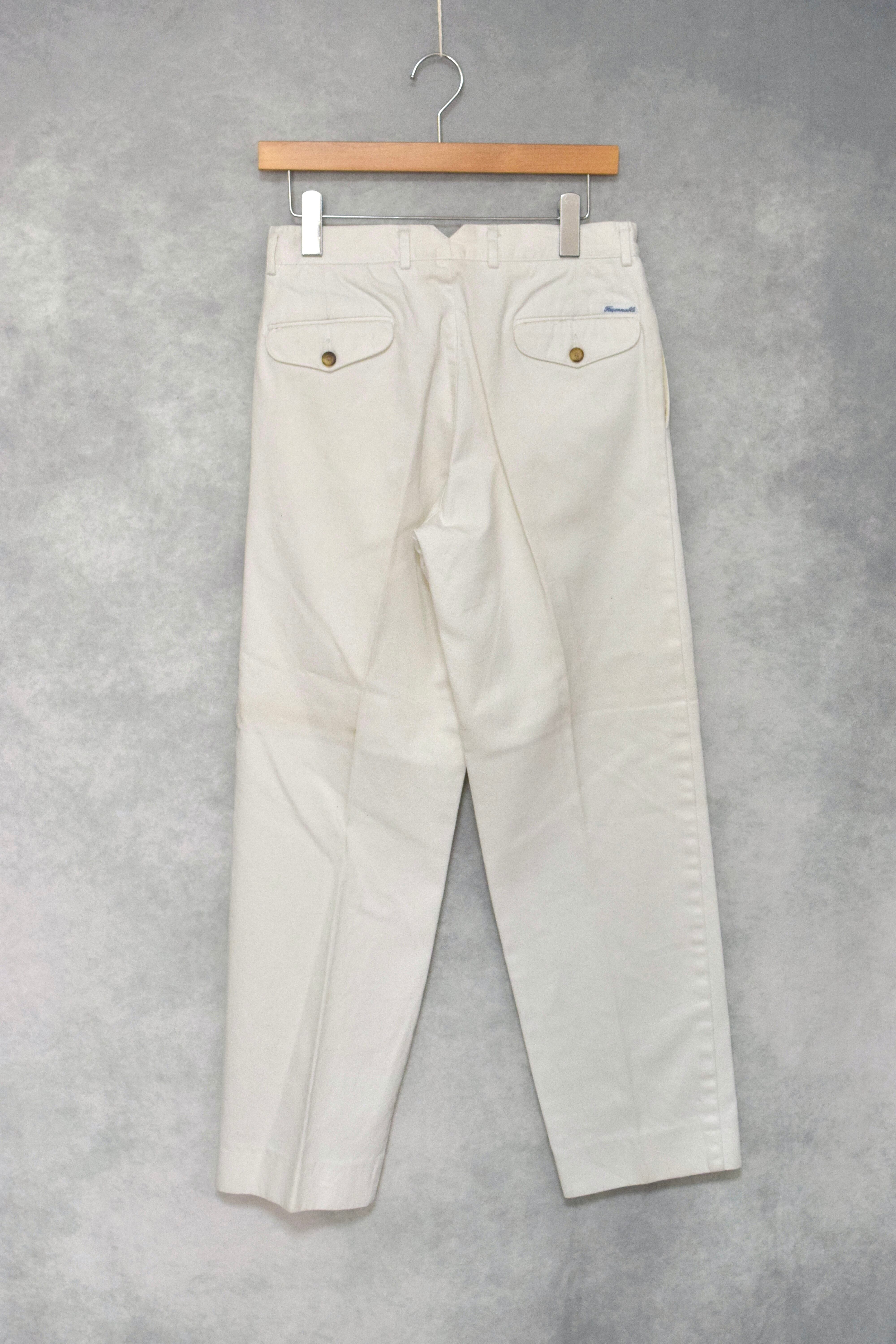 old " faconnable " white cotton two tuck slacks / designed in france / size 31 × 30