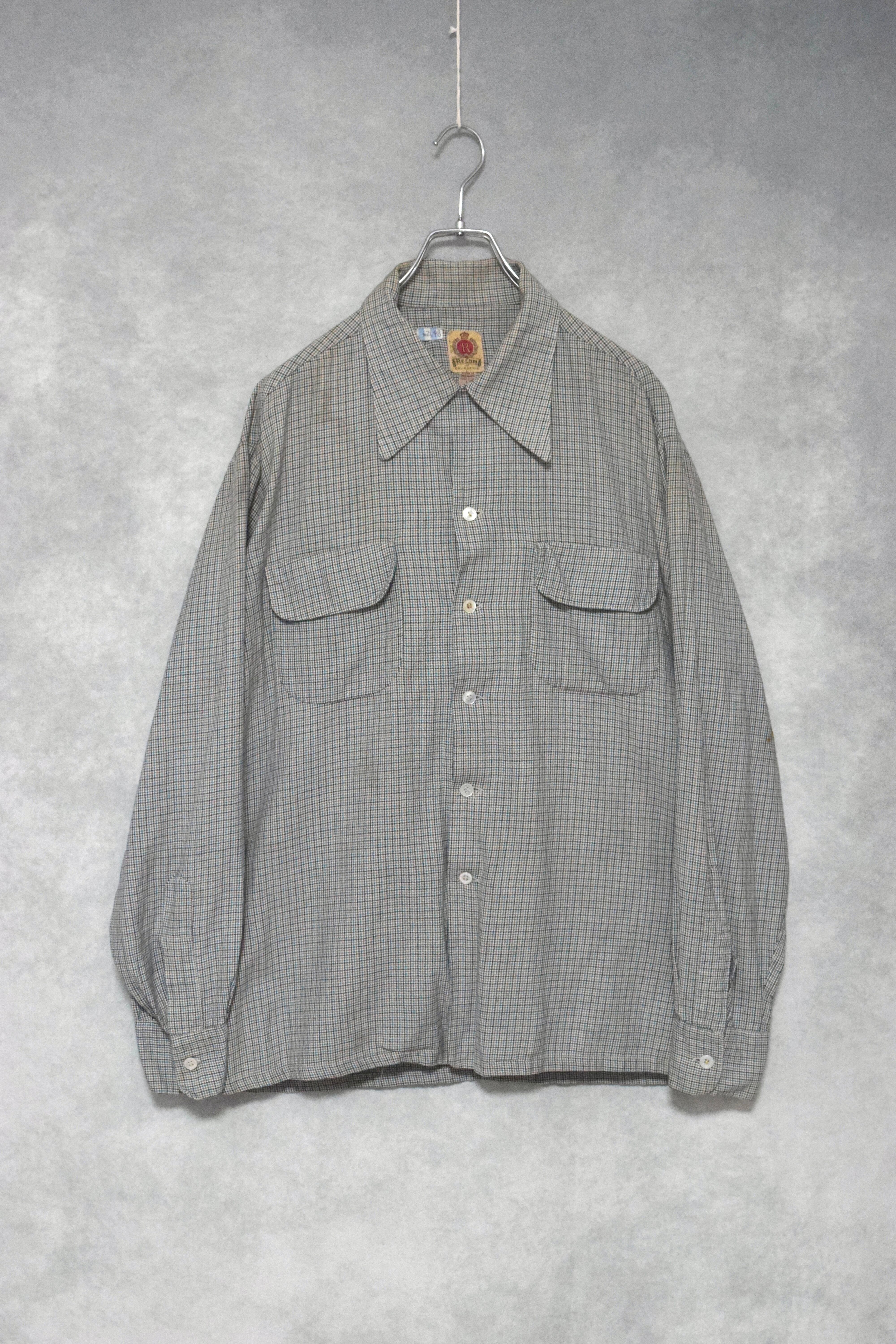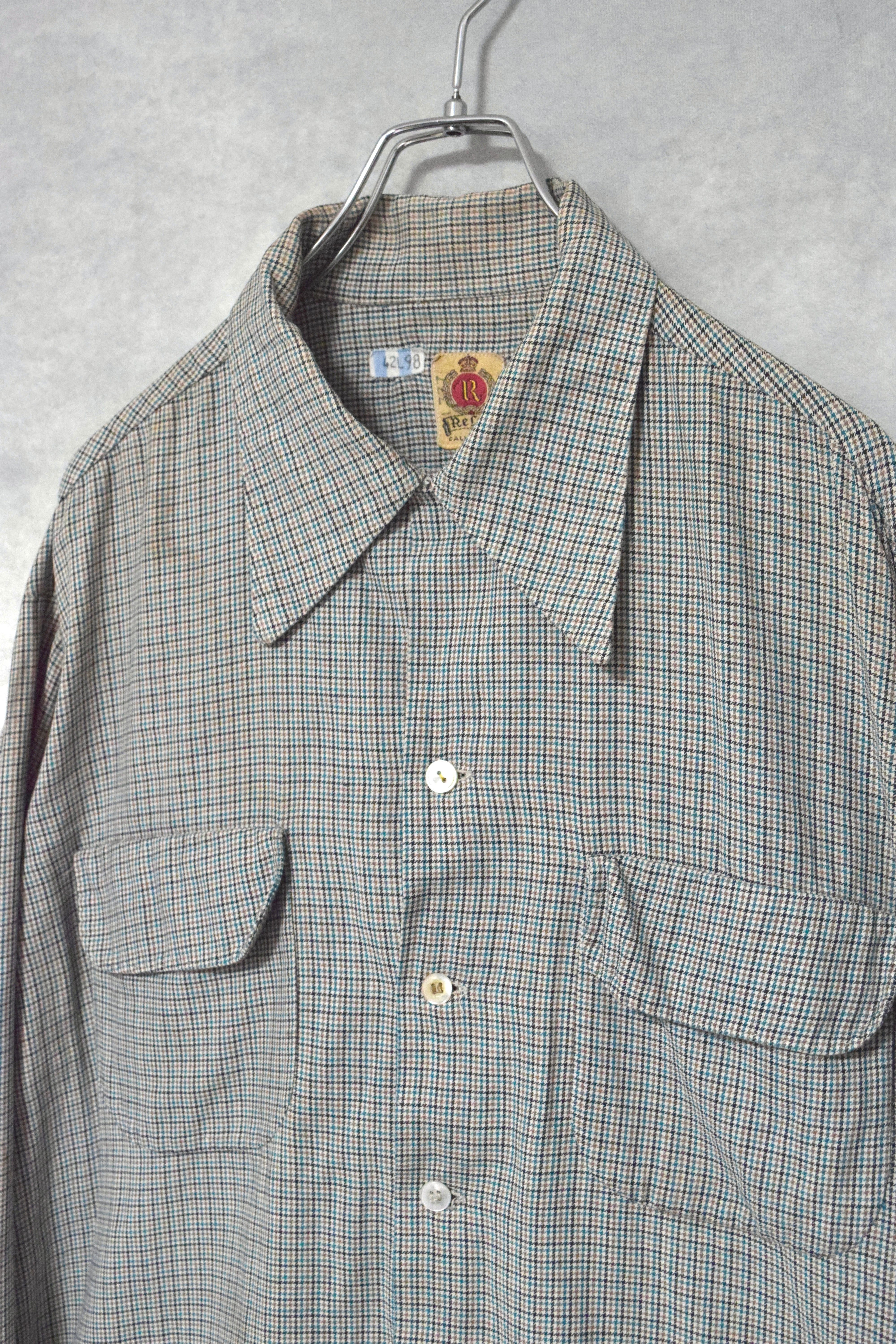 40〜50s rayon houndstooth pattern shirts / size L