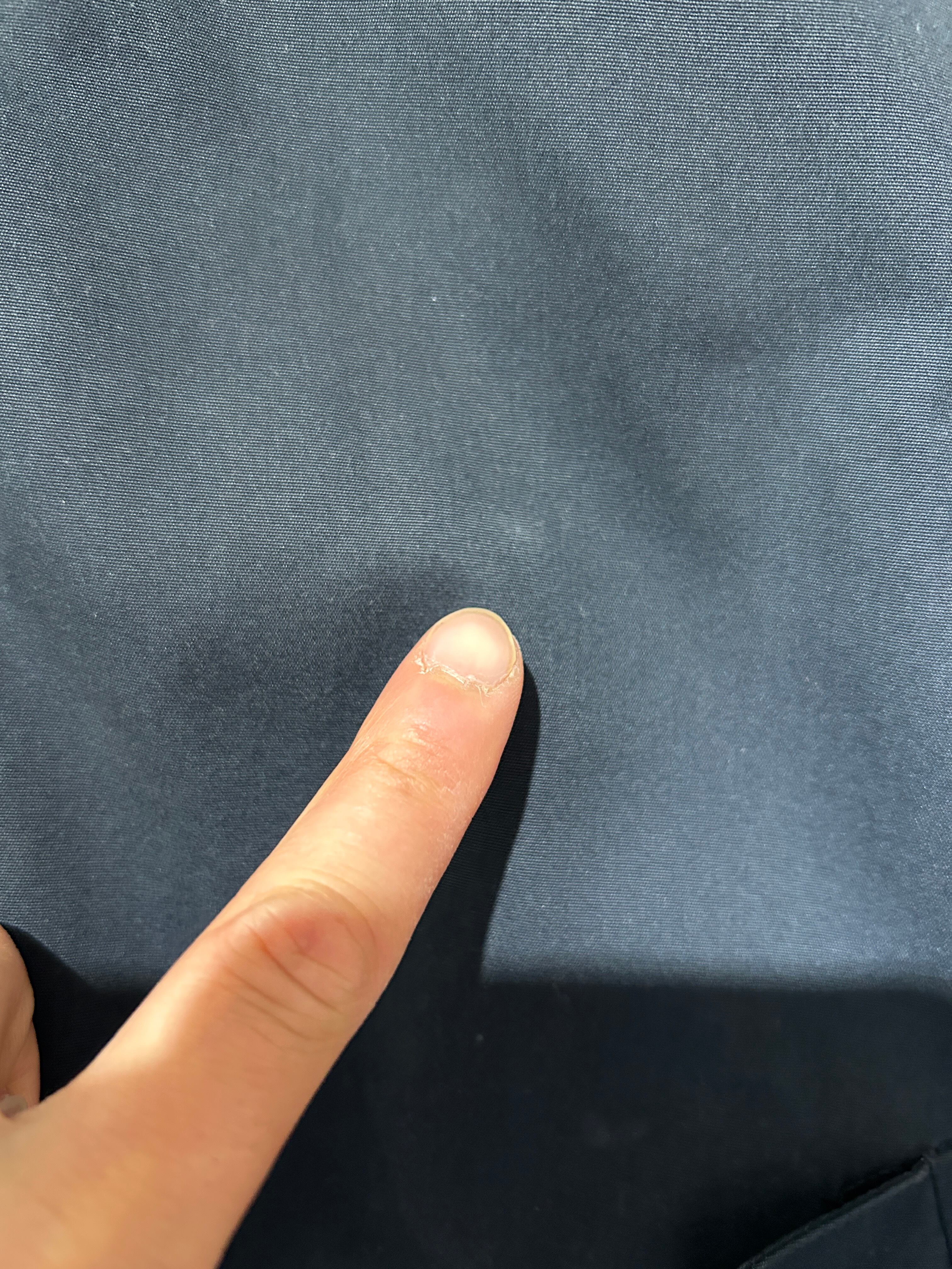 程良い着用感、左胸付近と左ポケット下にアタリのような白い跡、右胸付近にとてもわかりにくい薄汚れが2箇所ございます。
