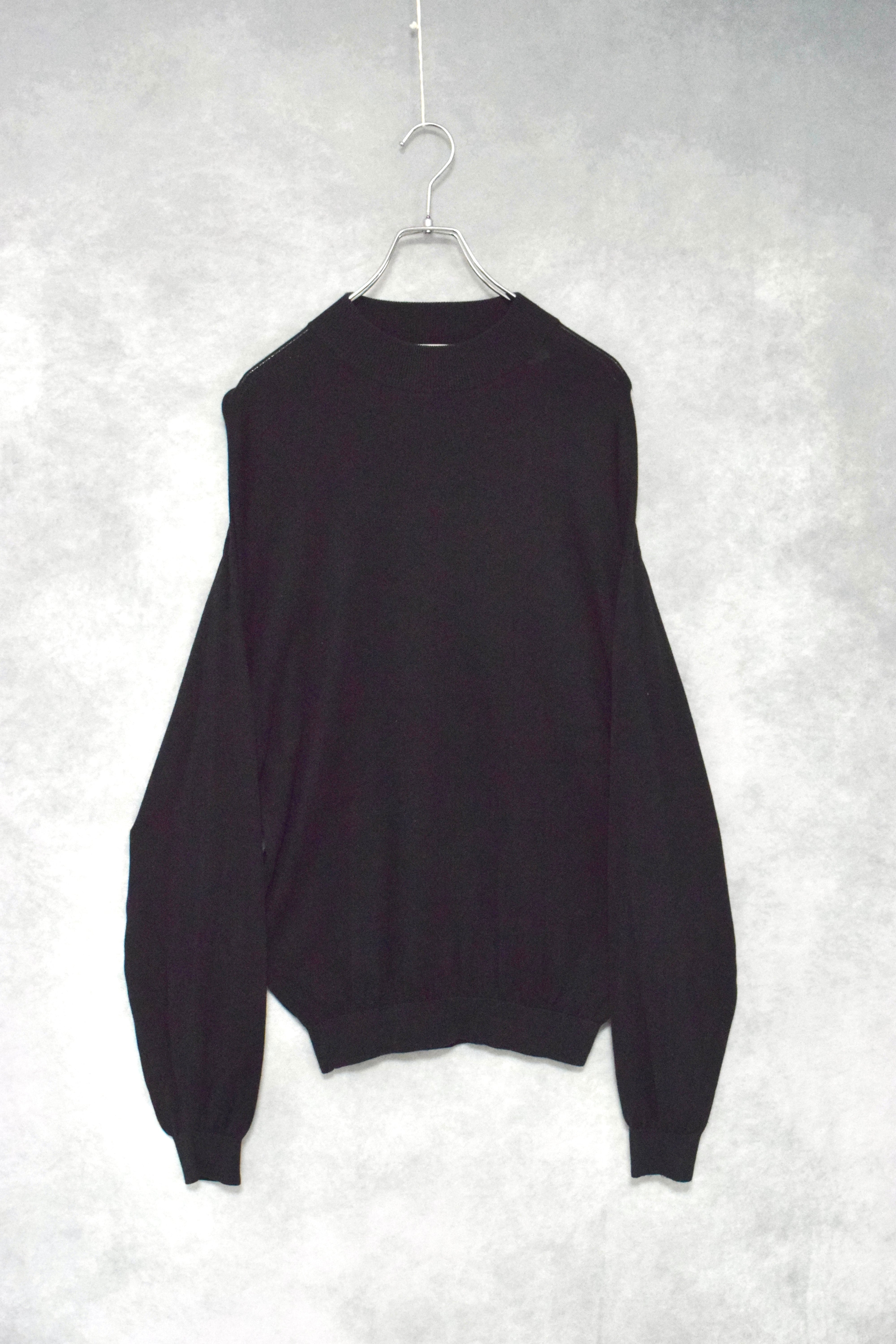 " pront uomo " black silk x cotton mock neck hi gauge knit / size L